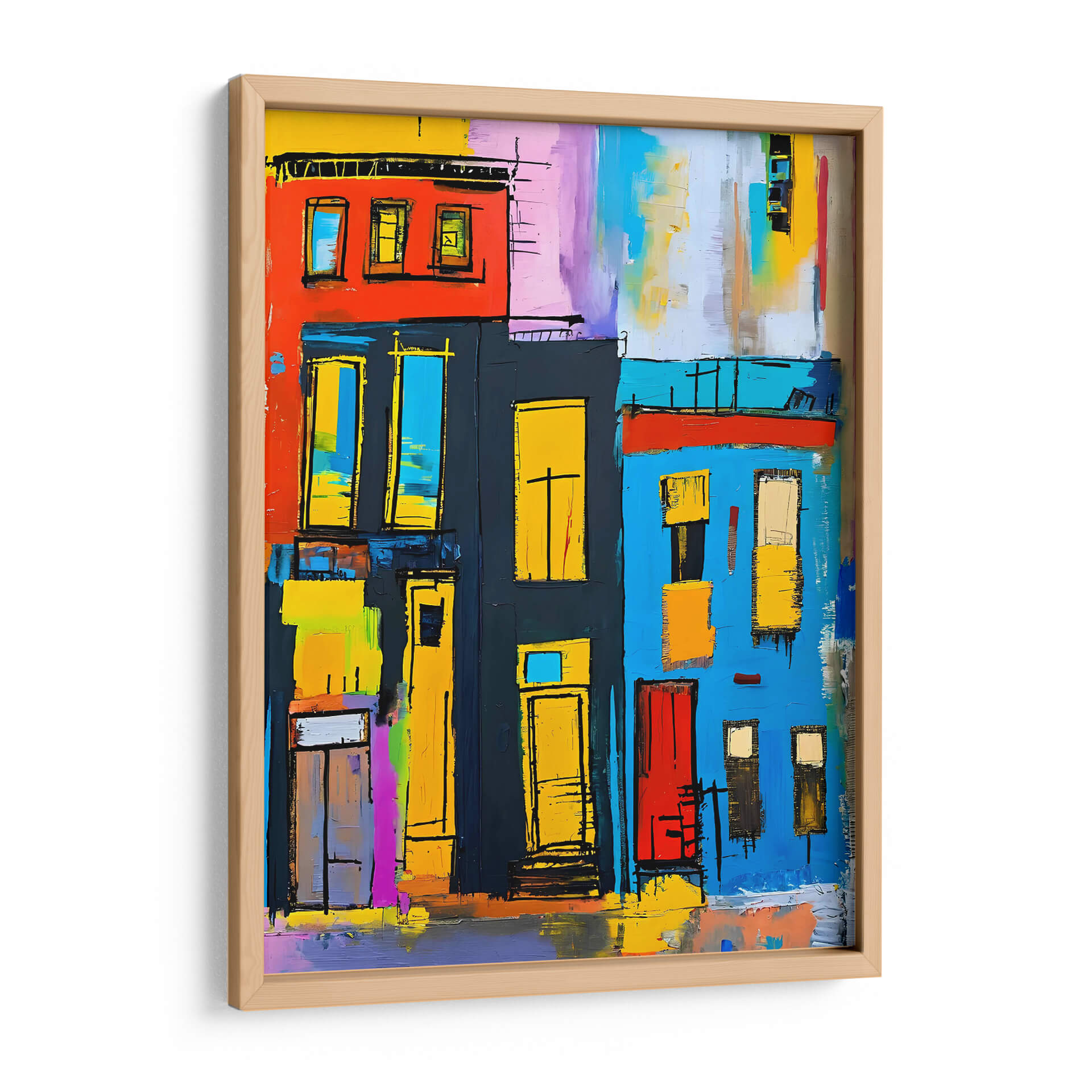 Sumérgete en la vibrante energía urbana con "Vida en La Ciudad", una obra de arte digital que captura la esencia dinámica de la vida urbana a través de un enfoque audaz y abstracto. Los edificios, representados con bloques de color intensos y líneas enérgicas, crean una composición cautivadora. Predominan los rojos vibrantes, azules eléctricos y amarillos solares, contrastando con tonos más oscuros y toques de púrpura y turquesa, que juntos generan una atmósfera de movimiento y vitalidad. Las ventanas y puertas se presentan como formas geométricas estilizadas, invitando a la imaginación a explorar los secretos que albergan. Este cuadro decorativo es perfecto para añadir un punto focal lleno de carácter a cualquier espacio moderno, ya sea una sala de estar, un estudio o una oficina. Su estilo abstracto y colorido lo convierte en una pieza versátil que complementa tanto decoraciones contemporáneas como eclécticas. "Vida en La Ciudad" no es solo una imagen, es una invitación a sentir el pulso de la urbe, transformando tu hogar en una galería de arte contemporáneo llena de vida y color. Descubre cómo esta obra puede redefinir tu espacio y expresar tu amor por la estética urbana y el arte abstracto.