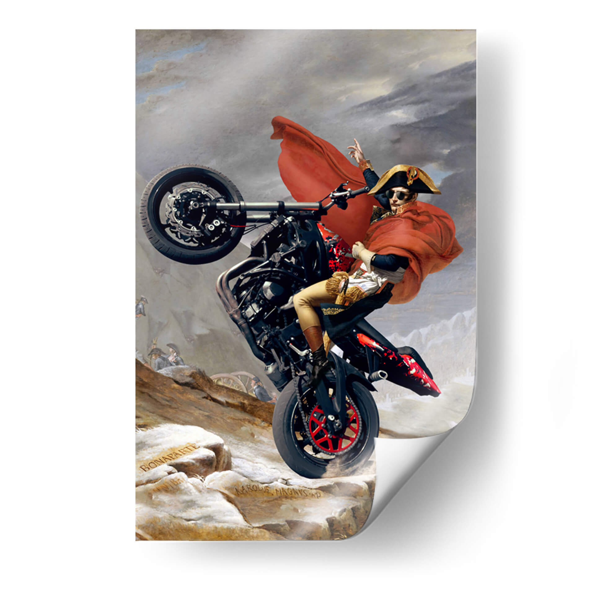 Embárcate en un viaje visual audaz con "¡Vrum, Vrum!" de Artem Pozdniakov, una obra de arte contemporáneo que fusiona lo histórico con lo moderno de una manera inesperada y vibrante. Este cuadro decorativo presenta una audaz reinterpretación de Napoleón Bonaparte, sorprendentemente montado en una motocicleta de alta potencia, desafiando la gravedad en un paisaje rocoso y tormentoso. La icónica capa roja del emperador ondea dramáticamente, contrastando con la estética industrial de la moto, especialmente sus llantas rojas y la pose desafiante del personaje. Los tonos grises y ocres del fondo, junto con las formaciones rocosas, crean una atmósfera épica y ligeramente caótica, evocando la determinación y el espíritu indomable del personaje histórico. "¡Vrum, Vrum!" es ideal para espacios que buscan un toque de humor, audacia y una conversación artística que desafíe las convenciones. Perfecto para salones modernos, estudios de diseño o cualquier lugar donde se aprecie el arte que combina historia, humor y una estética poderosa. Una pieza que no solo decora, sino que también inspira y provoca. Añade un elemento de sorpresa y estilo a tu decoración con este cuadro único.