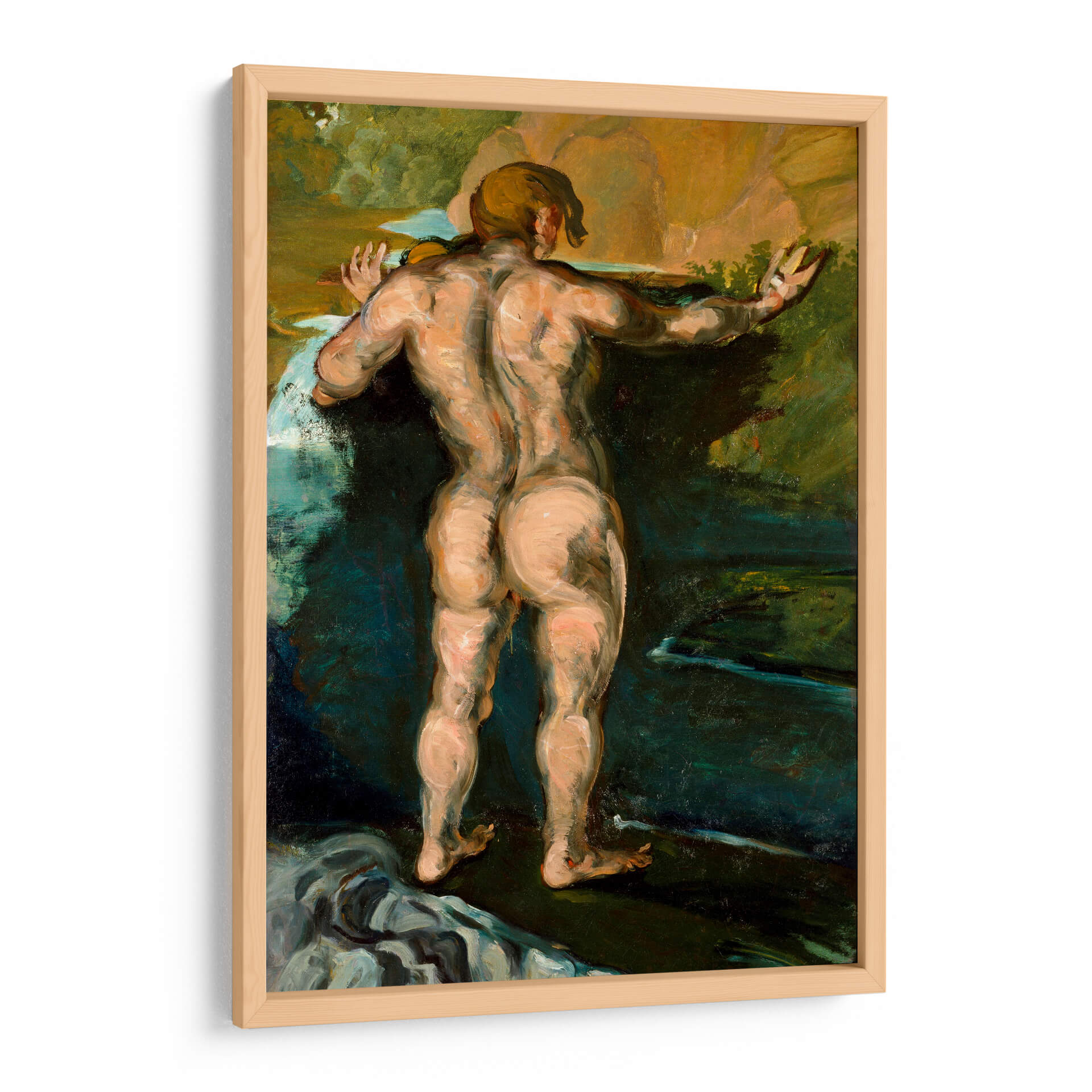 Sumérgete en la potencia y la forma con "Bañador y rocas", una obra maestra capturada por el icónico Paul Cézanne. Este cuadro decorativo presenta una figura masculina de espaldas, cuya musculatura se define con trazos audaces y una paleta de colores terrosos y profundos. Los tonos verdosos y azules del entorno natural contrastan con la calidez de la piel, creando una atmósfera de introspección y conexión con la naturaleza. La composición, con la figura en primer plano y el paisaje difuminado al fondo, invita a la contemplación sobre la relación entre el ser humano y su entorno. Los pinceladas visibles aportan textura y un dinamismo que hace que la obra cobre vida, transmitiendo una sensación de fuerza y serenidad a la vez. Ideal para espacios que buscan un toque de arte clásico con una perspectiva contemporánea, como un estudio, una sala de estar o un recibidor. Transforma tu hogar u oficina con esta pieza que evoca la maestría del postimpresionismo, aportando profundidad y carácter a tus paredes.