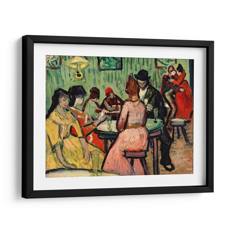 Sumérgete en la vibrante atmósfera de "El burdel" (Le Lupanar), una obra maestra de Vincent van Gogh que captura la intensidad de la vida nocturna con una explosión de color y emoción. Este cuadro decorativo, pintado con pinceladas audaces y un uso expresivo del color, te transportará a un momento íntimo y lleno de vida. Los tonos verdes profundos de las paredes y la iluminación cálida de la lámpara crean un ambiente envolvente, mientras que las figuras humanas, representadas con una energía palpable, interactúan en escenas cotidianas. El amarillo vibrante del vestido de una mujer contrasta con los tonos rosados y rojizos de otras figuras, creando una composición dinámica que atrae la mirada. "El burdel" es más que una simple representación; es una ventana a las emociones y las interacciones humanas, capturadas con la maestría postimpresionista de Van Gogh. Este cuadro decorativo es ideal para añadir un toque de carácter y conversación a tu sala de estar, estudio o cualquier espacio que busque una pieza de arte con profundidad y estilo. Transforma tu hogar con la pasión y el genio de uno de los artistas más influyentes de la historia.