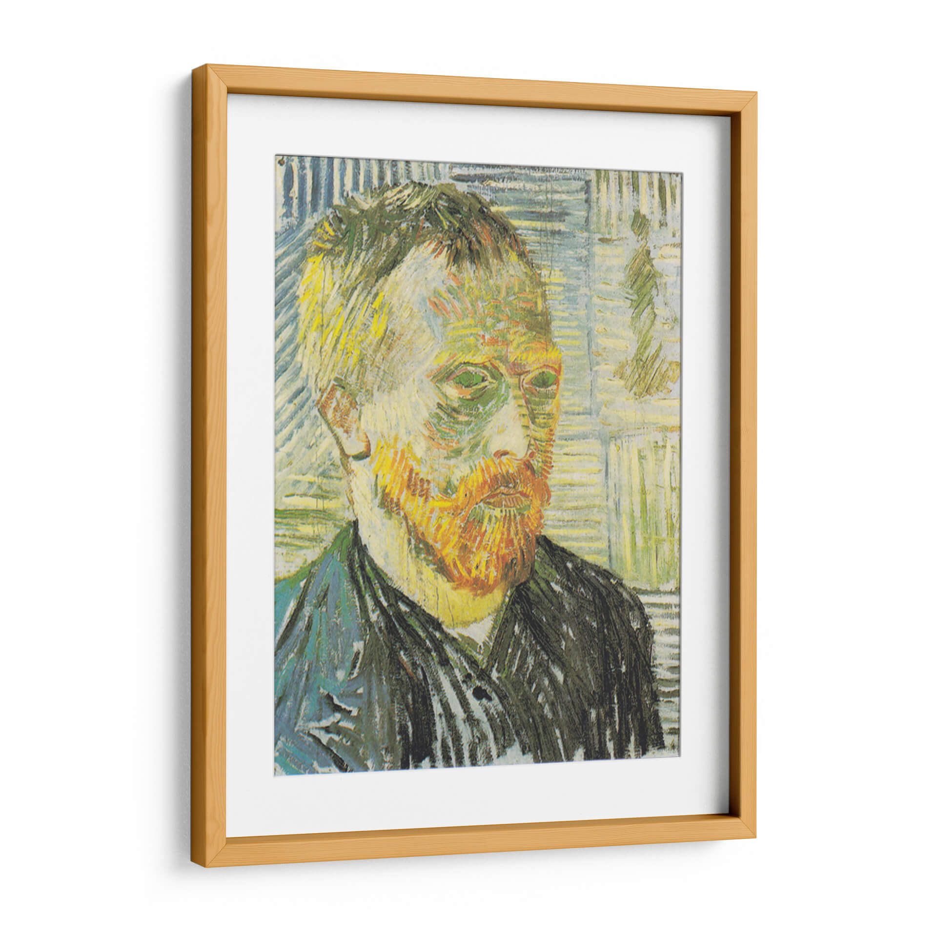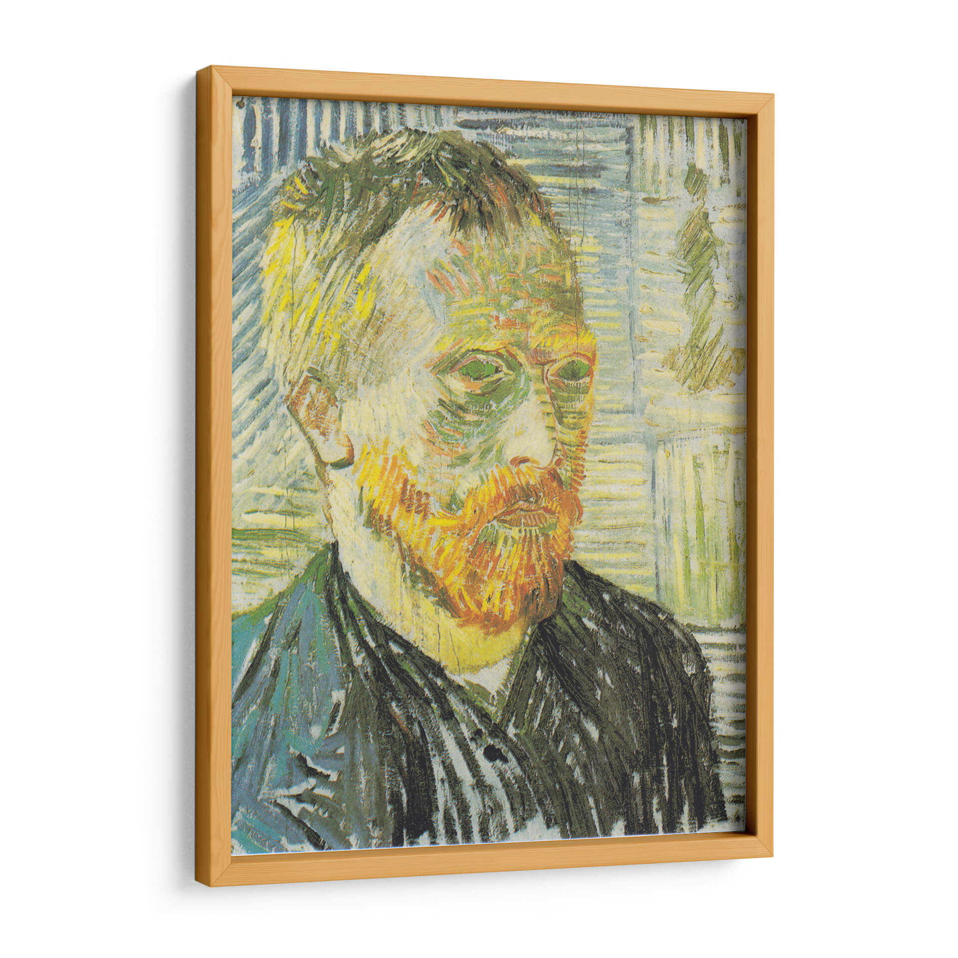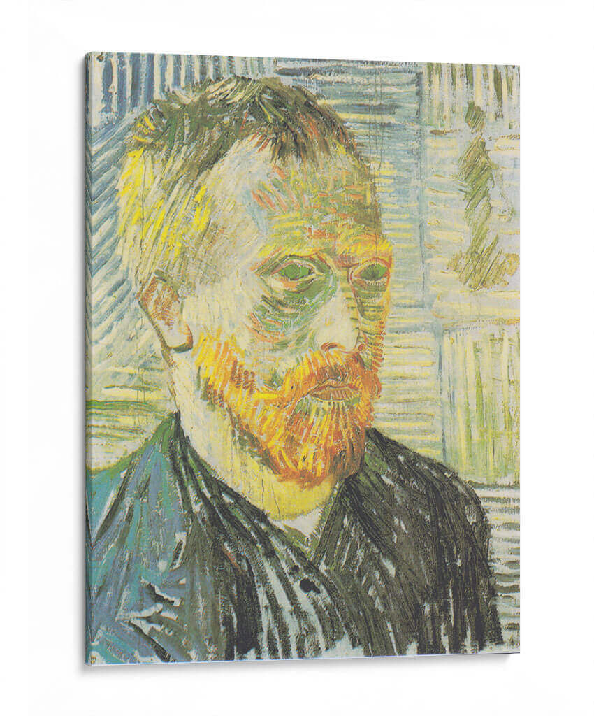 Sumérgete en la intensidad expresiva del "Autorretrato con estampado japonés" de Vincent Van Gogh. Este icónico cuadro decorativo captura la esencia del artista a través de pinceladas audaces y una paleta de colores vibrantes que mezclan tonos terrosos con toques de amarillo y azul. La obra presenta un primer plano introspectivo del rostro de Van Gogh, con su característica barba rojiza y mirada penetrante, enmarcado por un fondo texturizado que evoca los patrones de los estampados japoneses. La técnica postimpresionista del artista dota a la pieza de una energía palpable y una profundidad emocional, transmitiendo una sensación de introspección y pasión. Este retrato es ideal para añadir un toque de carácter y sofisticación a cualquier espacio, desde una sala de estar moderna hasta un estudio de artista o una oficina que busque inspiración. Su fuerte presencia visual lo convierte en un punto focal cautivador, perfecto para aquellos que aprecian el arte clásico con un giro contemporáneo y desean rodearse de obras que inspiren reflexión y admiración. Añade esta obra maestra a tu colección y experimenta la genialidad de Van Gogh en tu hogar.