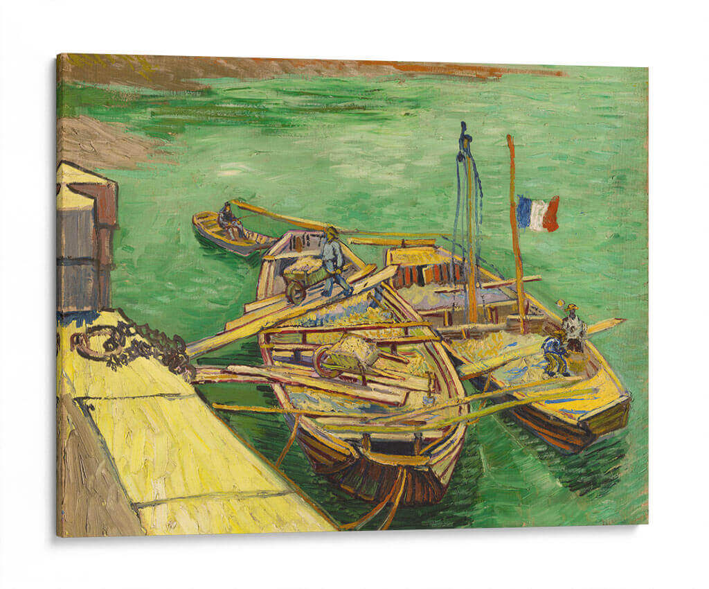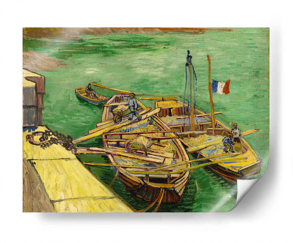 Muelle con hombres descargando barcazas de arena - Vincent Van Gogh