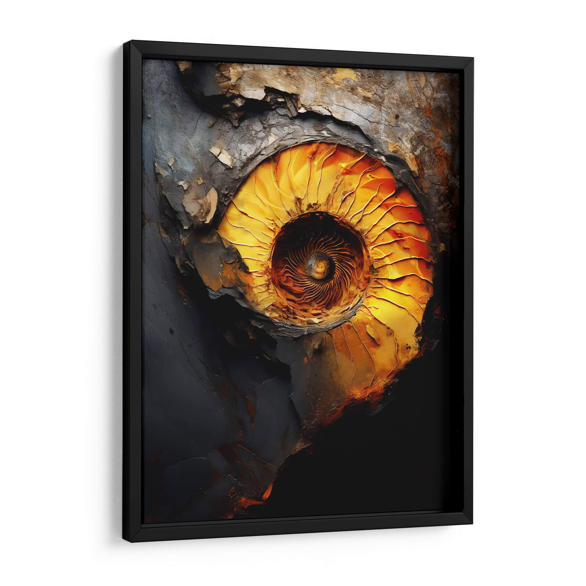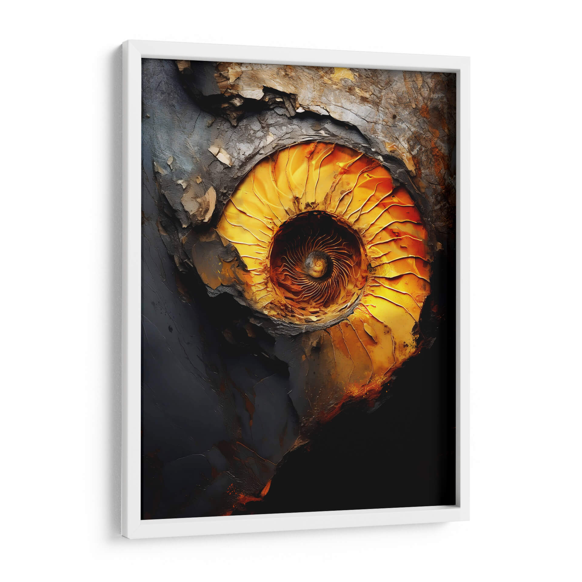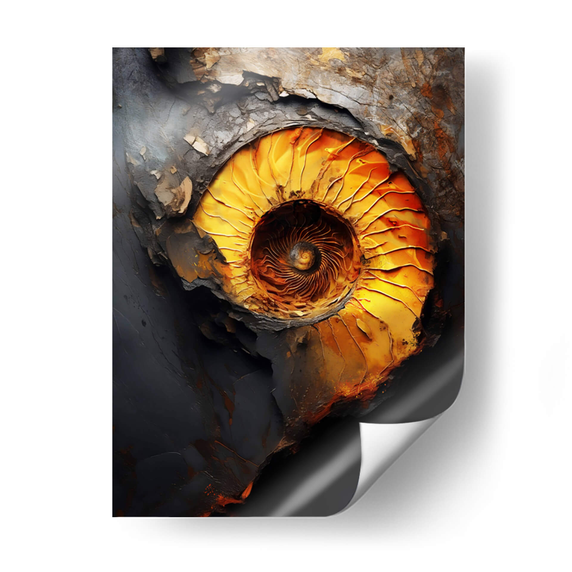 Sumérgete en la fascinante espiral de "El Caos de la Perfección", una obra maestra de Raúl Bermudez que captura la complejidad de la forma y el color. Esta pieza abstracta explora la profunda conexión entre el orden y el desorden, representada a través de una paleta de colores vibrantes que van desde intensos dorados y naranjas hasta profundos grises y negros. La composición evoca la fuerza de la naturaleza, remitiendo a la estructura intrincada de un fósil o un remolino cósmico. Cada pincelada, cargada de textura y emoción, invita a la contemplación, creando un punto focal dinámico para cualquier espacio. "El Caos de la Perfección" es más que un simple cuadro decorativo; es una ventana a la reflexión sobre la belleza que reside en las dualidades de la existencia. Ideal para salas de estar modernas, estudios o cualquier lugar donde se busque inspirar conversación y admiración. Transforma tu hogar con este cuadro abstracto que combina la energía cruda con una elegancia sorprendente, añadiendo un toque de sofisticación contemporánea y misterio.