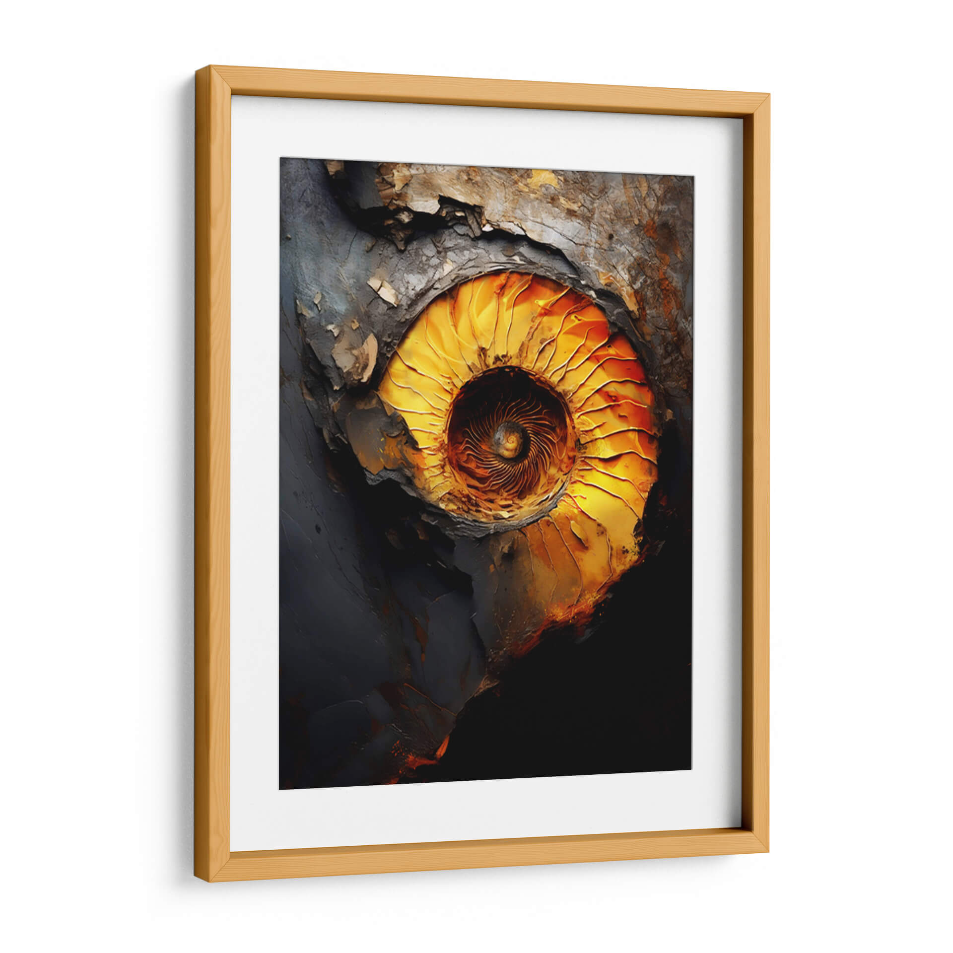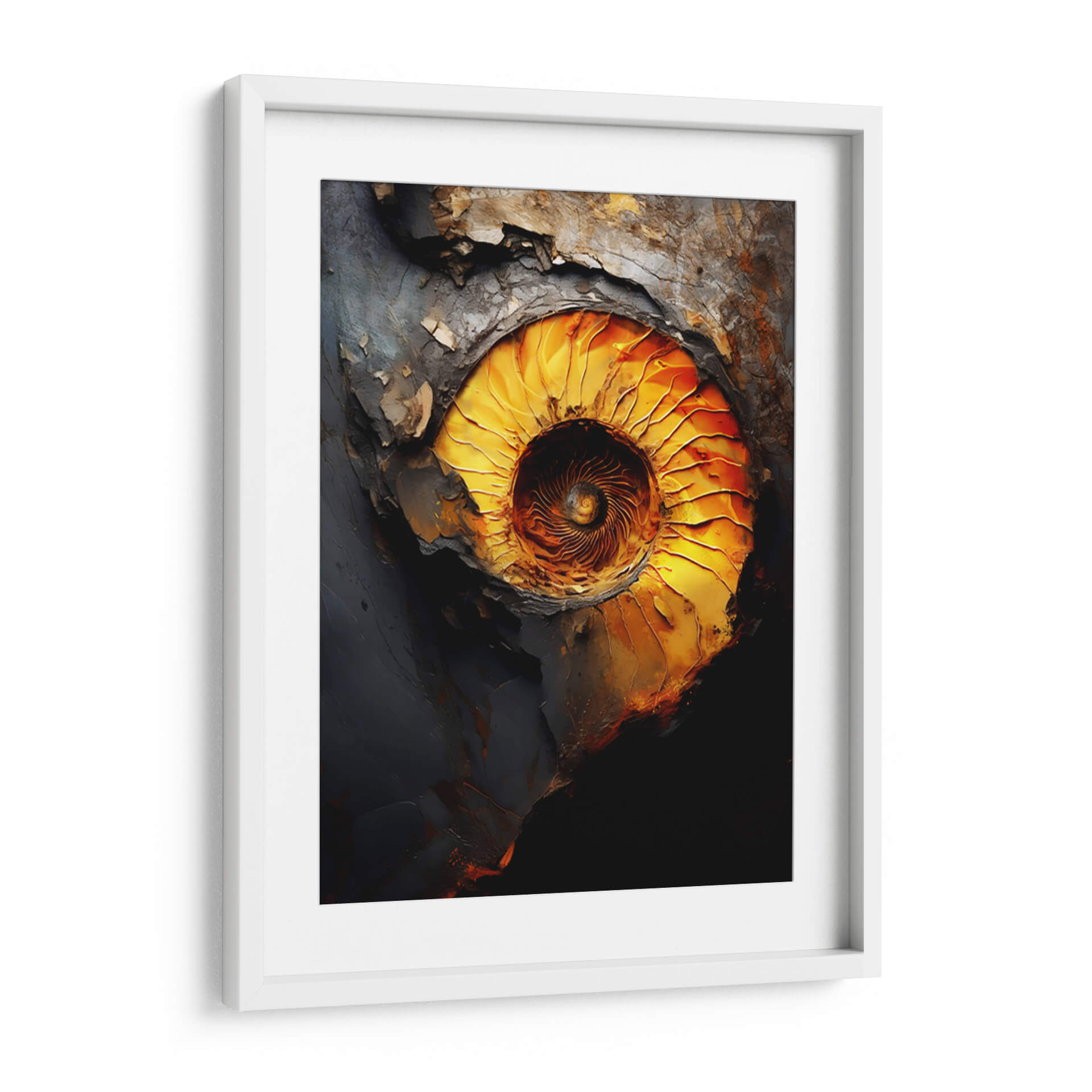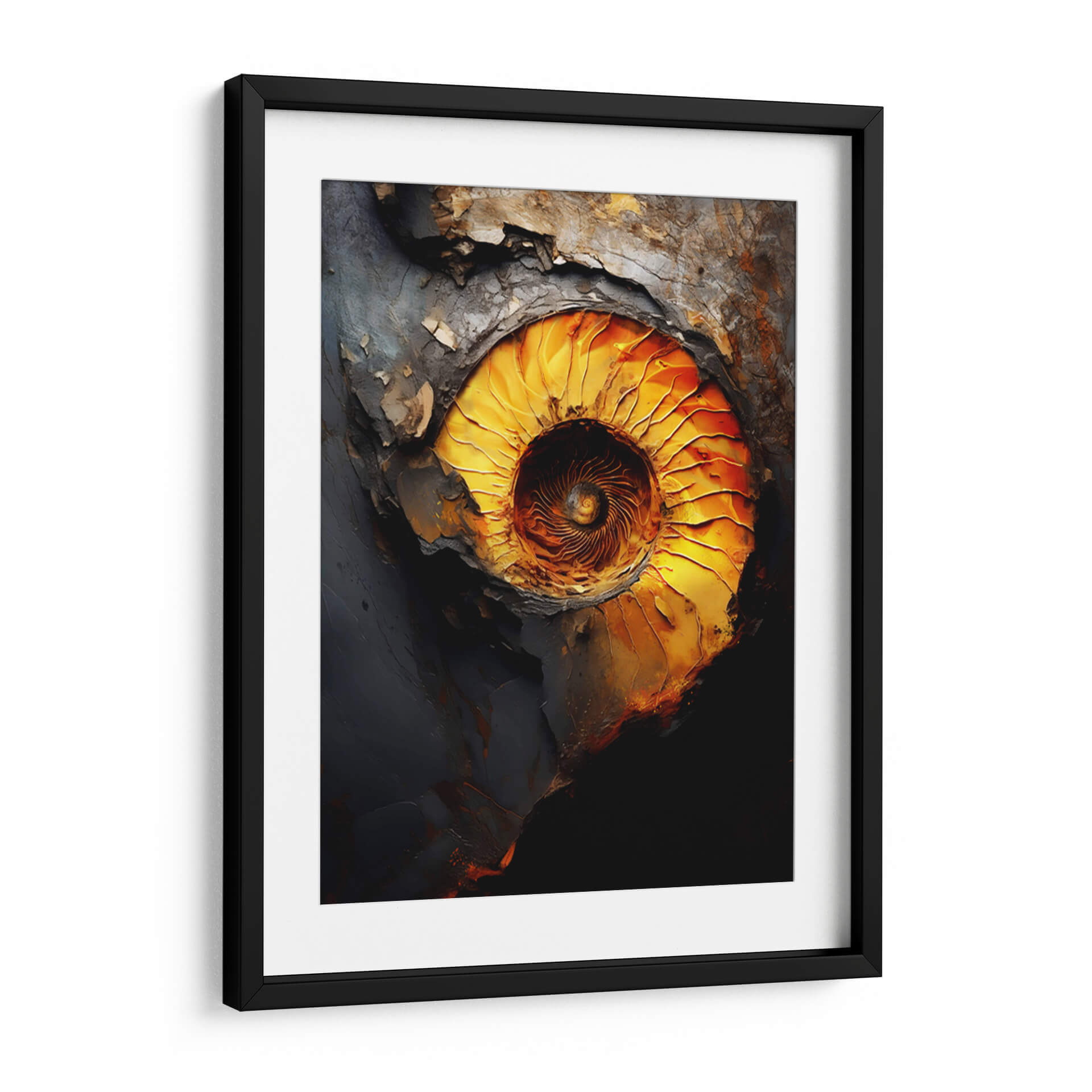 Sumérgete en la fascinante espiral de "El Caos de la Perfección", una obra maestra de Raúl Bermudez que captura la complejidad de la forma y el color. Esta pieza abstracta explora la profunda conexión entre el orden y el desorden, representada a través de una paleta de colores vibrantes que van desde intensos dorados y naranjas hasta profundos grises y negros. La composición evoca la fuerza de la naturaleza, remitiendo a la estructura intrincada de un fósil o un remolino cósmico. Cada pincelada, cargada de textura y emoción, invita a la contemplación, creando un punto focal dinámico para cualquier espacio. "El Caos de la Perfección" es más que un simple cuadro decorativo; es una ventana a la reflexión sobre la belleza que reside en las dualidades de la existencia. Ideal para salas de estar modernas, estudios o cualquier lugar donde se busque inspirar conversación y admiración. Transforma tu hogar con este cuadro abstracto que combina la energía cruda con una elegancia sorprendente, añadiendo un toque de sofisticación contemporánea y misterio.