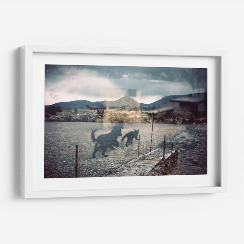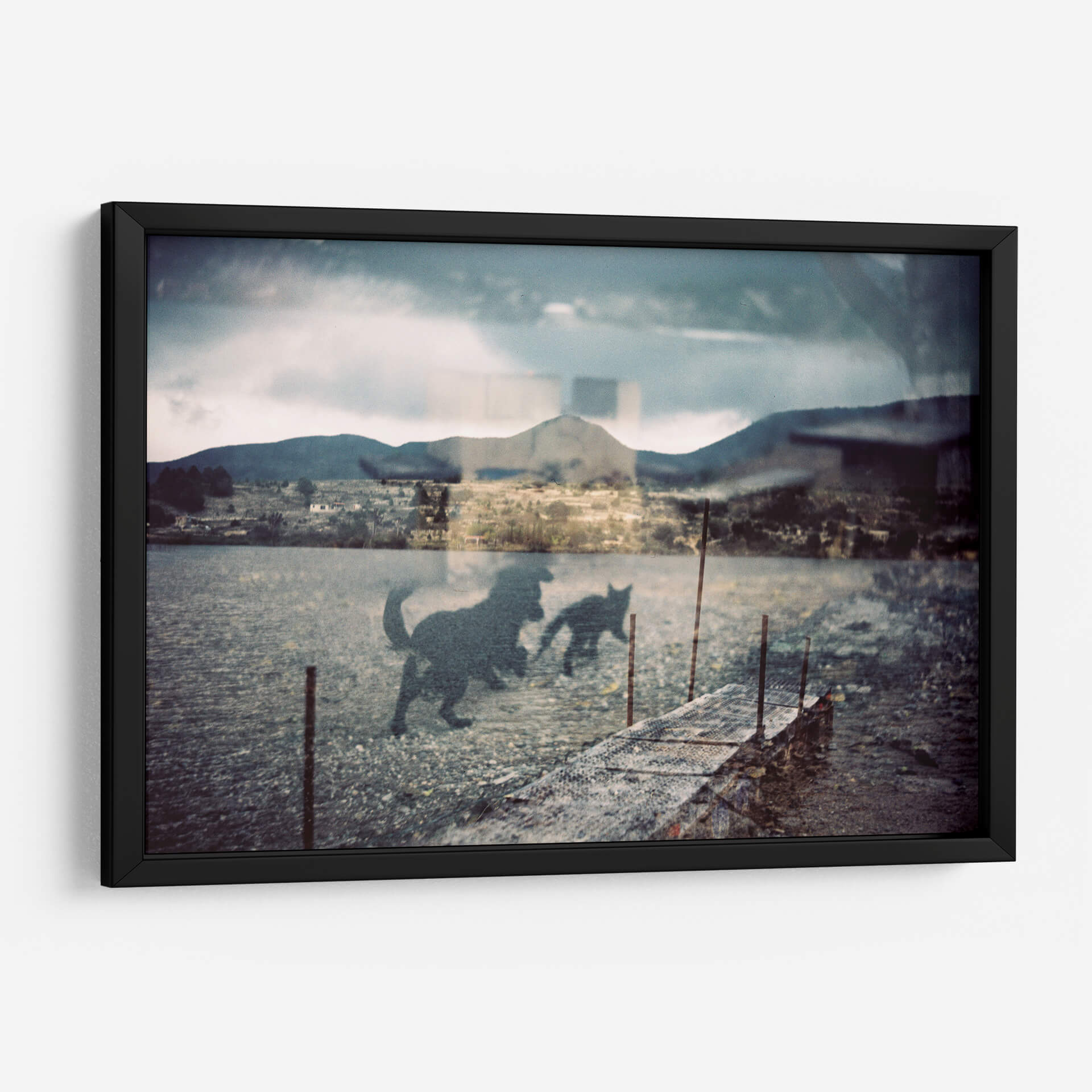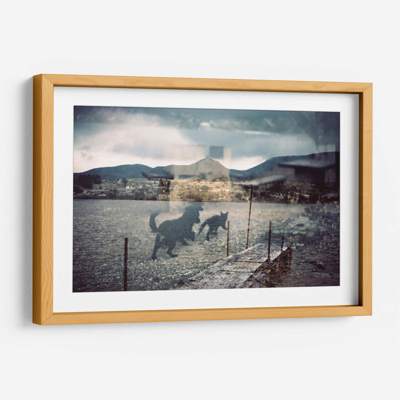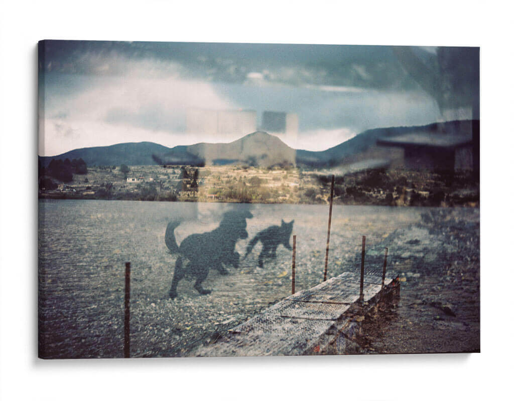 Captura la esencia de la vida rural y la inocencia infantil con este evocador cuadro decorativo, "Dos amigos jugando en el pueblo de Galeana NL", obra del artista Raúl Ruz. La pieza presenta una escena conmovedora donde la silueta de dos perros, llenos de energía y vitalidad, corre a orillas de un cuerpo de agua sereno. El fondo se despliega en un paisaje montañoso, con el cielo nublado que aporta una atmósfera introspectiva y a la vez dinámica. Los colores predominantes son tonos fríos y terrosos, con sutiles toques de luz que sugieren la presencia de un pueblo a lo lejos, creando una sensación de profundidad y realismo con un toque artístico. El estilo pictórico, con una textura que evoca fotografía antigua o pintura al óleo, invita a la contemplación y a la conexión emocional. Este cuadro es ideal para añadir un punto de interés y calidez a salones, estudios o habitaciones infantiles, transformando cualquier espacio en un refugio de paz y recuerdos. La composición, que equilibra las figuras en primer plano con el vasto paisaje de fondo, genera una narrativa visual que captura la atención y estimula la imaginación, haciendo de esta obra una pieza única para quienes buscan arte con alma y una historia que contar.
