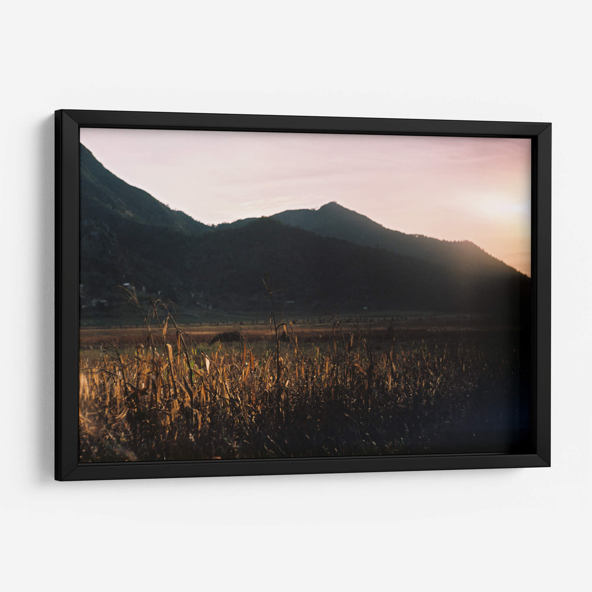 Captura la serenidad y la belleza efímera del amanecer en la 'Laguna Seca' con este evocador cuadro decorativo del artista Raúl Ruz. La obra nos transporta a un paisaje rural donde imponentes montañas se perfilan contra un cielo teñido de suaves tonos rosados y anaranjados, anunciando la llegada de un nuevo día. La luz del sol se filtra sutilmente entre las siluetas montañosas, creando un juego de luces y sombras que añade profundidad y misterio a la escena. En primer plano, la vegetación dorada, posiblemente de un campo de maíz maduro, capta los últimos destellos de la madrugada, aportando textura y un toque rústico. Esta pieza, con su atmósfera tranquila y su paleta de colores cálidos y terrosos, es ideal para infundir paz y conexión con la naturaleza en cualquier espacio. Perfecta para salas de estar, dormitorios o estudios que busquen un toque de calma y sofisticación natural. Añade esta obra maestra a tu colección y deja que la serenidad de la 'Laguna Seca' transforme tu hogar.