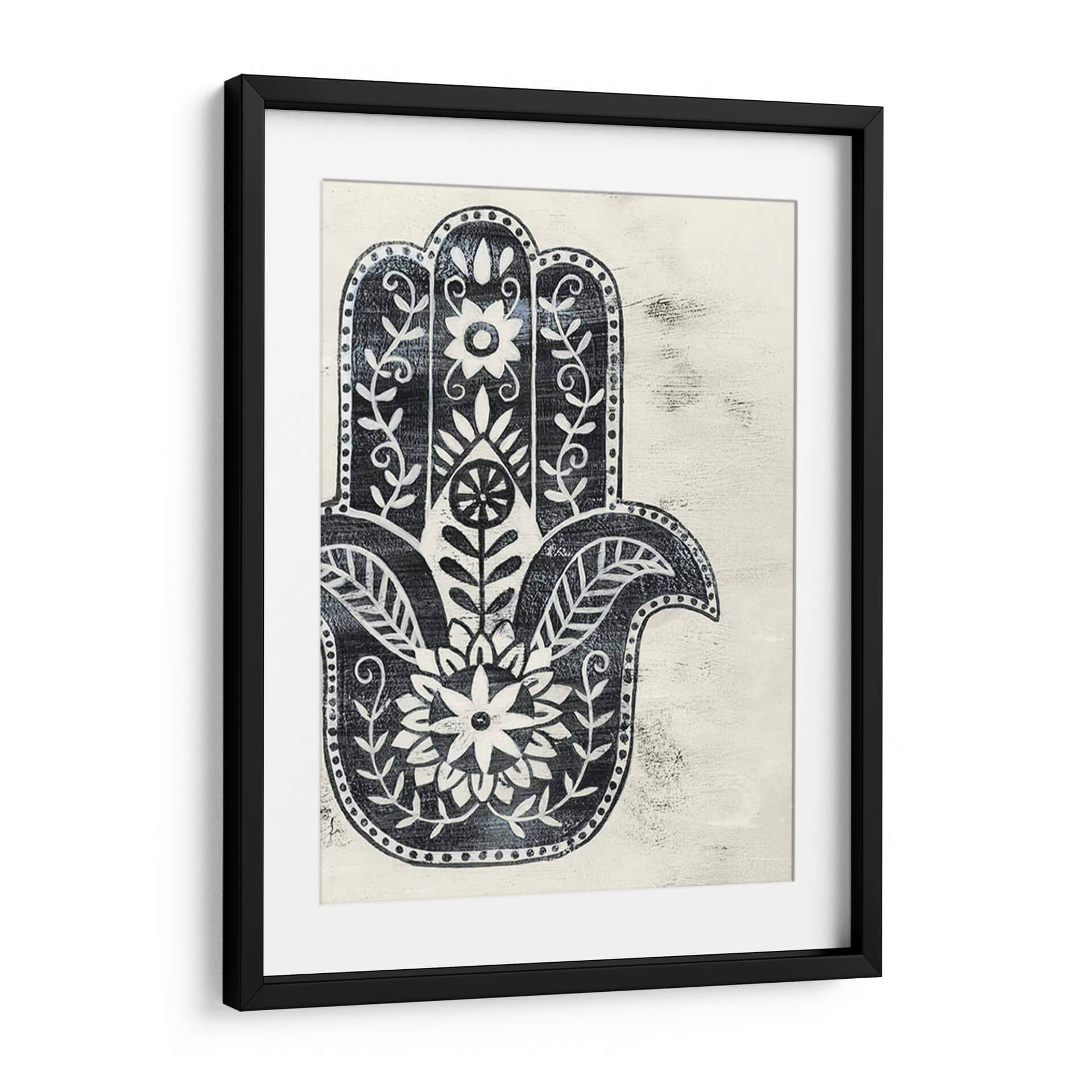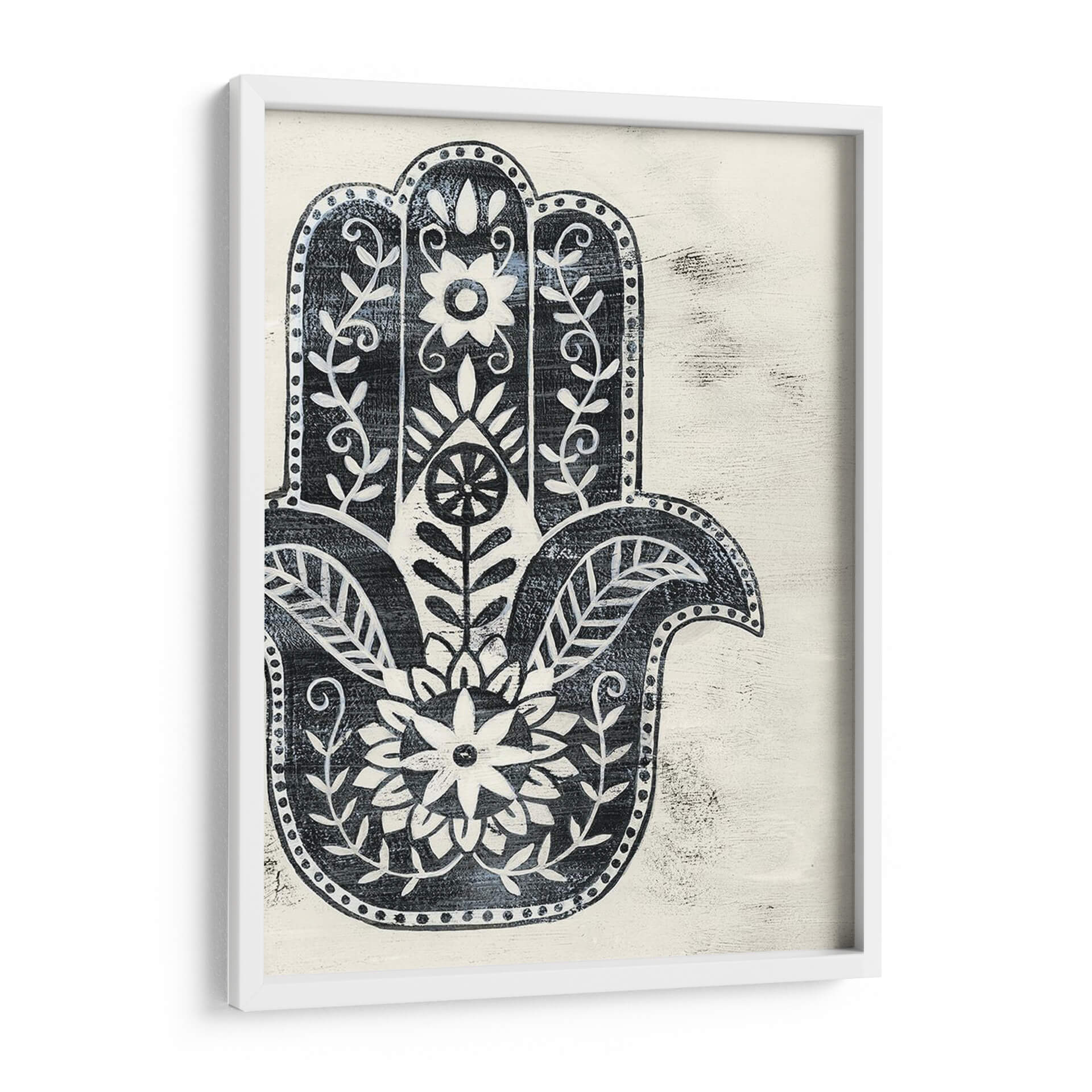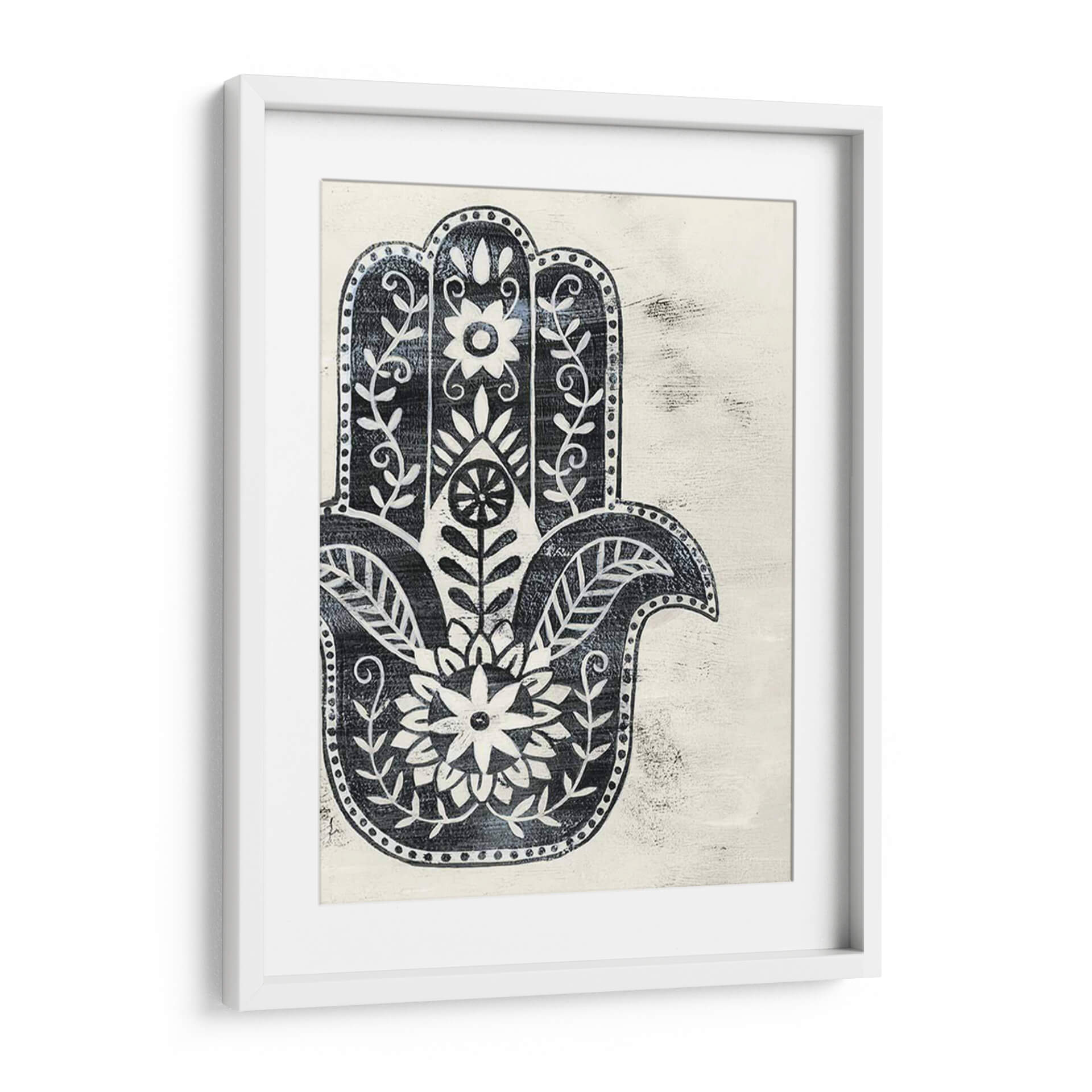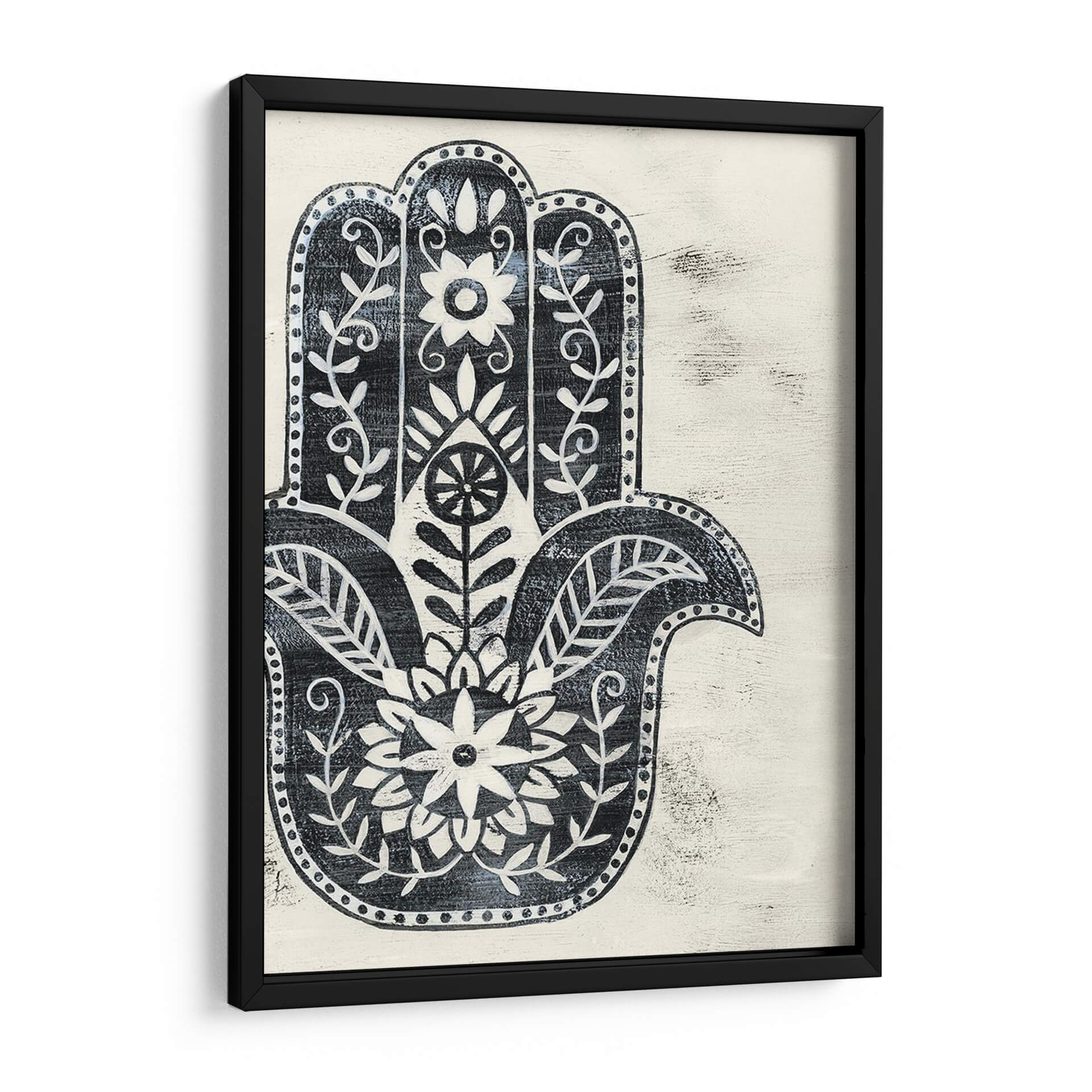 Sumérgete en la protección y la belleza con "Día Hamsa I", una obra de arte decorativo que evoca serenidad y significado cultural. Esta pieza presenta el icónico símbolo de la mano de Fátima o Hamsa, representado con intrincados detalles florales y un estilo que recuerda a los grabados antiguos y la artesanía textil. La paleta de colores, dominada por un profundo azul índigo sobre un fondo de textura cremosa y desgastada, crea un contraste visual cautivador y una atmósfera de calma y protección. Cada línea y cada patrón floral están diseñados para atraer la mirada, invitando a la contemplación y a la apreciación de su simbolismo ancestral. El estilo distintivo de Grace Popp se manifiesta en la delicadeza de los trazos y la composición simétrica, que aporta un equilibrio visual armonioso. "Día Hamsa I" es ideal para añadir un toque de elegancia bohemia y espiritualidad a cualquier espacio, ya sea un salón, un dormitorio o una zona de meditación. Este cuadro decorativo no solo embellece tu hogar, sino que también infunde una sensación de paz y bienestar, sirviendo como un recordatorio diario de la protección y la buena fortuna. Descubre cómo esta pieza puede transformar tu ambiente, aportando carácter y una conexión profunda con la tradición.