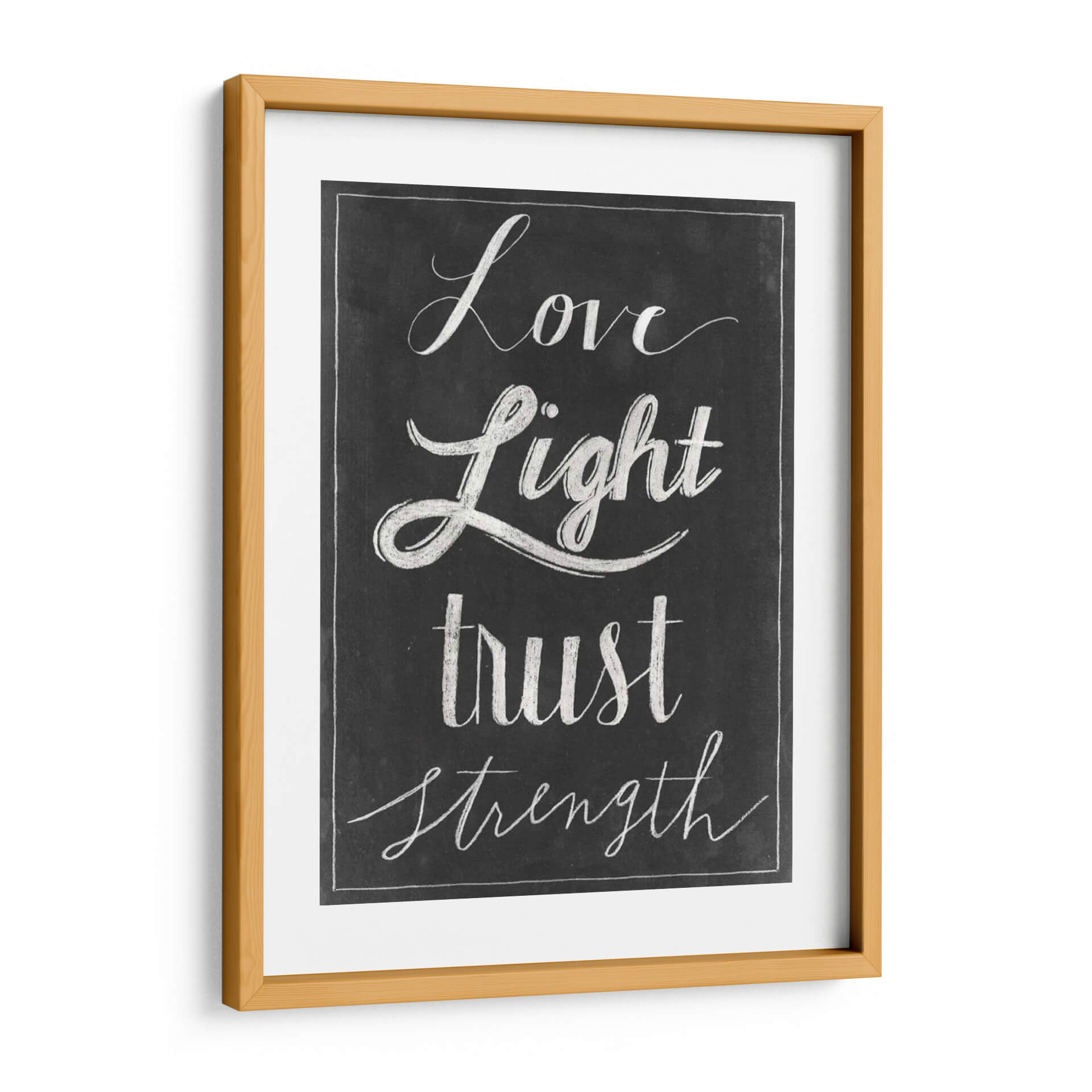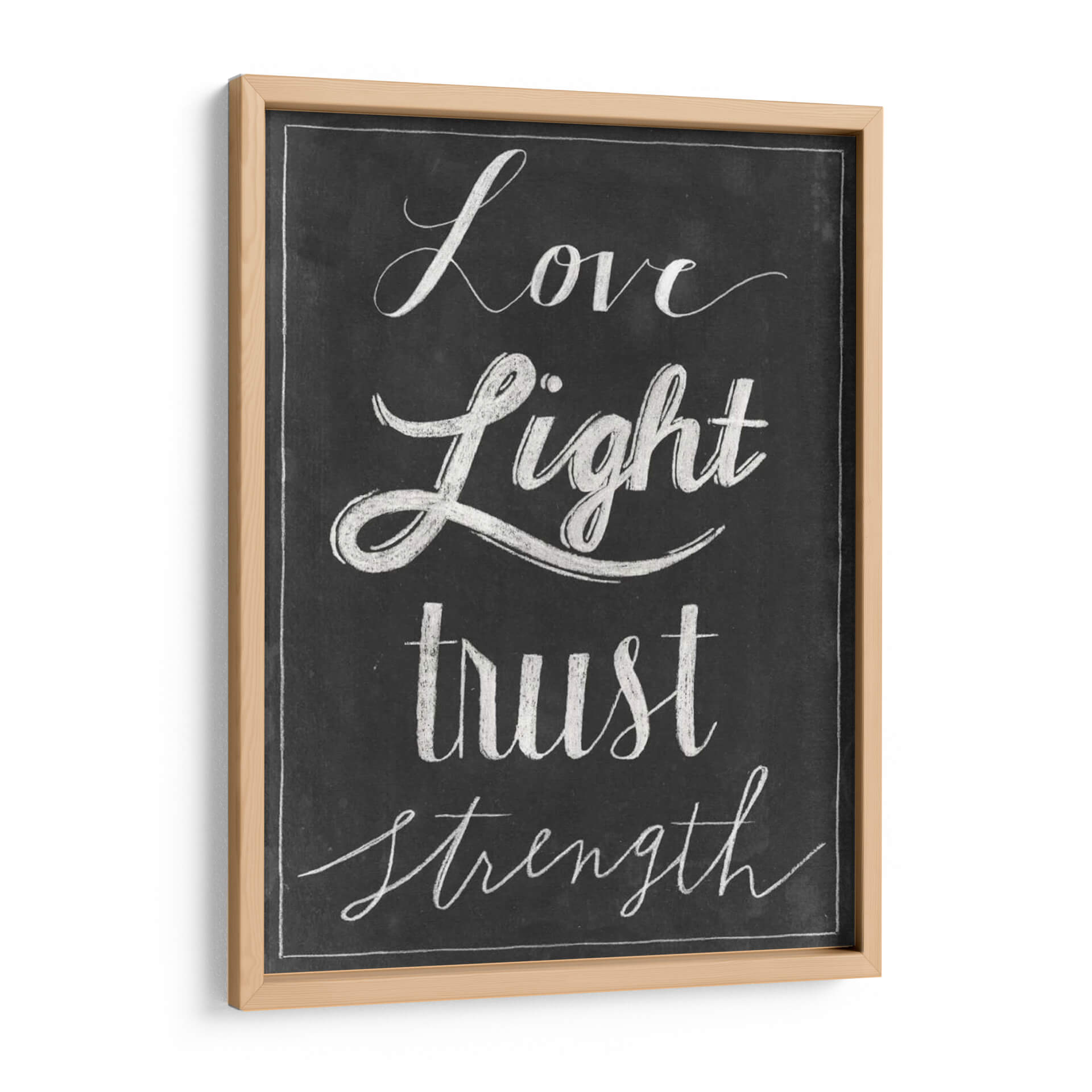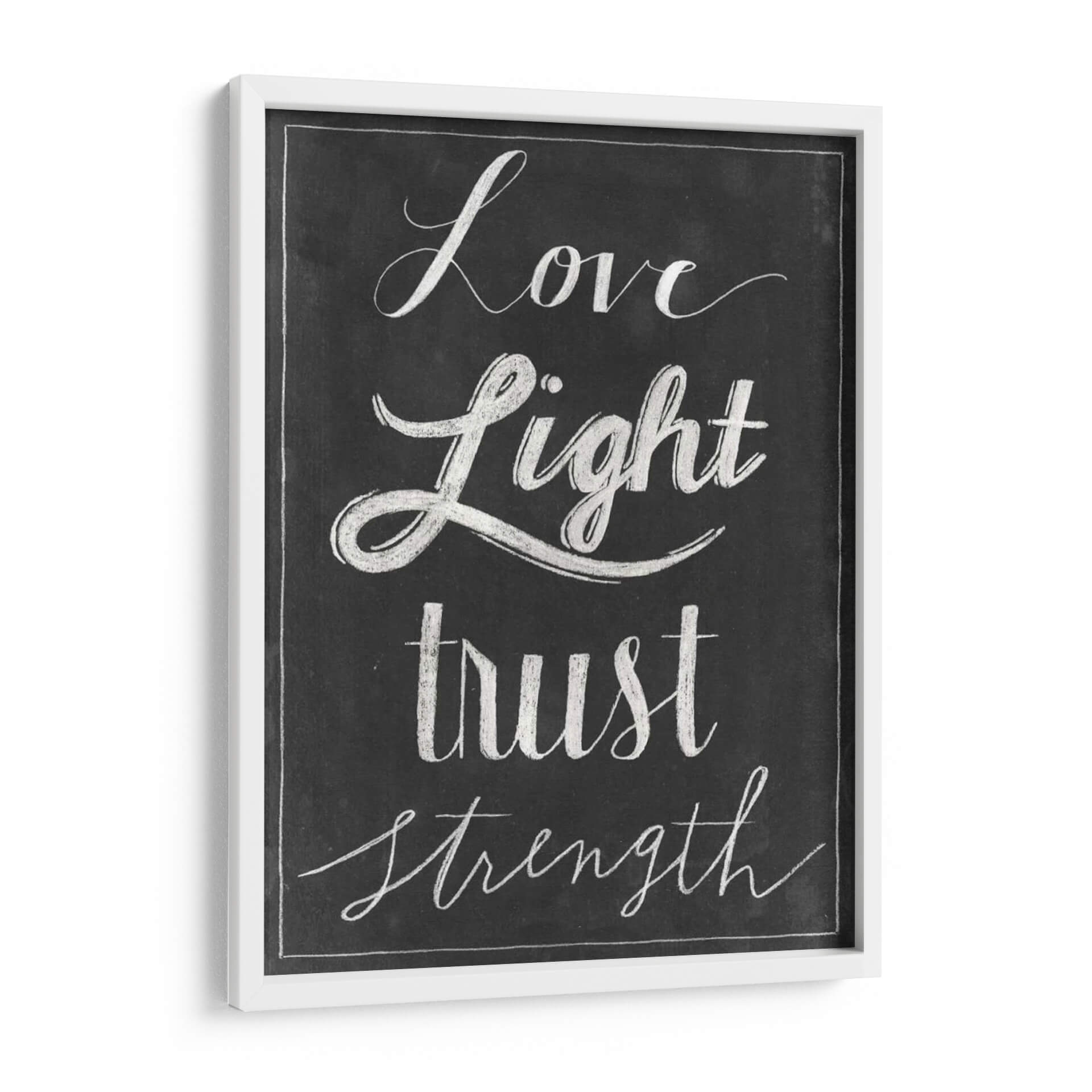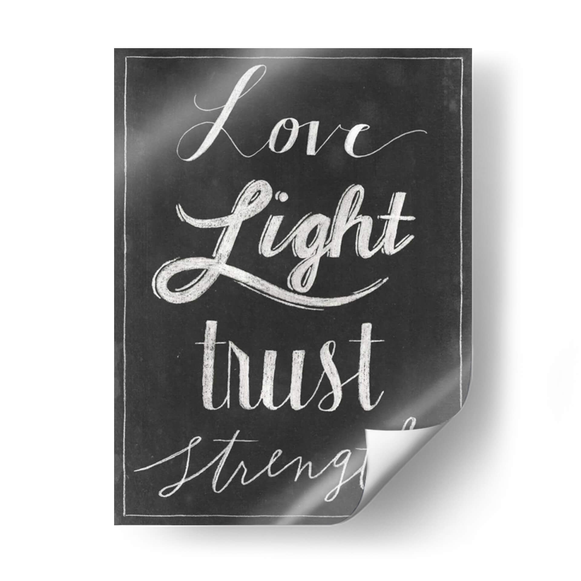 Inspira tu hogar u oficina con "Faith De La Pizarra Vi", una obra de arte que evoca serenidad y fortaleza. Este cuadro decorativo presenta una caligrafía elegante en blanco sobre un fondo oscuro que simula una pizarra, creando un contraste visual cautivador. Las palabras 'Love', 'Light', 'Trust' y 'Strength' se despliegan con trazos fluidos y expresivos, invitando a la reflexión y al optimismo. El estilo de pizarra, combinado con la tipografía cursiva, aporta un toque rústico y a la vez contemporáneo, perfecto para una decoración que busca mensajes positivos y estéticos. Ideal para espacios donde se valora la inspiración diaria, como estudios, salas de estar o zonas de meditación. Su diseño atemporal y sus potentes palabras lo convierten en un recordatorio constante de los pilares fundamentales de la vida. Añade un toque de significado y estilo a tus paredes con esta pieza única que combina arte visual y mensaje inspirador, ideal para cualquier persona que busque un ambiente de paz y confianza en su entorno.