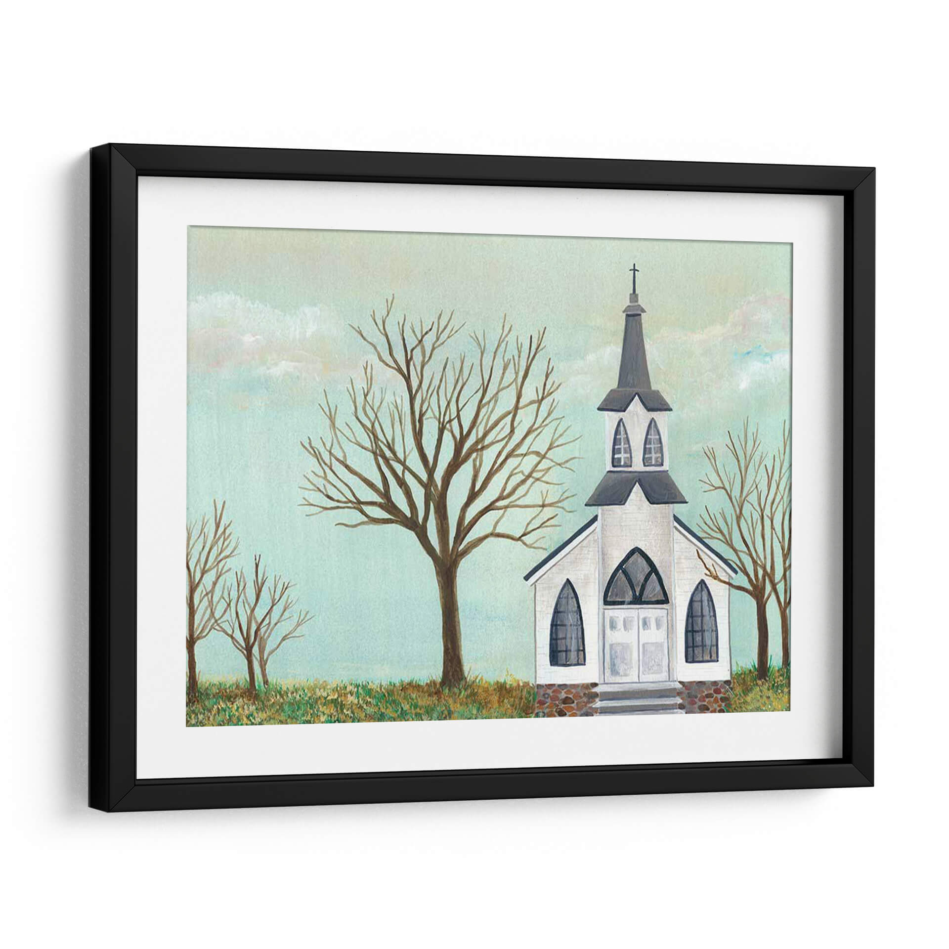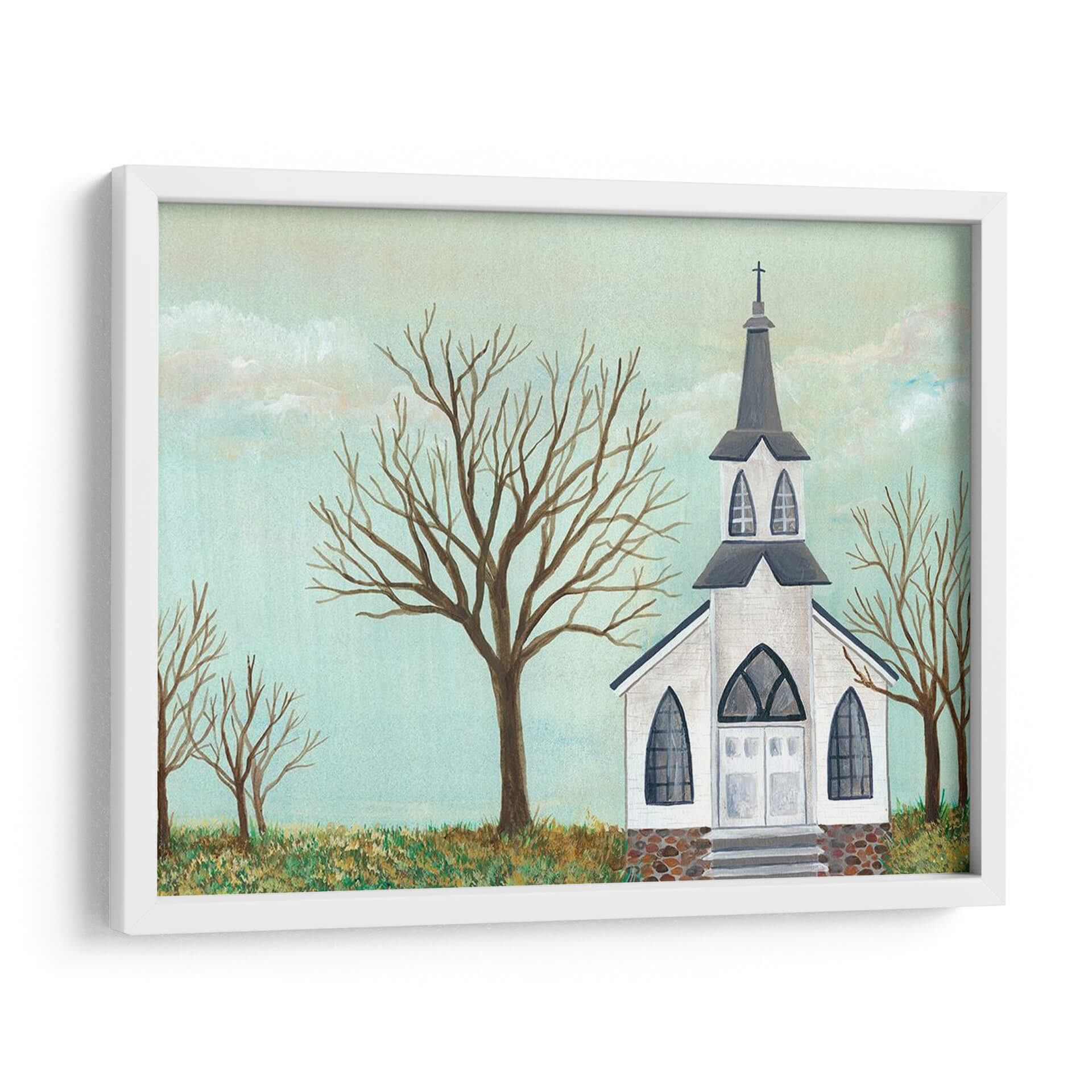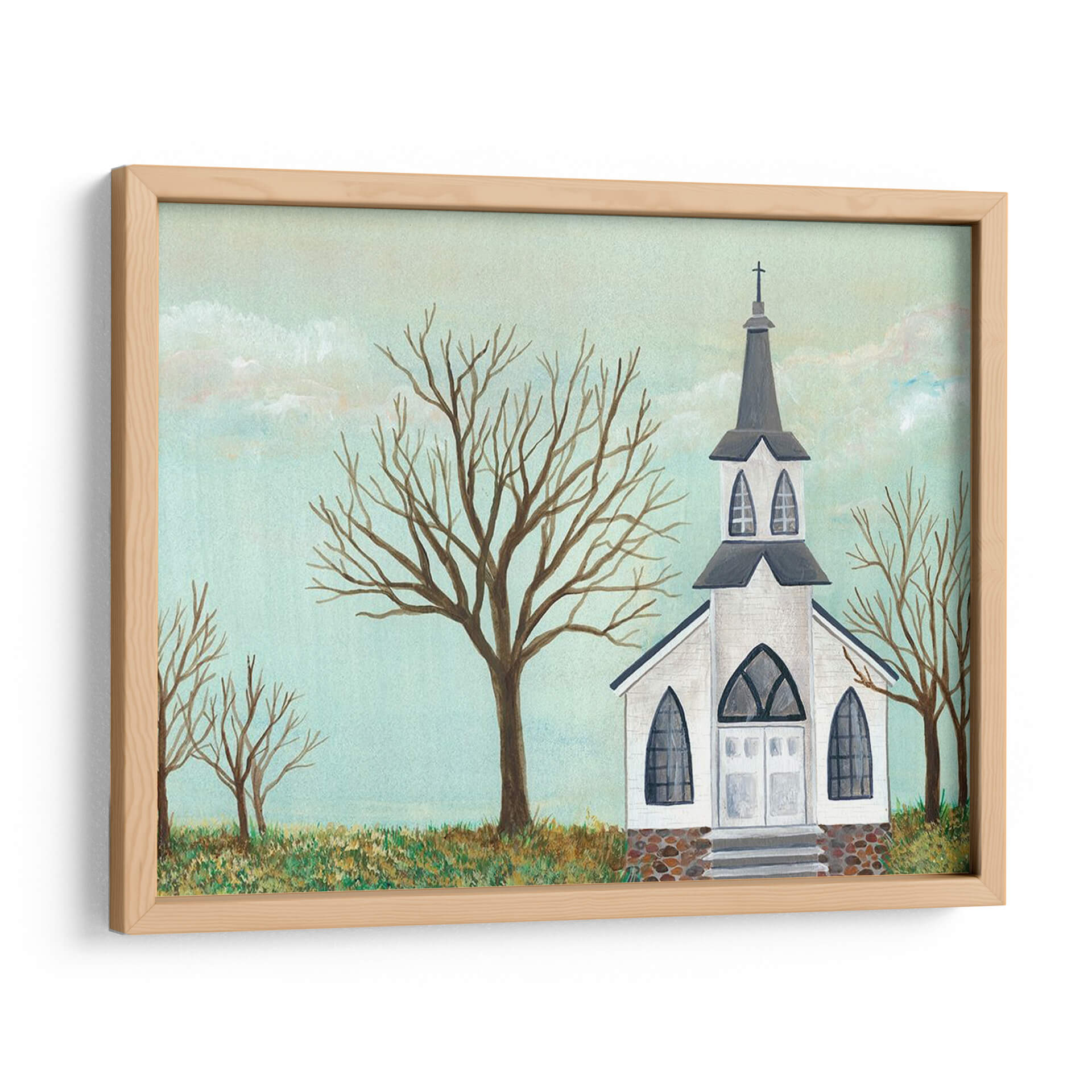 Sumérgete en la serenidad y el encanto rústico con "Iglesia Del País Ii", una obra de arte que captura la esencia de la vida rural. Regina Moore nos transporta a un paisaje tranquilo donde una pintoresca iglesia blanca, con su inconfundible campanario y arcos góticos en las ventanas, se alza como un faro de paz. Los árboles de ramas desnudas que la rodean añaden un toque melancólico y otoñal, contrastando con el cielo de tonos celestes y nubes rosáceas que evoca un atardecer sereno. La paleta de colores, dominada por suaves tonos pastel, crea una atmósfera de calma y nostalgia, ideal para infundir sosiego en cualquier espacio. Este cuadro decorativo es perfecto para quienes buscan una pieza que invite a la reflexión y aporte calidez al hogar u oficina. Su estilo, que fusiona lo naíf con toques de realismo campestre, lo convierte en un punto focal encantador para salones, dormitorios o incluso estudios, añadiendo un aire de sencillez y belleza atemporal. Deja que "Iglesia Del País Ii" te transporte a un refugio de tranquilidad.