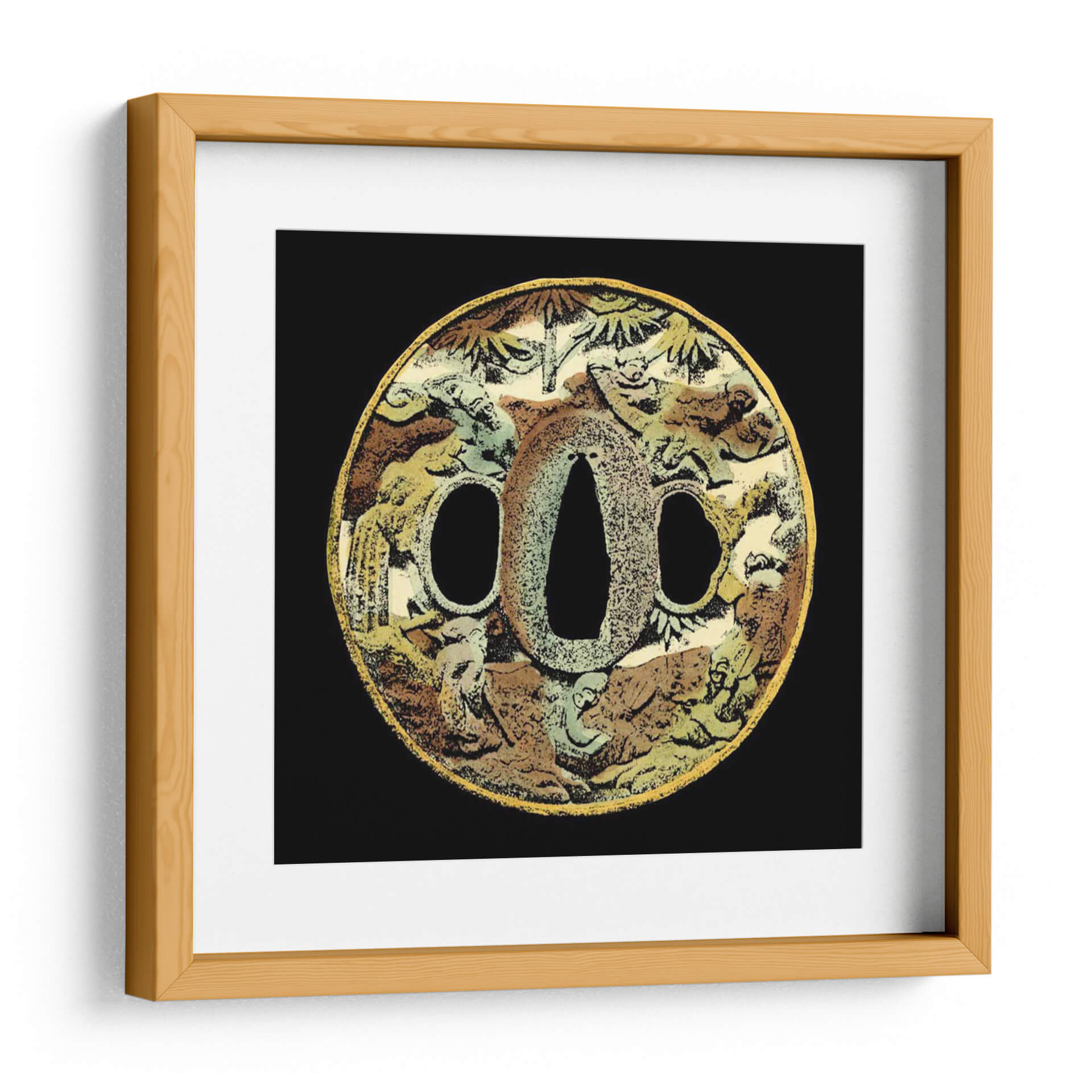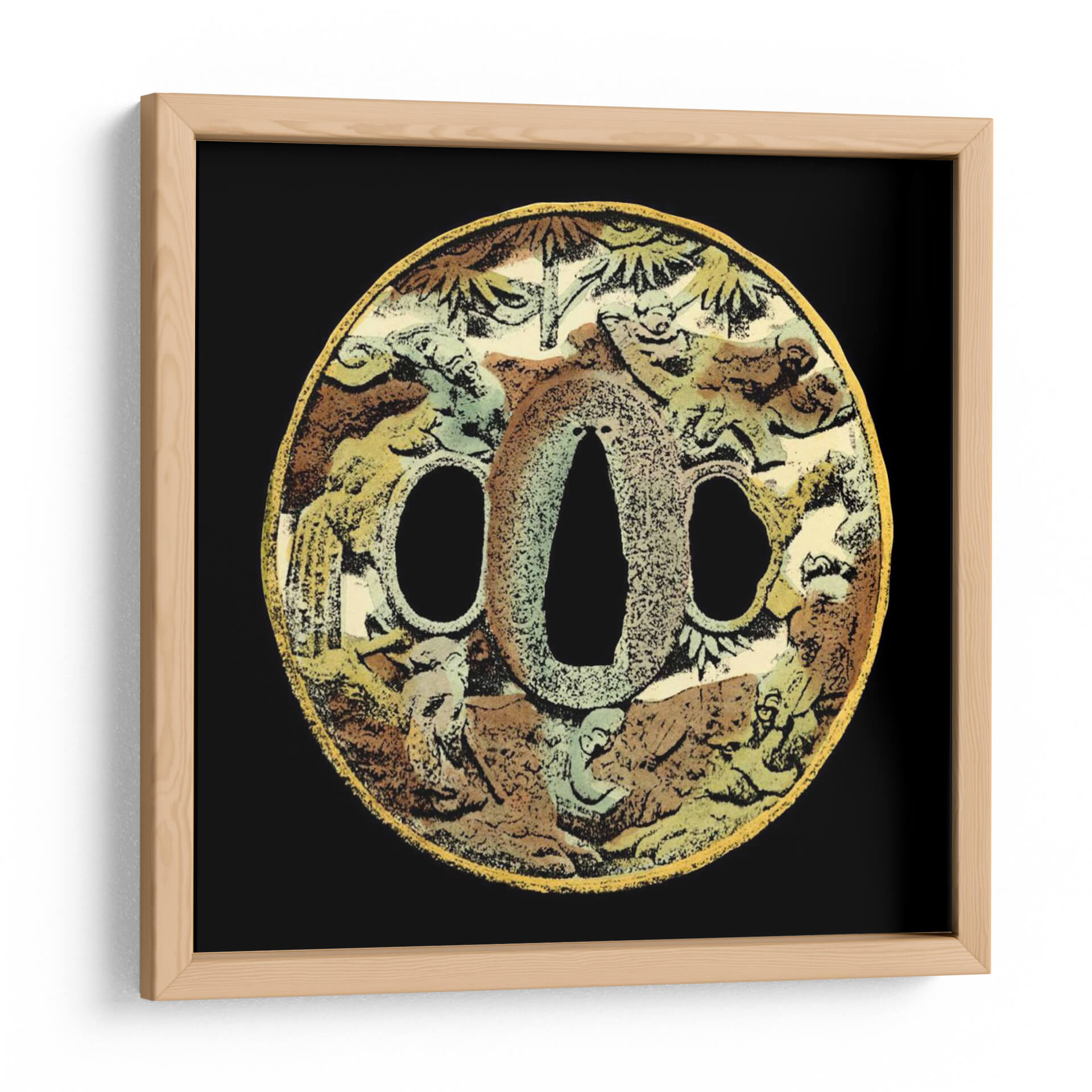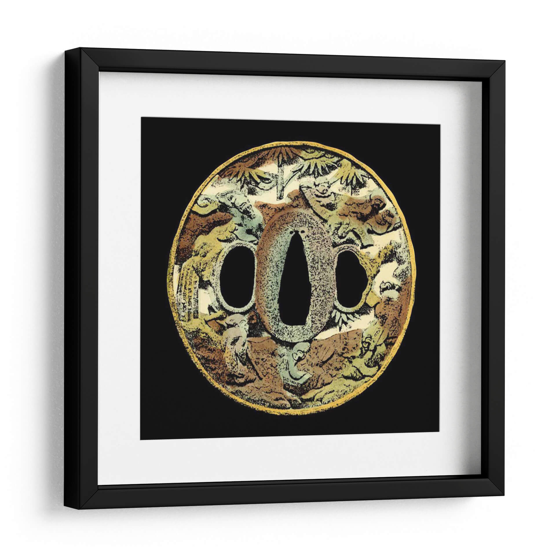 Sumérgete en la rica herencia cultural con el cuadro decorativo "Medallón Asiático I" de Vision Studio. Esta obra evoca la intrincada artesanía y la estética tradicional de Asia, presentando un diseño circular ricamente detallado que recuerda a los ornamentados guardamanos de espadas japonesas. La paleta de colores, dominada por tonos tierra, ocres y toques de verde azulado, confiere una profundidad y calidez únicas, creando una atmósfera de misterio y sofisticación. La composición circular, centrada en dos aberturas ovaladas, guía la mirada a través de una escena que parece contar historias ancestrales, con figuras y motivos que sugieren elementos de la naturaleza y la mitología. Ideal para espacios que buscan un toque de carácter y elegancia atemporal, este cuadro decorativo es perfecto para salas de estar, estudios u oficinas, aportando un aire de refinamiento y una conexión con el arte histórico. Su presencia transformará cualquier ambiente, invitando a la contemplación y al aprecio por el detalle.