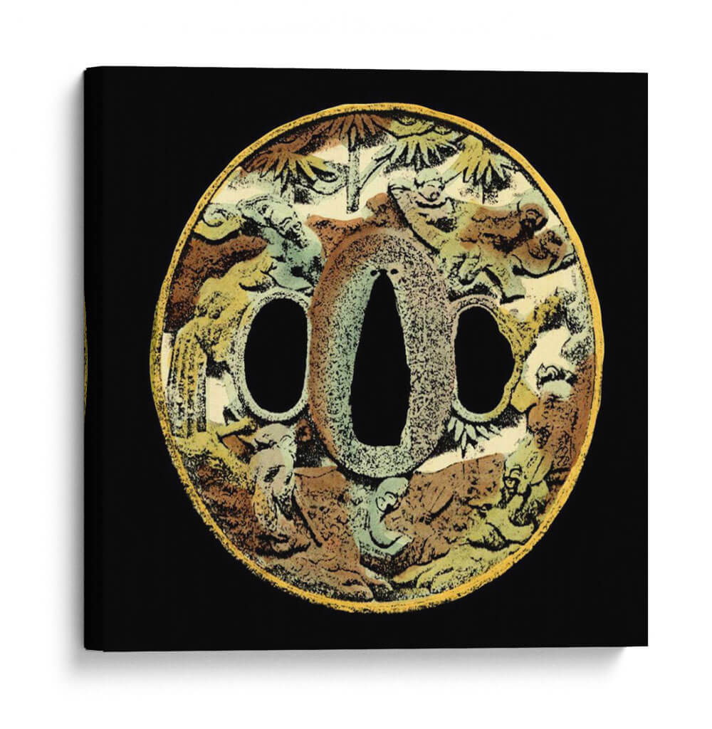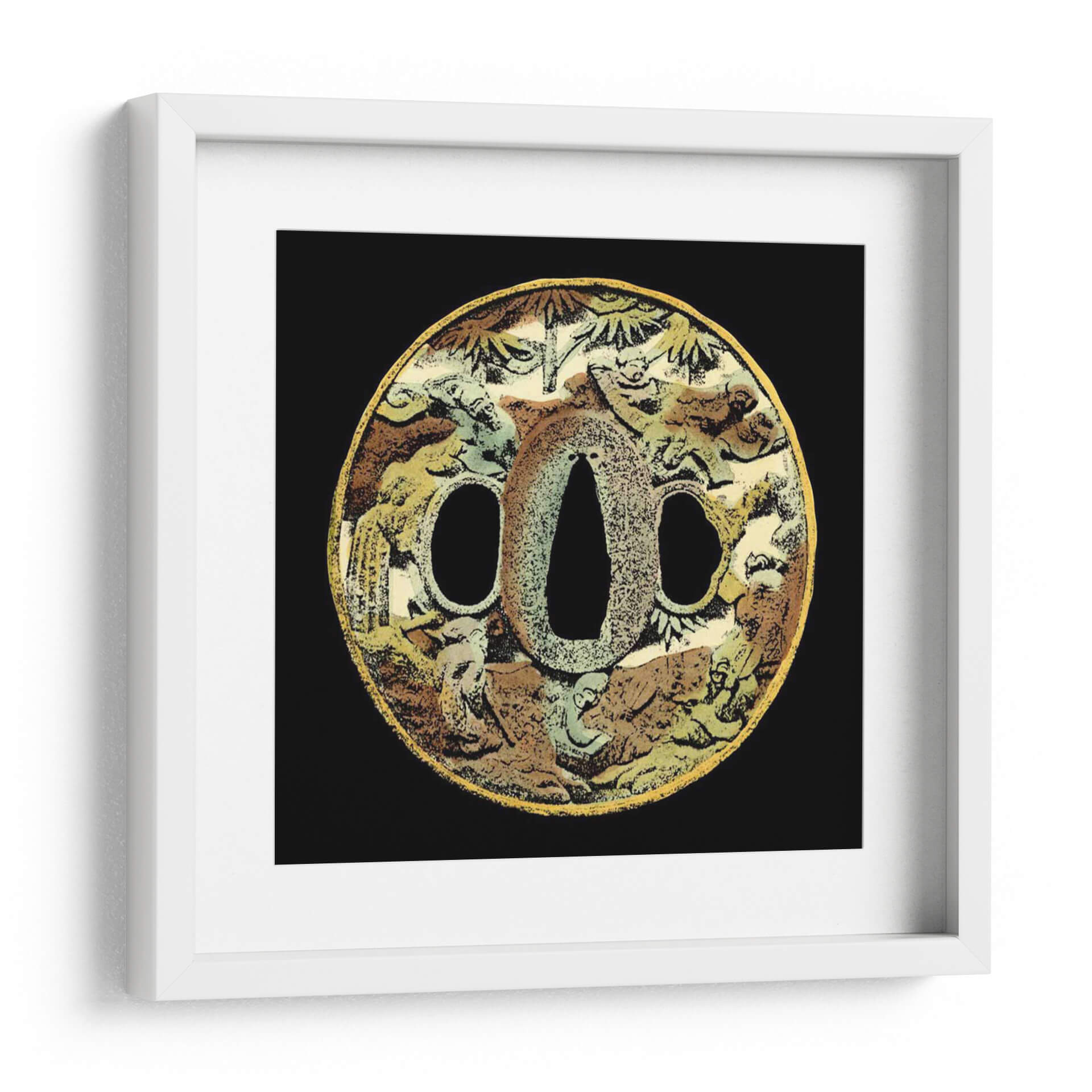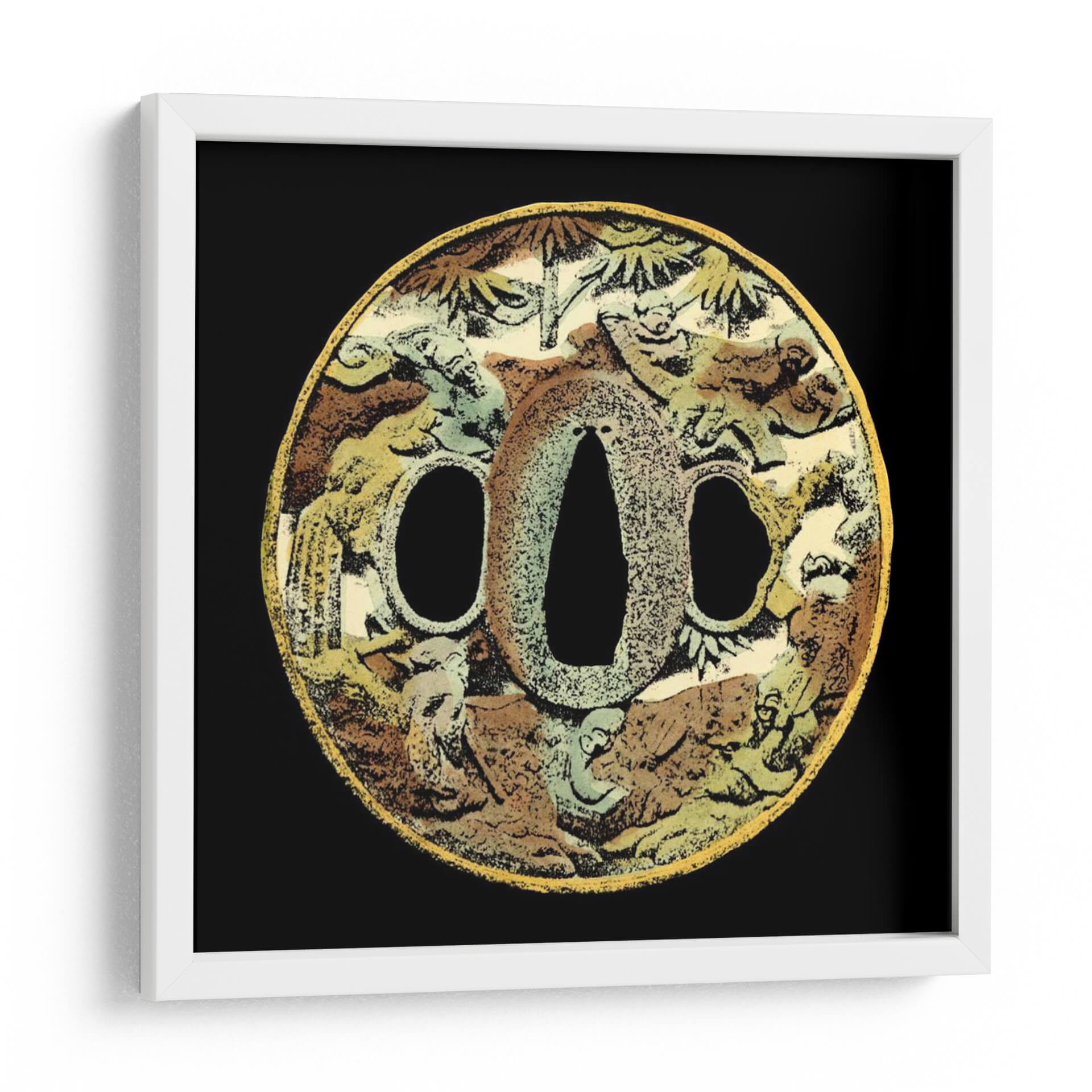 Sumérgete en la rica herencia cultural con el cuadro decorativo "Medallón Asiático I" de Vision Studio. Esta obra evoca la intrincada artesanía y la estética tradicional de Asia, presentando un diseño circular ricamente detallado que recuerda a los ornamentados guardamanos de espadas japonesas. La paleta de colores, dominada por tonos tierra, ocres y toques de verde azulado, confiere una profundidad y calidez únicas, creando una atmósfera de misterio y sofisticación. La composición circular, centrada en dos aberturas ovaladas, guía la mirada a través de una escena que parece contar historias ancestrales, con figuras y motivos que sugieren elementos de la naturaleza y la mitología. Ideal para espacios que buscan un toque de carácter y elegancia atemporal, este cuadro decorativo es perfecto para salas de estar, estudios u oficinas, aportando un aire de refinamiento y una conexión con el arte histórico. Su presencia transformará cualquier ambiente, invitando a la contemplación y al aprecio por el detalle.