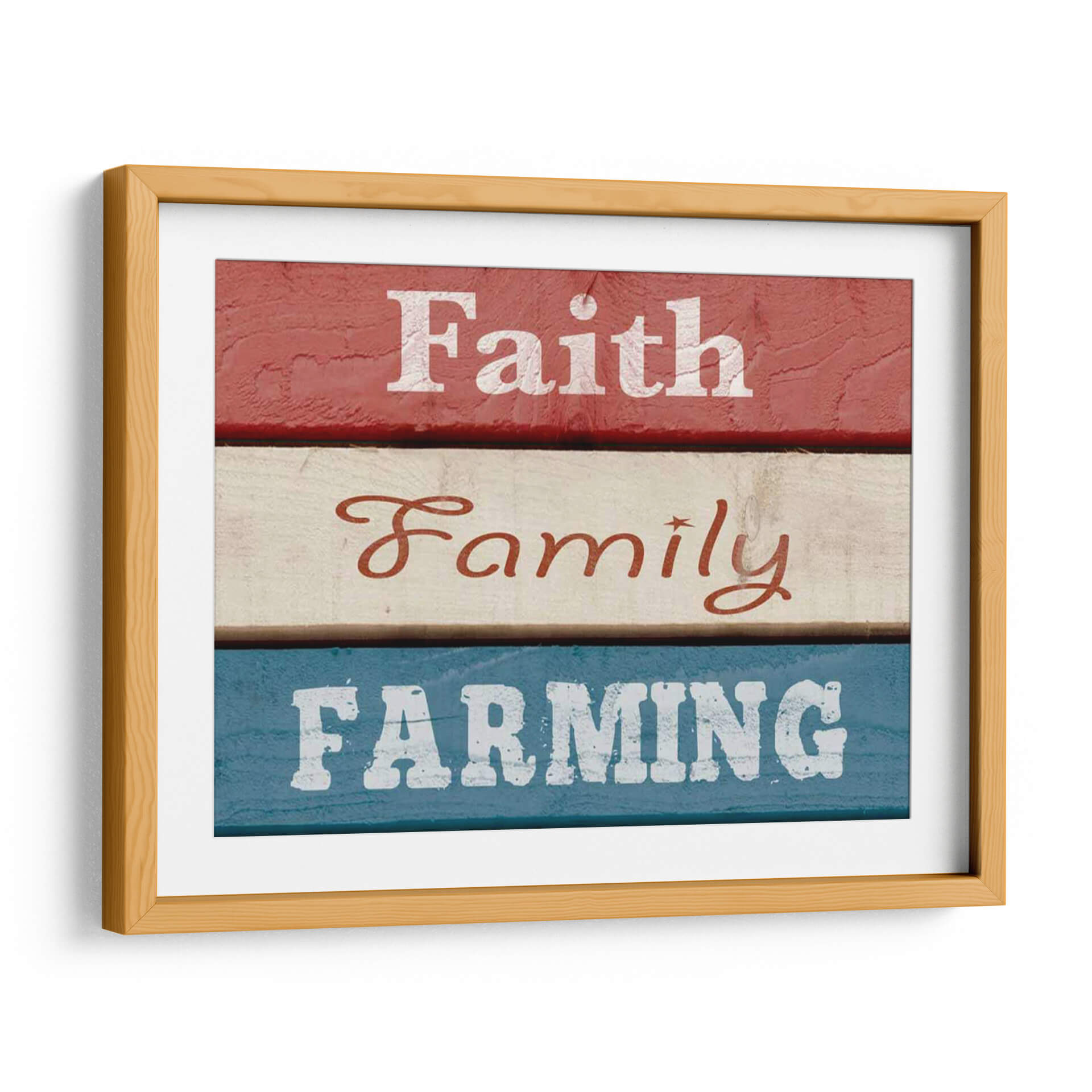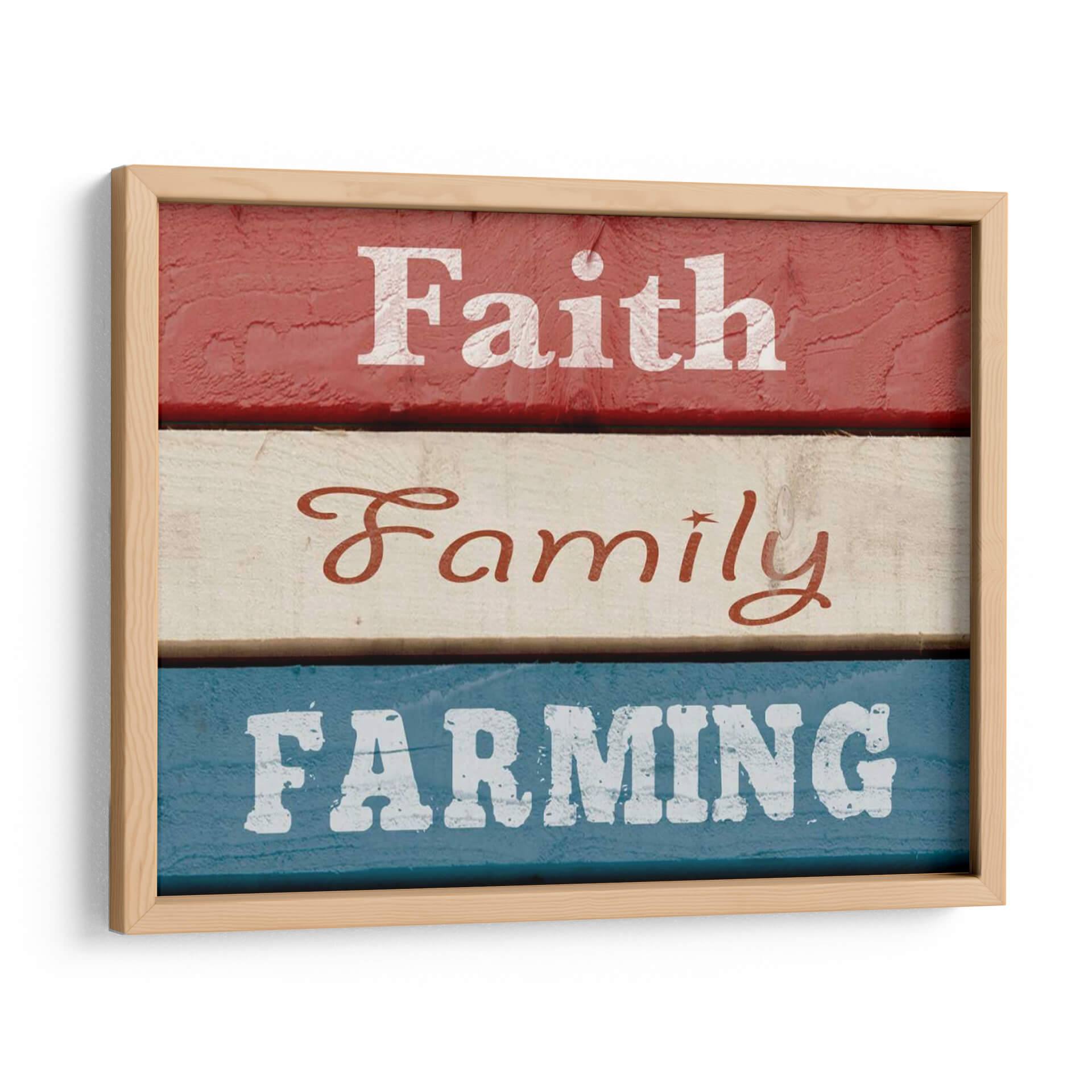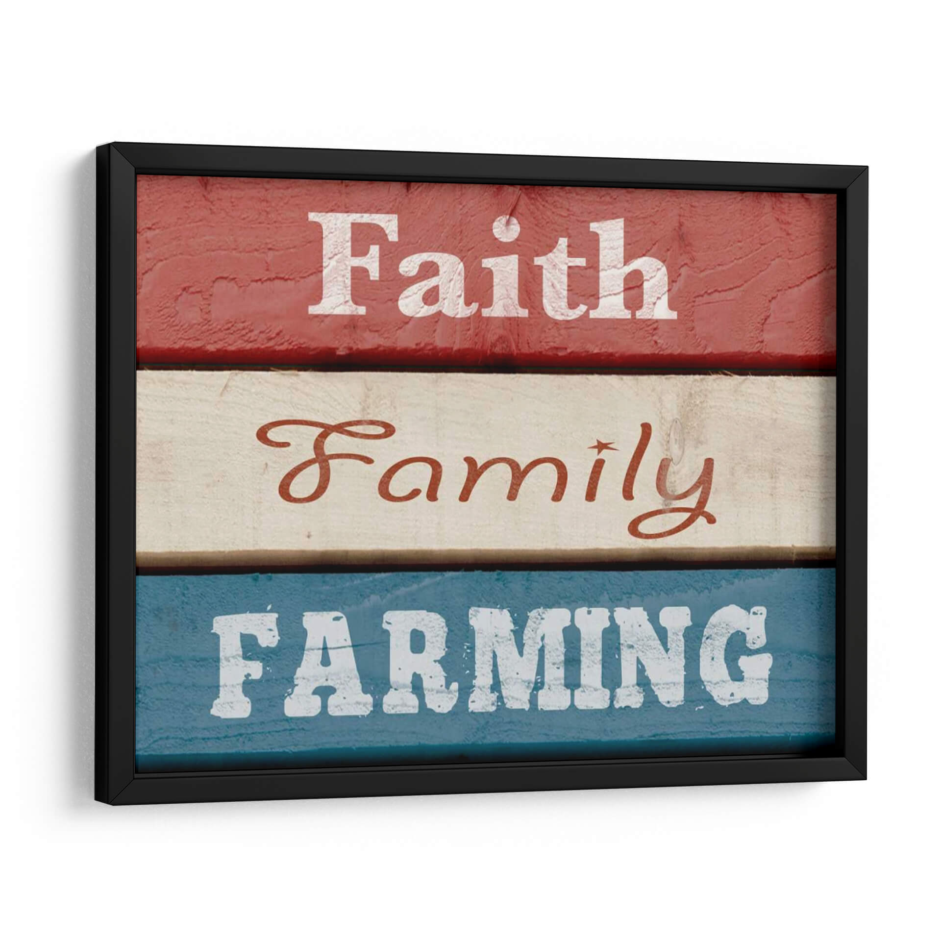 Celebra los pilares de la vida con este evocador cuadro decorativo "Sentimiento De Granja V" de Alonzo Saunders. Esta obra captura la esencia de la fe, la familia y el trabajo duro en el campo a través de una composición rústica y vibrante. Las tres franjas horizontales, teñidas en un audaz rojo, un suave blanco y un profundo azul, crean un telón de fondo visualmente atractivo que recuerda a la bandera americana o a los establos de una granja. Las palabras "Faith", "Family" y "Farming" se presentan con tipografías distintas: la primera en una fuente serif clásica y audaz, la segunda en una elegante escritura cursiva, y la tercera en una robusta fuente sans-serif. Esta combinación de estilos tipográficos añade profundidad y carácter a la pieza, reflejando la diversidad y solidez de los conceptos que representa. El estilo general de la obra es un homenaje al arte popular y rústico, con una textura que sugiere madera envejecida, aportando calidez y autenticidad. Es el cuadro decorativo perfecto para añadir un toque de inspiración y conexión con las raíces a tu hogar, ya sea en la sala de estar, la cocina o un espacio dedicado a la contemplación. Transmite un mensaje de valores fundamentales, ideal para aquellos que aprecian la vida sencilla y el legado familiar. Añade esta pieza a tu colección para infundir tus espacios con un espíritu de gratitud y pertenencia.