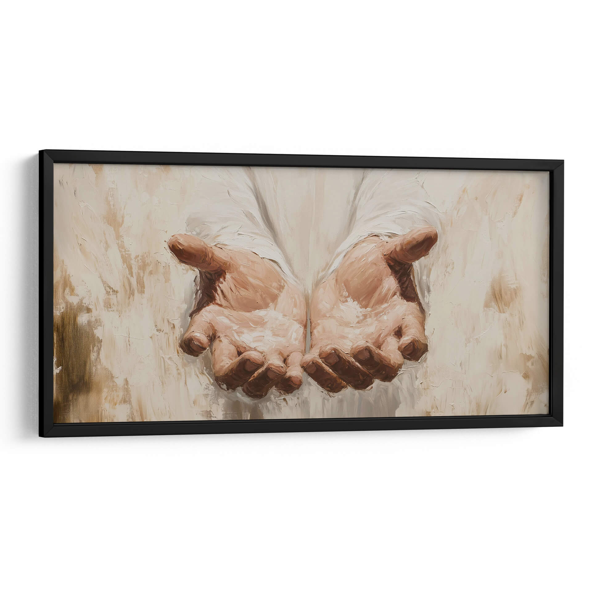Captura la esencia de la conexión humana y la ofrenda con este conmovedor cuadro decorativo titulado 'Toma mi mano', del artista Dav Madrid. La obra presenta un primer plano detallado de dos manos abiertas, una a cada lado del lienzo, invitando a la interacción y al entendimiento. La técnica pictórica, con pinceladas visibles y una textura rica, confiere a las manos una presencia palpable y realista, casi como si se pudiera sentir su calidez y profundidad. La paleta de colores, dominada por tonos tierra, beiges suaves y blancos cremosos, crea una atmósfera de serenidad, paz y calidez. La simplicidad de la composición, centrada exclusivamente en este gesto universal, permite que el espectador se conecte a un nivel emocional profundo. Ideal para añadir un toque de reflexión y humanidad a cualquier espacio, este cuadro decorativo es perfecto para salones, dormitorios o incluso espacios de meditación, donde su mensaje de apoyo y conexión puede resonar profundamente. Su estilo evocador y su ejecución magistral lo convierten en una pieza de arte de pared que invita a la contemplación y al diálogo silencioso, enriqueciendo la decoración de tu hogar con significado y belleza atemporal.