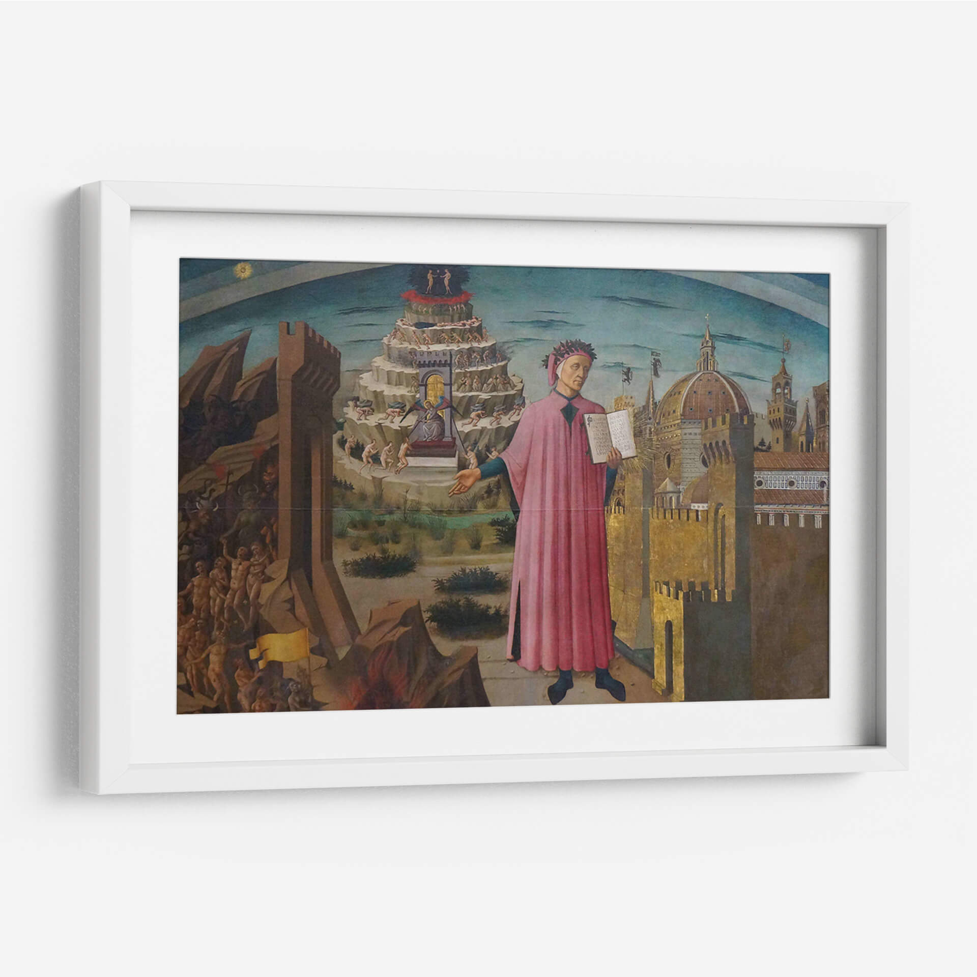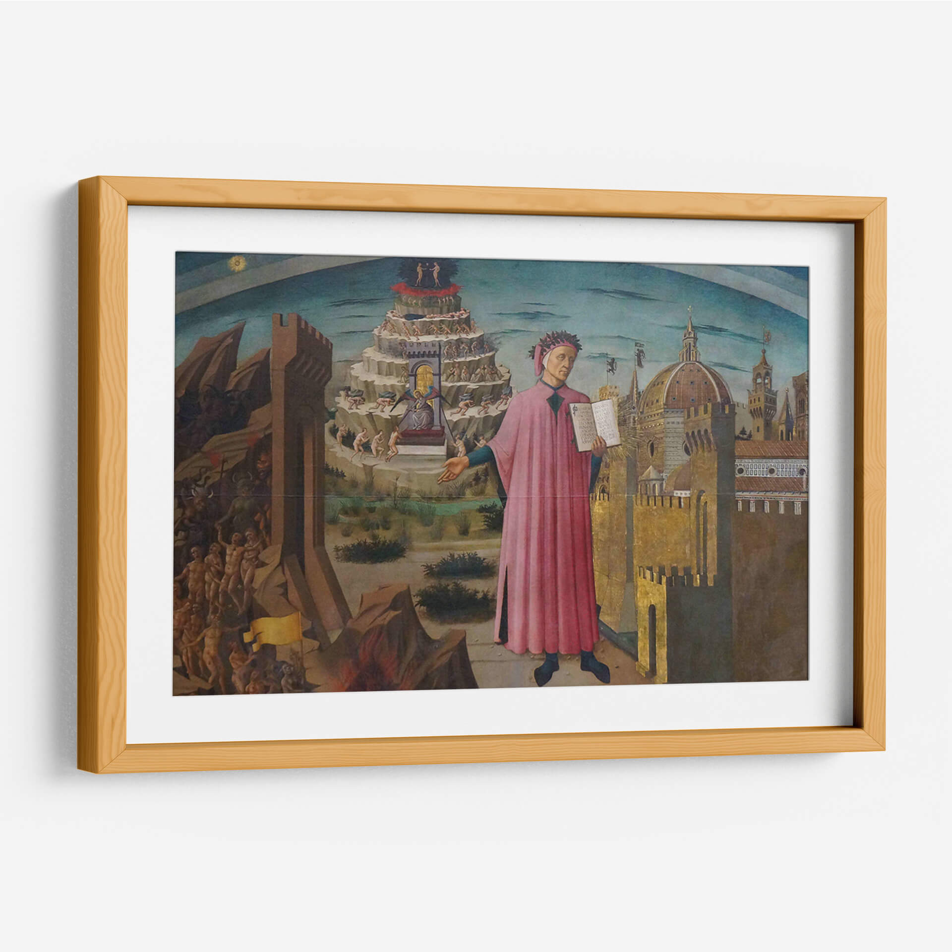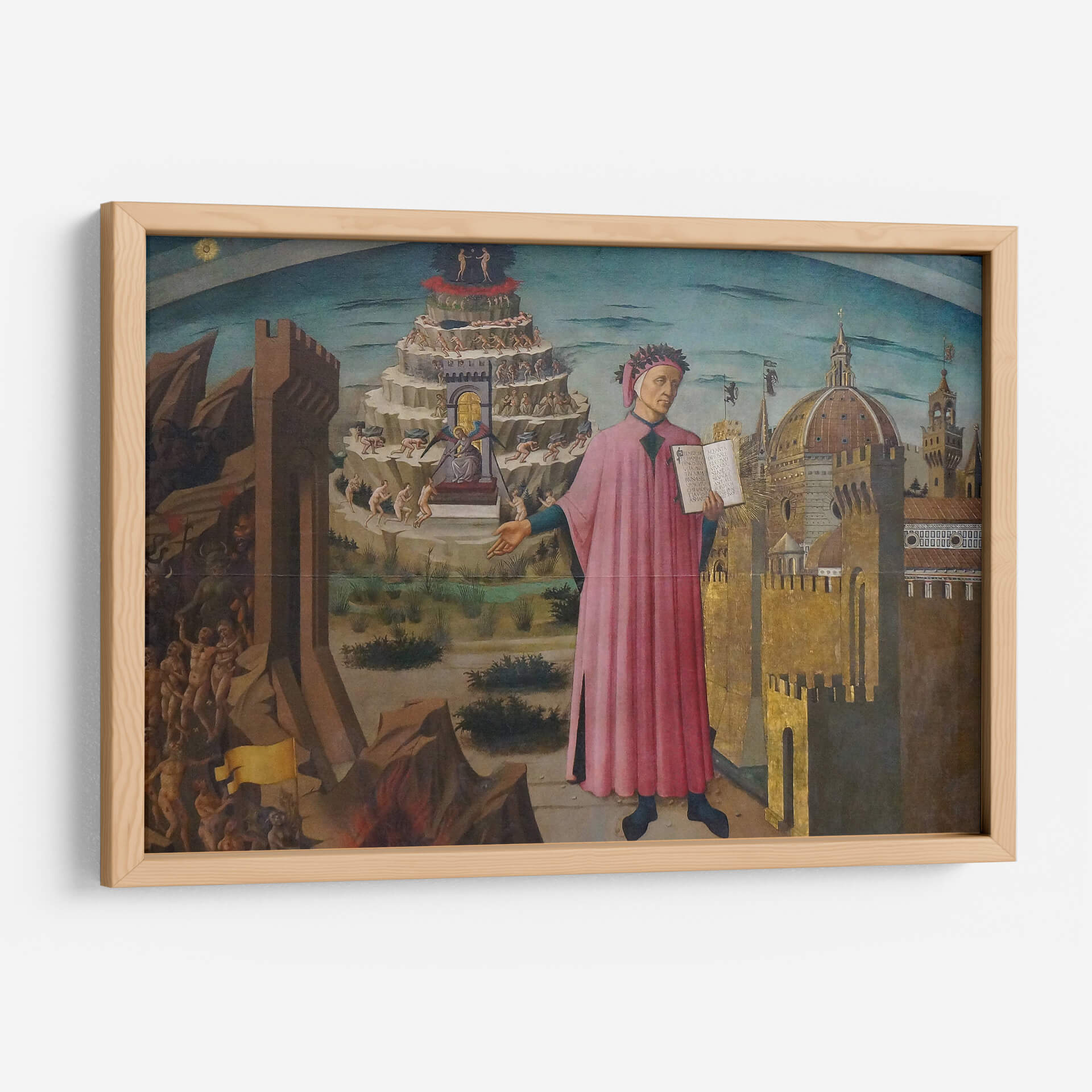 Sumérgete en la profundidad narrativa de "Dante y su poema", una obra maestra que trasciende el tiempo. Este cuadro decorativo captura un momento épico, presentando al célebre poeta flanqueado por monumentos arquitectónicos imponentes y un paisaje que evoca un viaje a través de reinos literarios. La figura central, con su túnica rosa y un libro abierto, irradia sabiduría y contemplación, invitando al espectador a reflexionar sobre la naturaleza de la literatura y la existencia. La paleta de colores, dominada por tonos terrosos, dorados y azules celestes, crea una atmósfera de solemnidad y majestuosidad. La composición detallada, con sus estructuras fortificadas y las escenas representadas en la distancia, añade capas de significado y complejidad visual. Ideal para coleccionistas de arte clásico, amantes de la literatura o para quienes buscan añadir un toque de grandeza intelectual a su hogar u oficina. Este cuadro decorativo es una ventana a la imaginación, perfecto para inspirar conversaciones y adornar espacios que valoran la cultura y la historia.