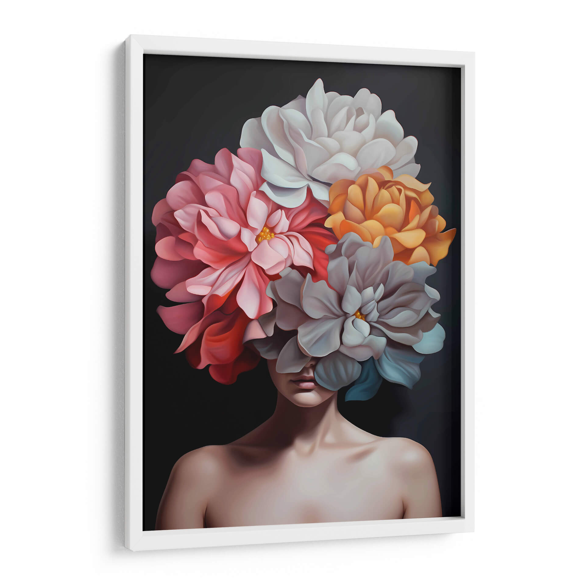 Sumérgete en la enigmática belleza de 'Estética VII', una obra de arte contemporáneo que fusiona la delicadeza floral con la figura humana de una manera profundamente evocadora. El cuadro presenta un intrincado arreglo de flores exuberantes, de pétalos suaves y texturas ricas, que parecen brotar de la cabeza de una figura femenina etérea. La paleta de colores, que abarca desde suaves rosas y blancos cremosos hasta cálidos ocres y fríos tonos azulados, crea un contraste fascinante contra el fondo oscuro y profundo, añadiendo un toque de misterio y sofisticación. El estilo realista de las flores, con un detallado juego de luces y sombras, contrasta sutilmente con la representación más sugerida de la figura, invitando a la contemplación y a la interpretación personal. Esta pieza es ideal para añadir un punto de interés visual y una atmósfera de ensueño a cualquier espacio, ya sea una sala de estar moderna, un dormitorio sereno o una oficina que busca inspiración. 'Estética VII' no es solo una decoración de pared, es una invitación a explorar la armonía entre la naturaleza y la forma humana, añadiendo un toque de arte único y emocional a tu hogar u oficina. Descubre la obra original de Sara Flores y transforma tu entorno.