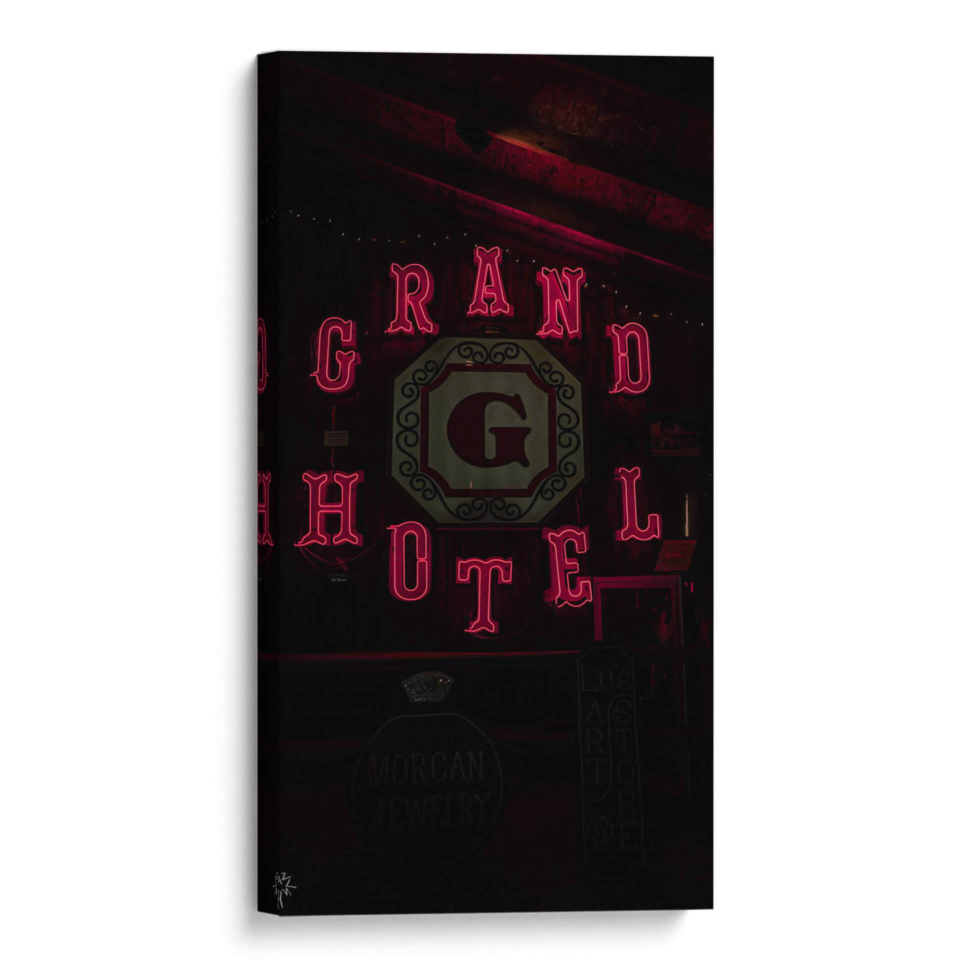 Sumérgete en la atmósfera vibrante y nostálgica de "ROJO: LUCES NEON" de Zuriel Halal, una obra de arte que captura la esencia de la noche urbana con un toque de misterio. Este cuadro decorativo presenta un letrero de neón rojo brillante que ilumina la oscuridad, evocando la energía de una ciudad que nunca duerme. Los detalles intrincados del letrero "GRAND HOTEL" y el logo central "G" con un borde decorativo añaden una capa de sofisticación y un aire retro. Los colores intensos y contrastantes, dominados por el rojo vibrante contra un fondo oscuro, crean un impacto visual potente, ideal para quienes buscan añadir un punto focal audaz a su decoración. La composición, centrada en el texto luminoso, guía la mirada y transmite una sensación de intriga y descubrimiento. Perfecta para salas de estar modernas, estudios o espacios comerciales que deseen un toque de carácter y estilo. "ROJO: LUCES NEON" no es solo una pieza decorativa, sino una invitación a experimentar la magia de la luz artificial y el encanto de lo urbano.
