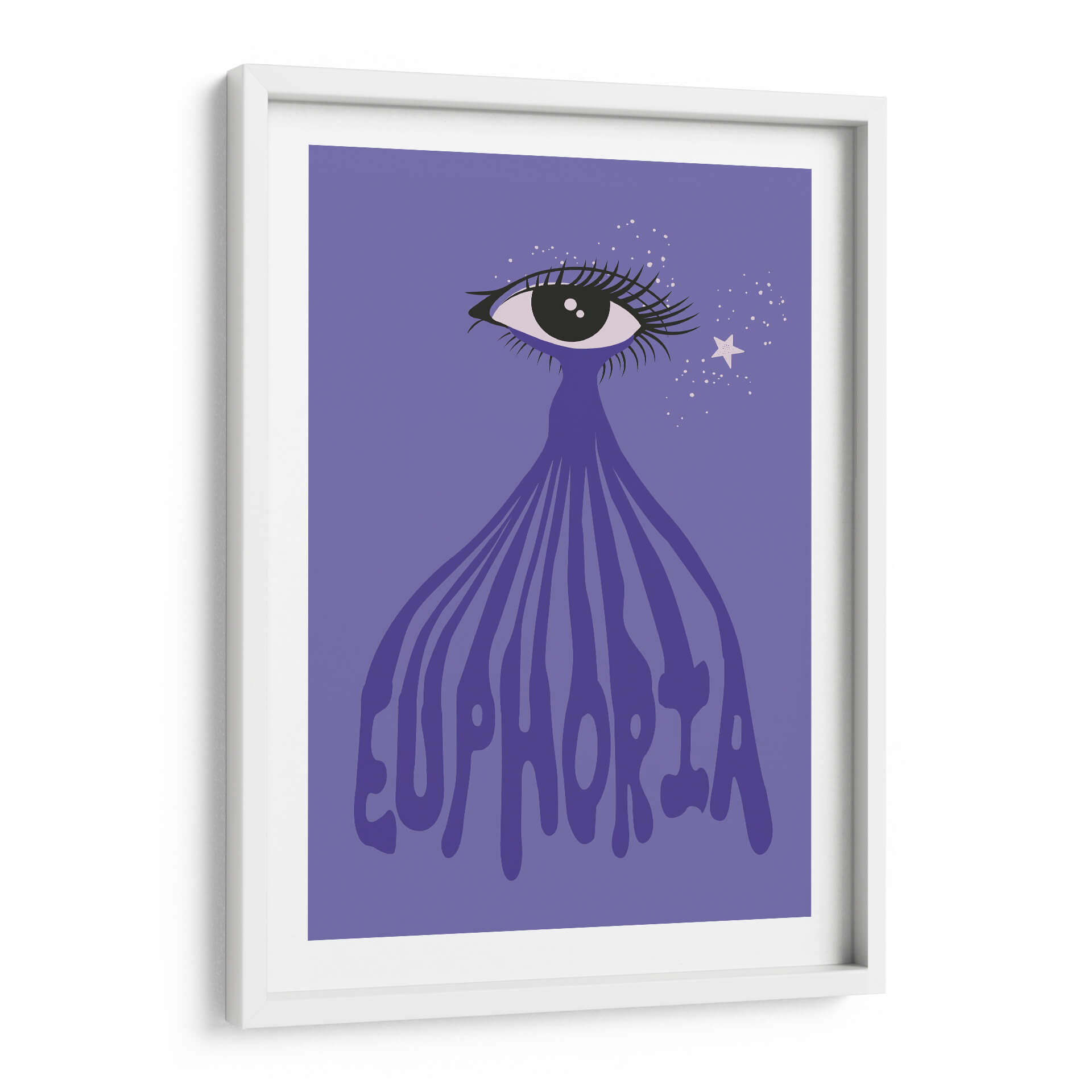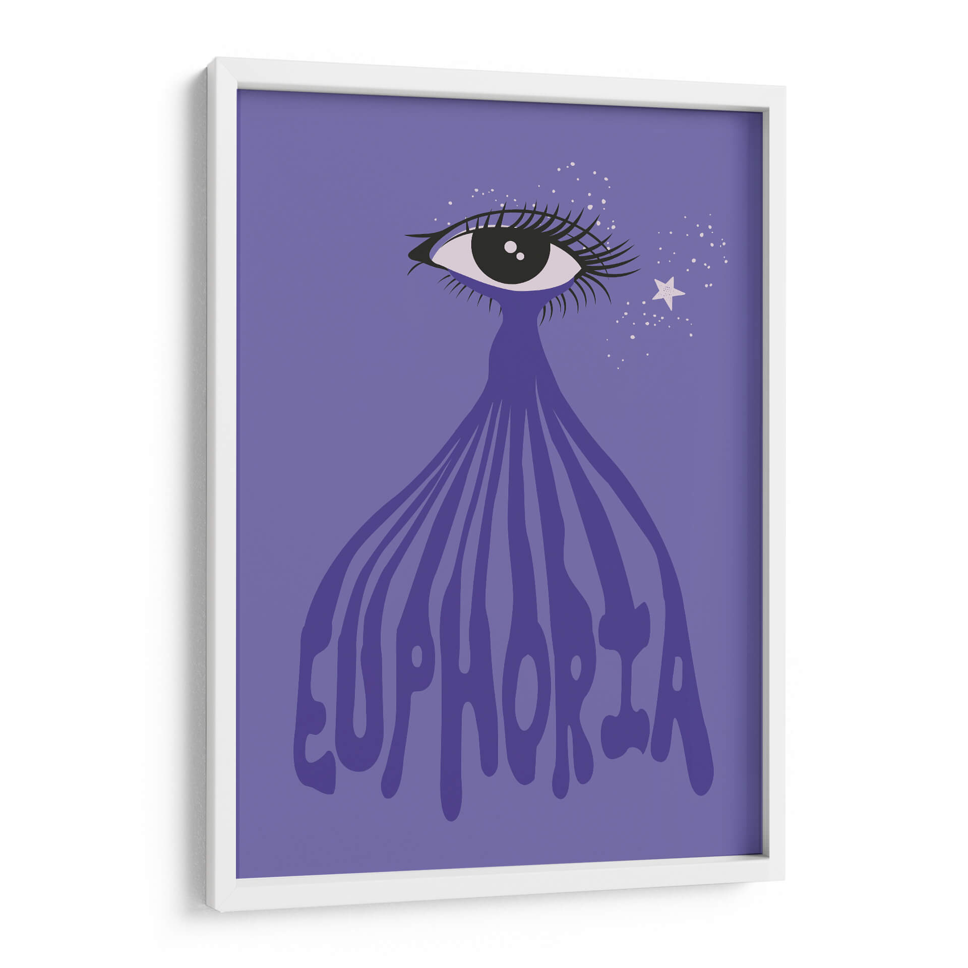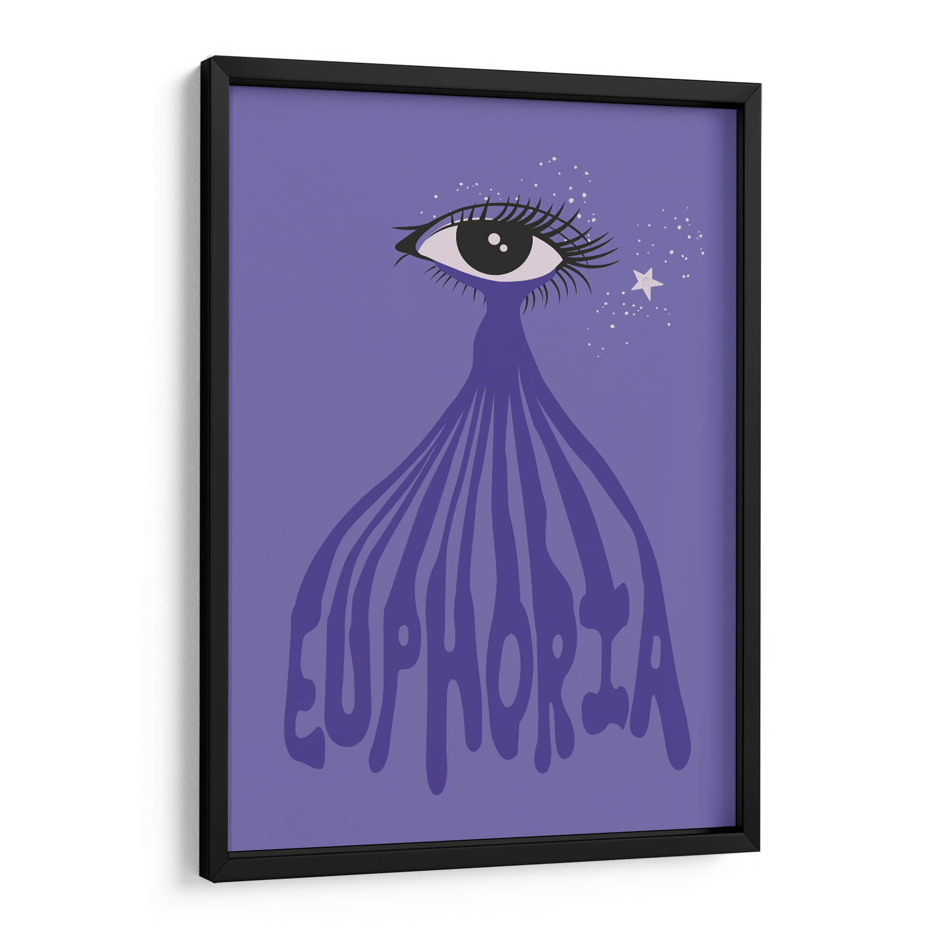Sumérgete en la "Euforia" a través de esta cautivadora obra de arte digital. La pieza presenta un ojo estilizado con pestañas dramáticas, del cual emana una cascada de líneas fluidas que se transforman en la palabra "Euphoria" escrita en una tipografía audaz y ondulante. Un fondo de color púrpura vibrante envuelve la composición, salpicado de pequeñas estrellas blancas y una estrella más grande, que añaden un toque de magia y ensueño. Los colores predominantes son el púrpura y el violeta, con toques de blanco y negro, creando una atmósfera etérea y emocionalmente resonante. El estilo gráfico y moderno, con un enfoque en el simbolismo del ojo y la palabra "euforia", sugiere una exploración de estados de ánimo elevados y experiencias trascendentales. Este cuadro decorativo es perfecto para quienes buscan infundir sus espacios con una dosis de alegría, positividad y un toque de misterio. Ideal para salas de estar, dormitorios o incluso oficinas creativas, esta obra de arte contemporáneo aportará un punto focal vibrante y una conversación estimulante a cualquier ambiente. "Euforia" es más que una imagen; es una invitación a sentir y celebrar los momentos de pura felicidad.