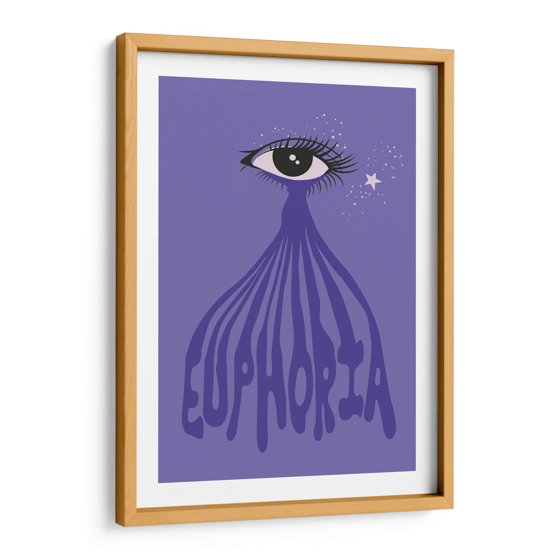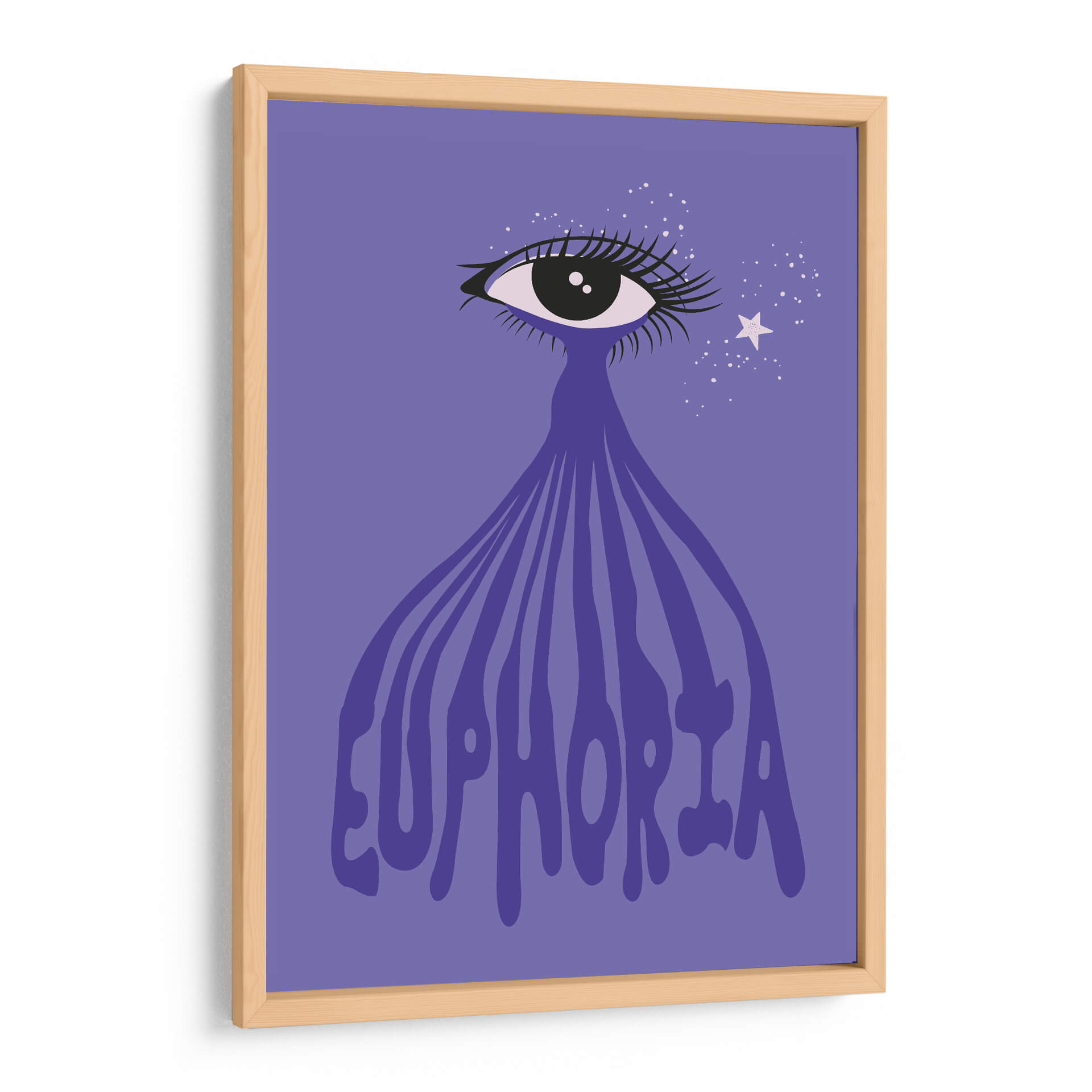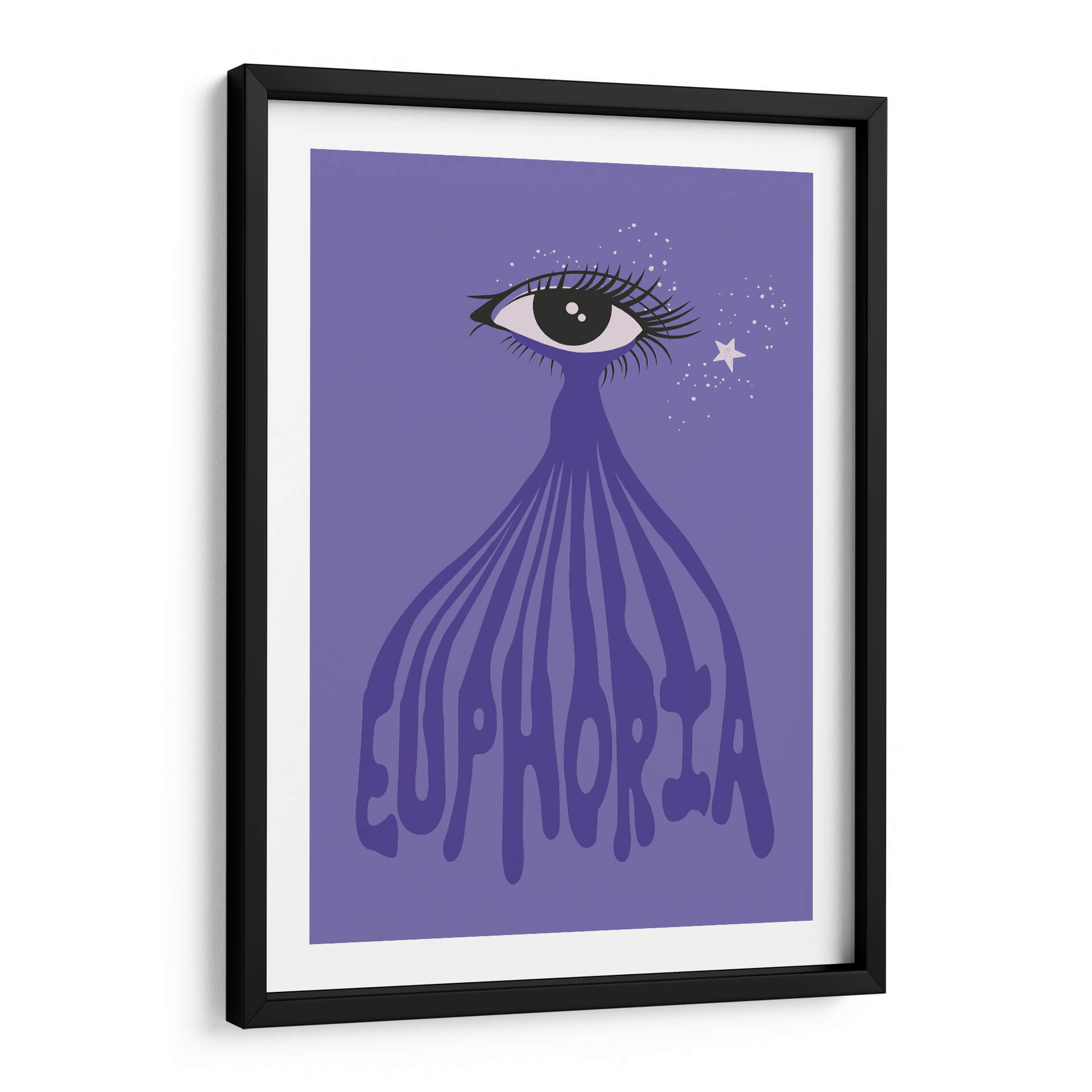 Sumérgete en la "Euforia" a través de esta cautivadora obra de arte digital. La pieza presenta un ojo estilizado con pestañas dramáticas, del cual emana una cascada de líneas fluidas que se transforman en la palabra "Euphoria" escrita en una tipografía audaz y ondulante. Un fondo de color púrpura vibrante envuelve la composición, salpicado de pequeñas estrellas blancas y una estrella más grande, que añaden un toque de magia y ensueño. Los colores predominantes son el púrpura y el violeta, con toques de blanco y negro, creando una atmósfera etérea y emocionalmente resonante. El estilo gráfico y moderno, con un enfoque en el simbolismo del ojo y la palabra "euforia", sugiere una exploración de estados de ánimo elevados y experiencias trascendentales. Este cuadro decorativo es perfecto para quienes buscan infundir sus espacios con una dosis de alegría, positividad y un toque de misterio. Ideal para salas de estar, dormitorios o incluso oficinas creativas, esta obra de arte contemporáneo aportará un punto focal vibrante y una conversación estimulante a cualquier ambiente. "Euforia" es más que una imagen; es una invitación a sentir y celebrar los momentos de pura felicidad.