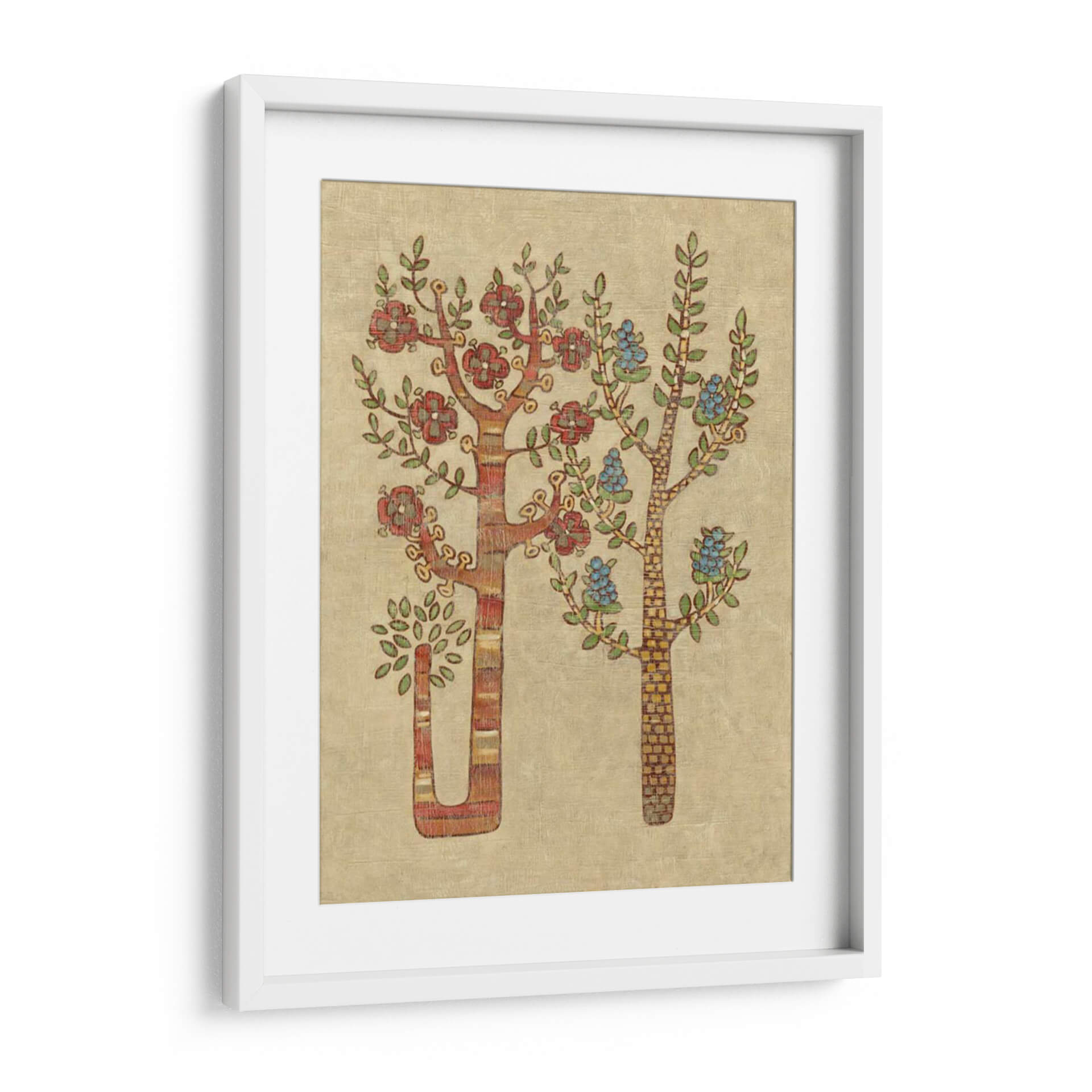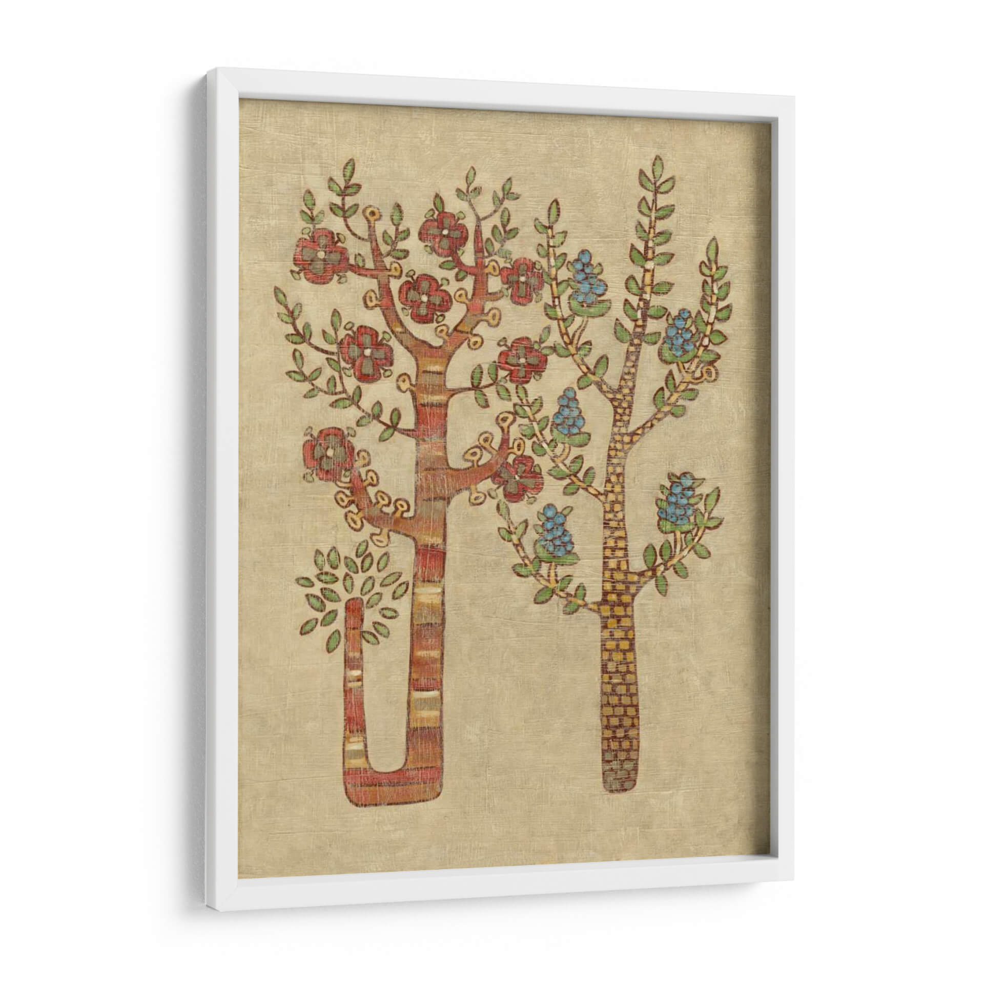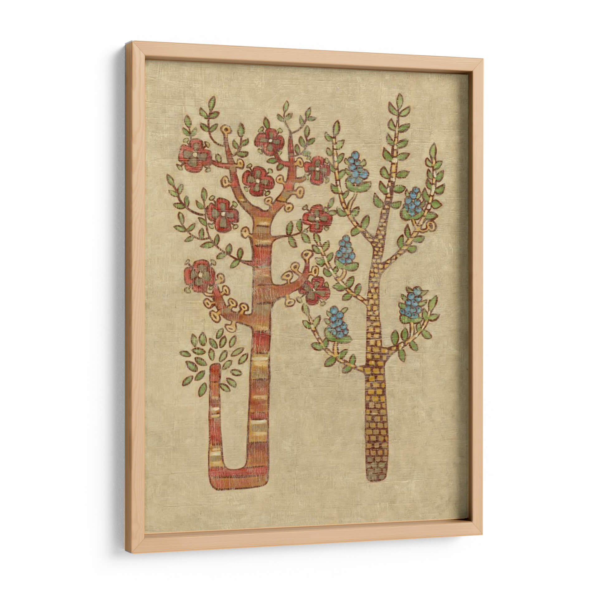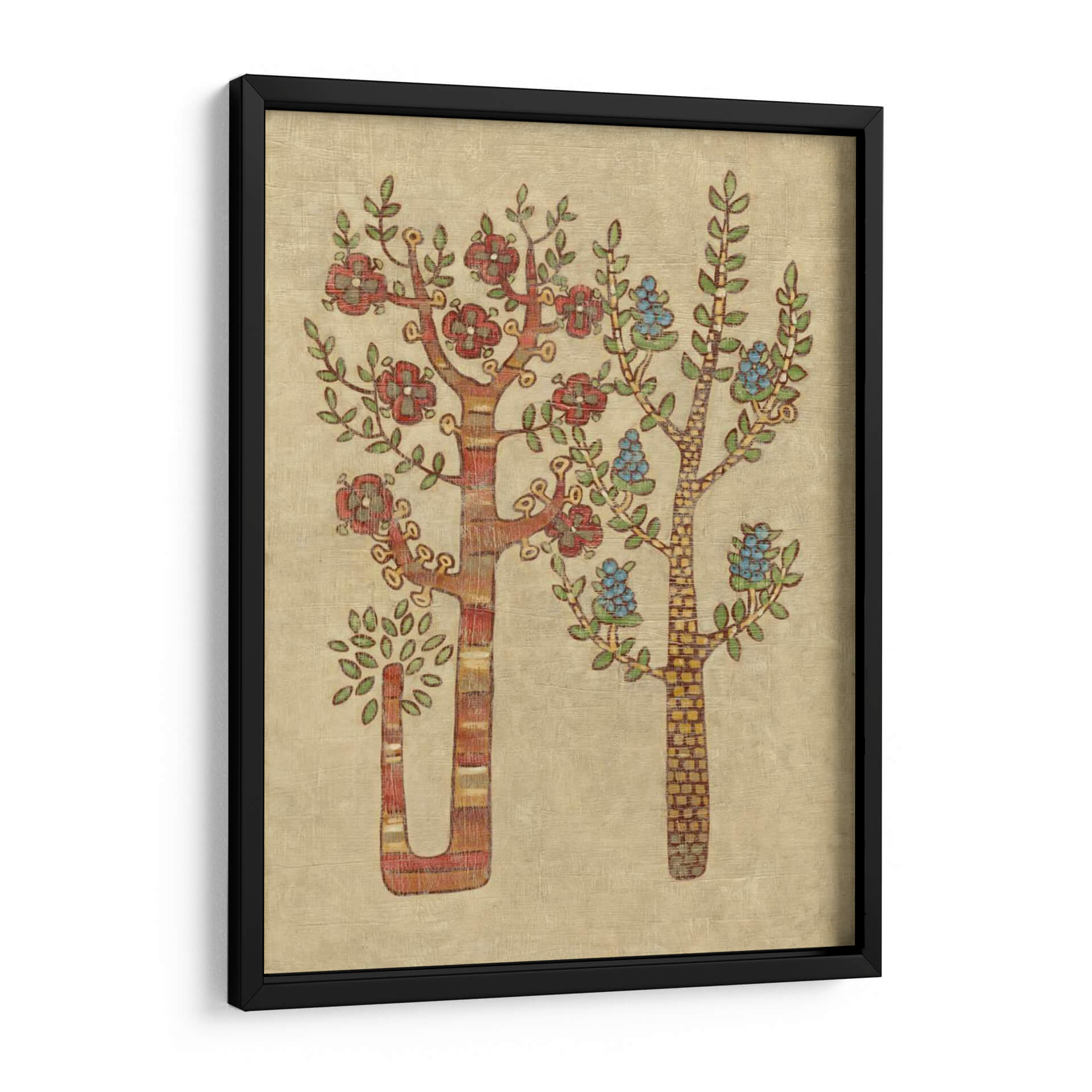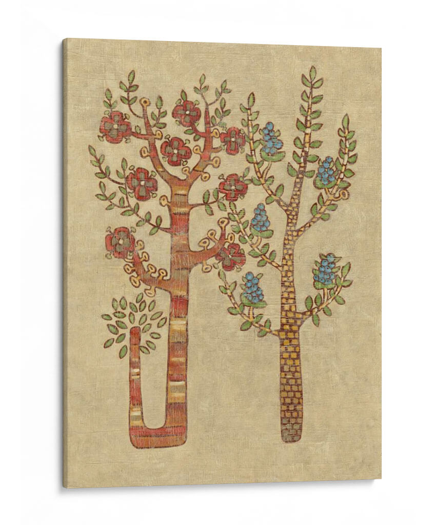 Adéntrate en un mundo de fantasía botánica con "Ropa De Cama De Los Árboles II" de Chariklia Zarris. Esta cautivadora obra de arte digital presenta dos árboles estilizados que evocan la serenidad de la naturaleza, con un toque de encanto rústico. Los troncos, adornados con patrones rayados y enrejados en tonos terrosos y rojizos, se alzan majestuosamente sobre un fondo de textura suave en color beige. Las ramas se extienden con delicadeza, salpicadas de vibrantes flores rojas y racimos de bayas azules, creando un contraste armonioso y alegre. La composición, con un estilo que recuerda a las ilustraciones de cuentos de hadas o a los textiles artesanales, transmite una sensación de calma y conexión con lo orgánico. "Ropa De Cama De Los Árboles II" es la pieza perfecta para infundir paz y un toque de color natural en cualquier espacio, ya sea un dormitorio acogedor, una sala de estar luminosa o una oficina que busca inspiración. Este cuadro decorativo es una invitación a la contemplación y a la apreciación de la belleza sencilla y atemporal de la vida vegetal, ideal para quienes buscan un arte que hable de tranquilidad y renovación.