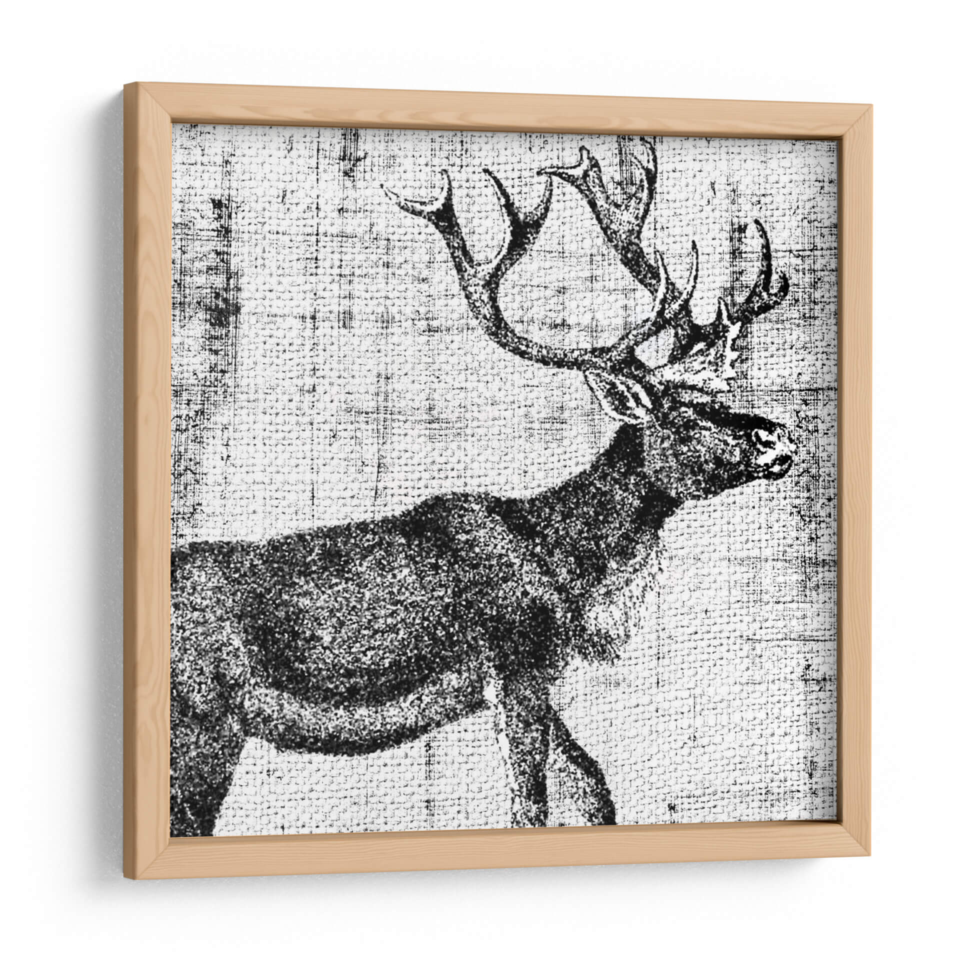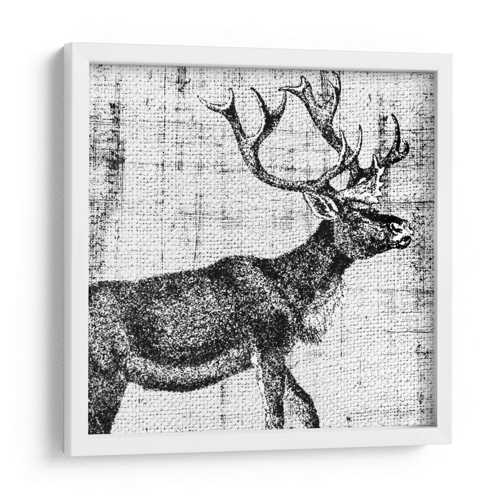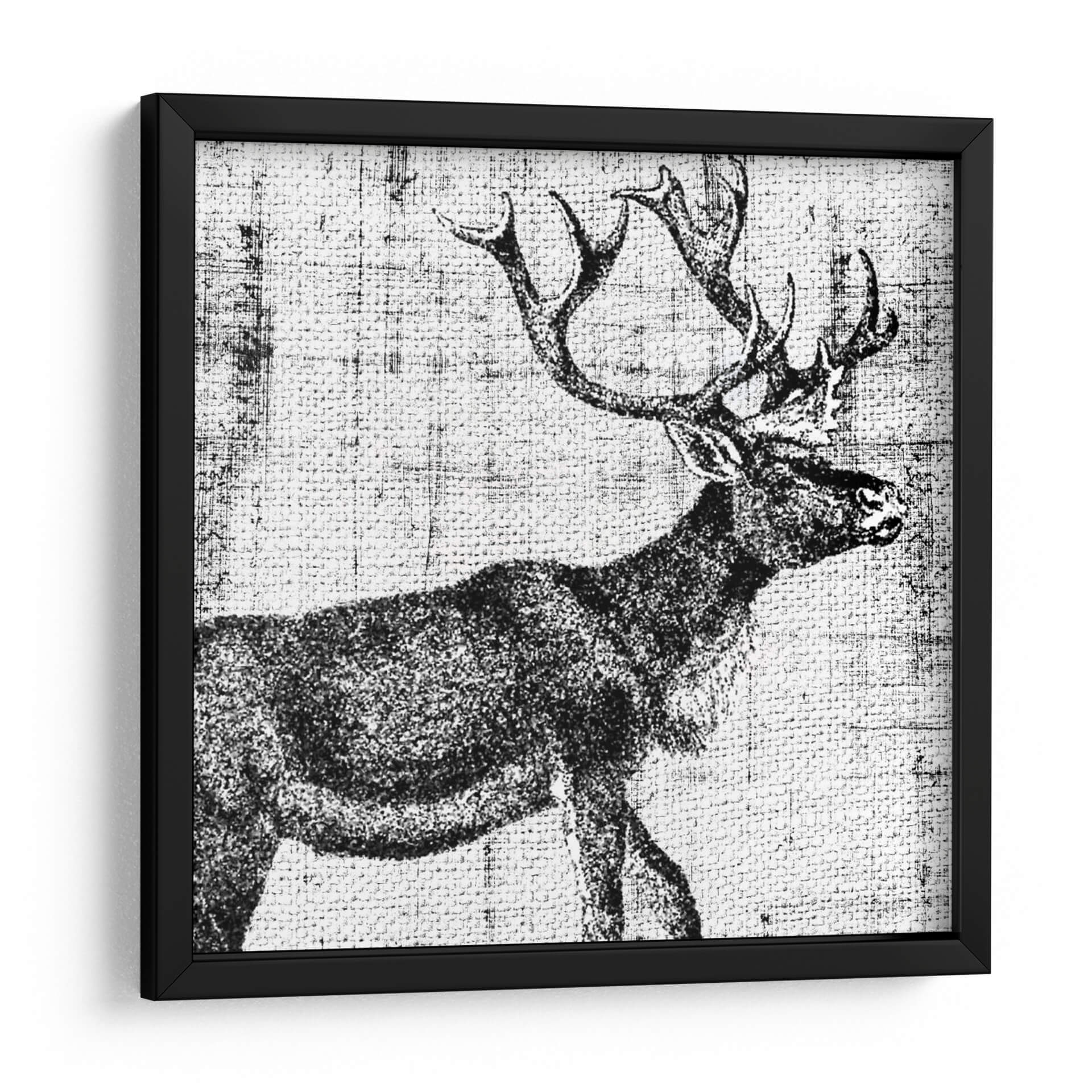 Sumérgete en la majestuosidad de la naturaleza con 'Territorio del Noroeste III', una cautivadora obra de arte de Vision Studio. Este cuadro decorativo captura la imponente figura de un ciervo en un estilo que evoca grabados antiguos, con una paleta monocromática que realza su textura y detalle. La composición, centrada en el perfil del animal y sus espectaculares astas, transmite una sensación de fuerza y serenidad salvaje. El fondo texturizado, similar a un tejido rústico, añade profundidad y un toque artesanal a la pieza, creando un ambiente de autenticidad y conexión con lo natural. Este cuadro es ideal para espacios que buscan un elemento de carácter y elegancia sobria, como salones, estudios o incluso oficinas modernas que deseen infundir un espíritu de aventura y naturaleza indómita. Añade un toque de distinción rústica y contemporánea a tu decoración con esta pieza única.