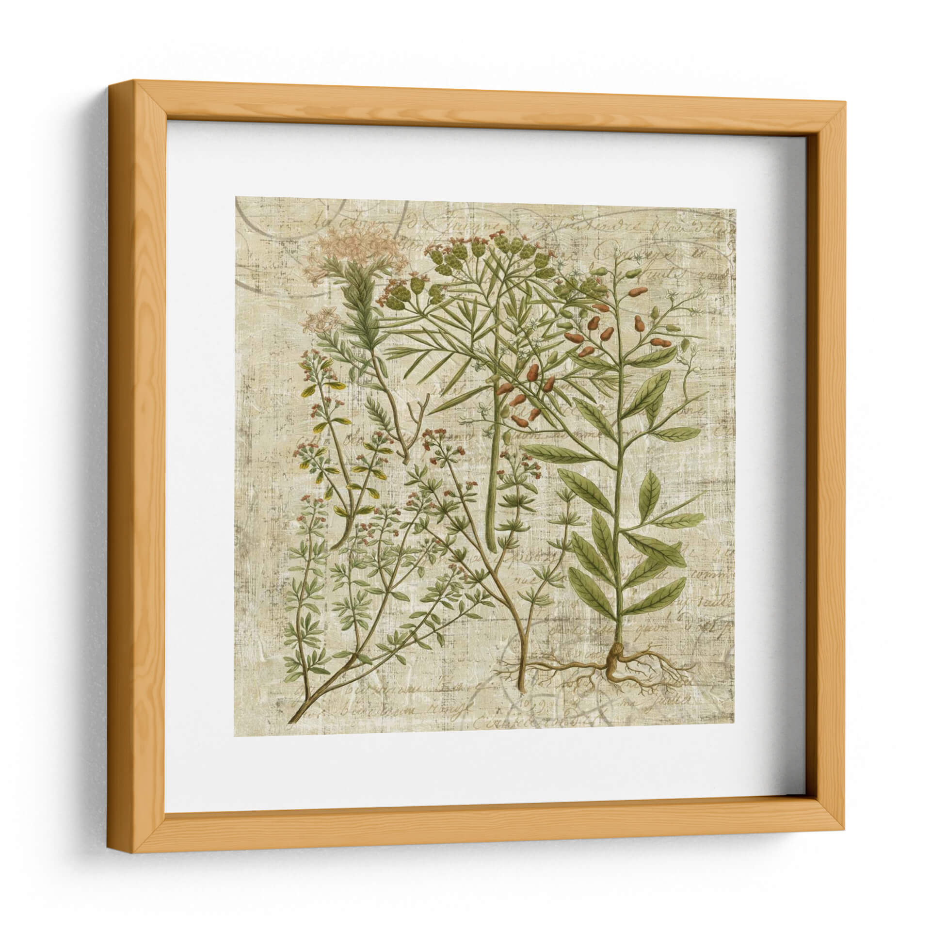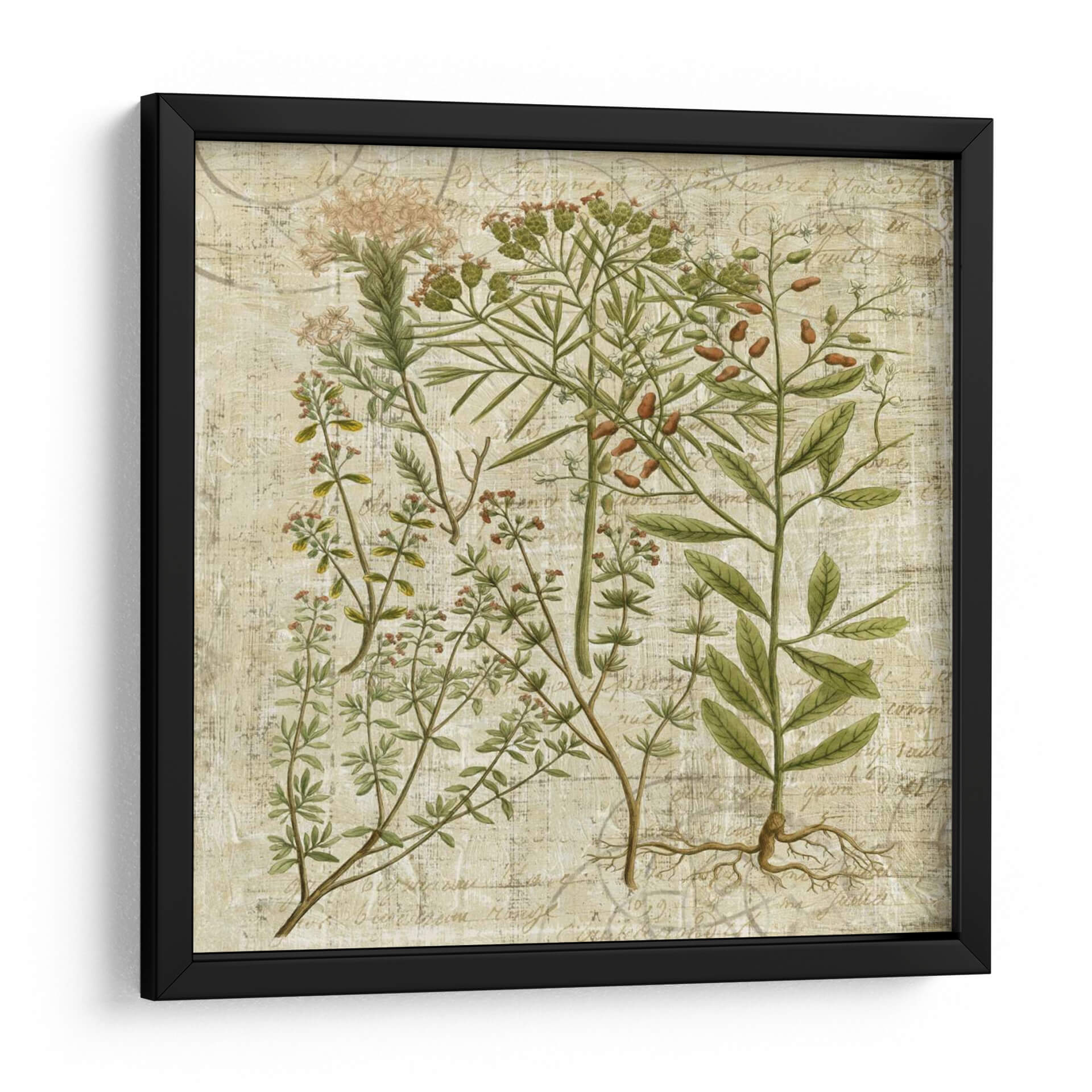 Emb rquese en la serenidad botánica con 'Versos De Jardín I', una obra de arte que captura la delicadeza de la naturaleza con un toque de elegancia vintage. Este cuadro decorativo presenta una detallada ilustración de diversas plantas, con sus raíces expuestas, dispuestas armoniosamente sobre un fondo texturizado que evoca manuscritos antiguos. La paleta de colores se centra en tonos tierra, verdes suaves y toques sutiles de bayas rojizas, creando una atmósfera de calma y conexión con lo natural. El estilo, que recuerda a las láminas botánicas clásicas pero con una sensibilidad contemporánea, es perfecto para añadir un aire de sofisticación a cualquier espacio. Imagine este cuadro aportando un toque de tranquilidad a su sala de estar, un punto de interés natural en su estudio, o una nota de frescura orgánica en su dormitorio. Su diseño intrincado y su temática atemporal lo convierten en una pieza versátil que complementa tanto decoraciones rústicas como modernas, invitando a la contemplación y celebrando la belleza perdurable del mundo vegetal. Descubra la armonía visual y la paz que 'Versos De Jardín I' puede traer a su hogar.