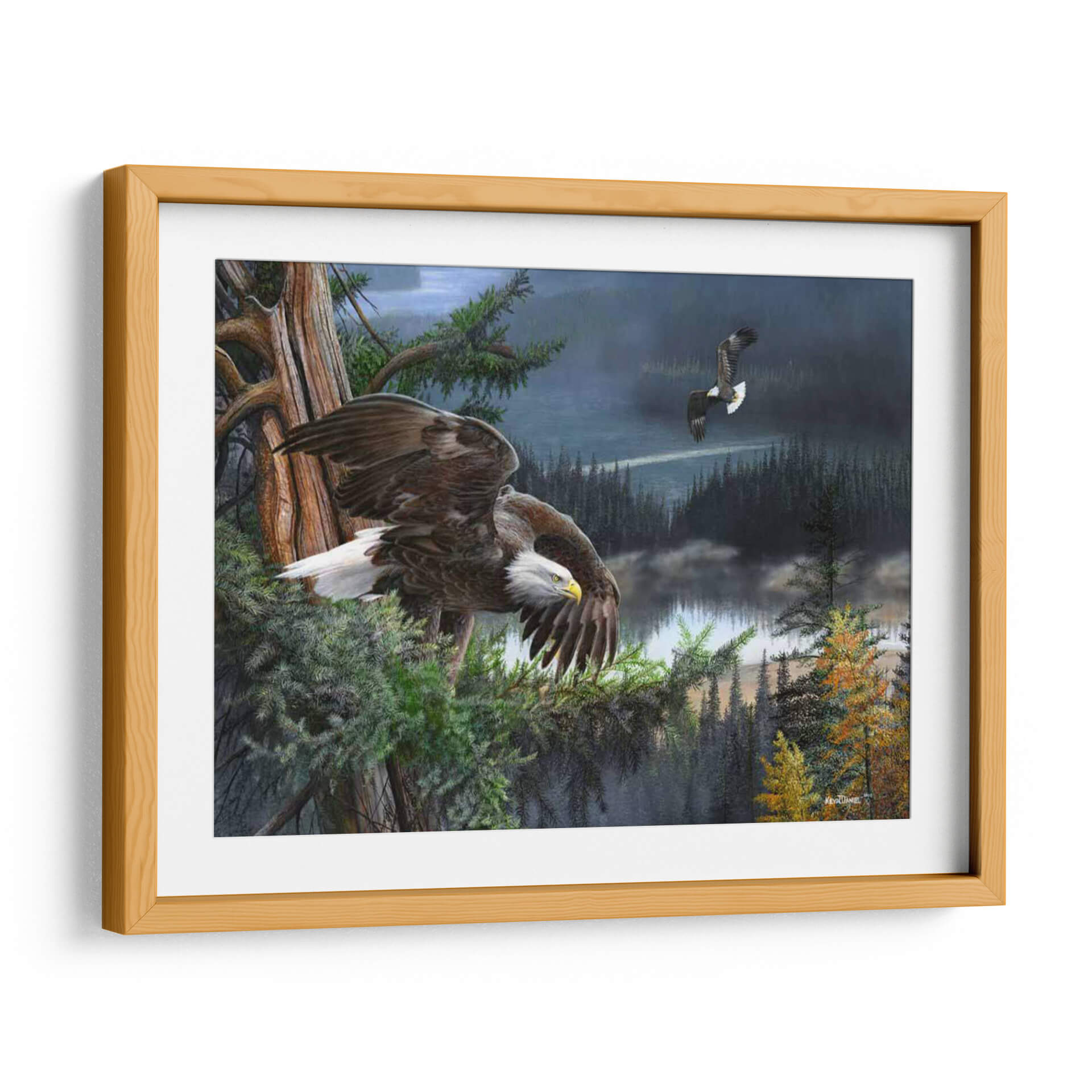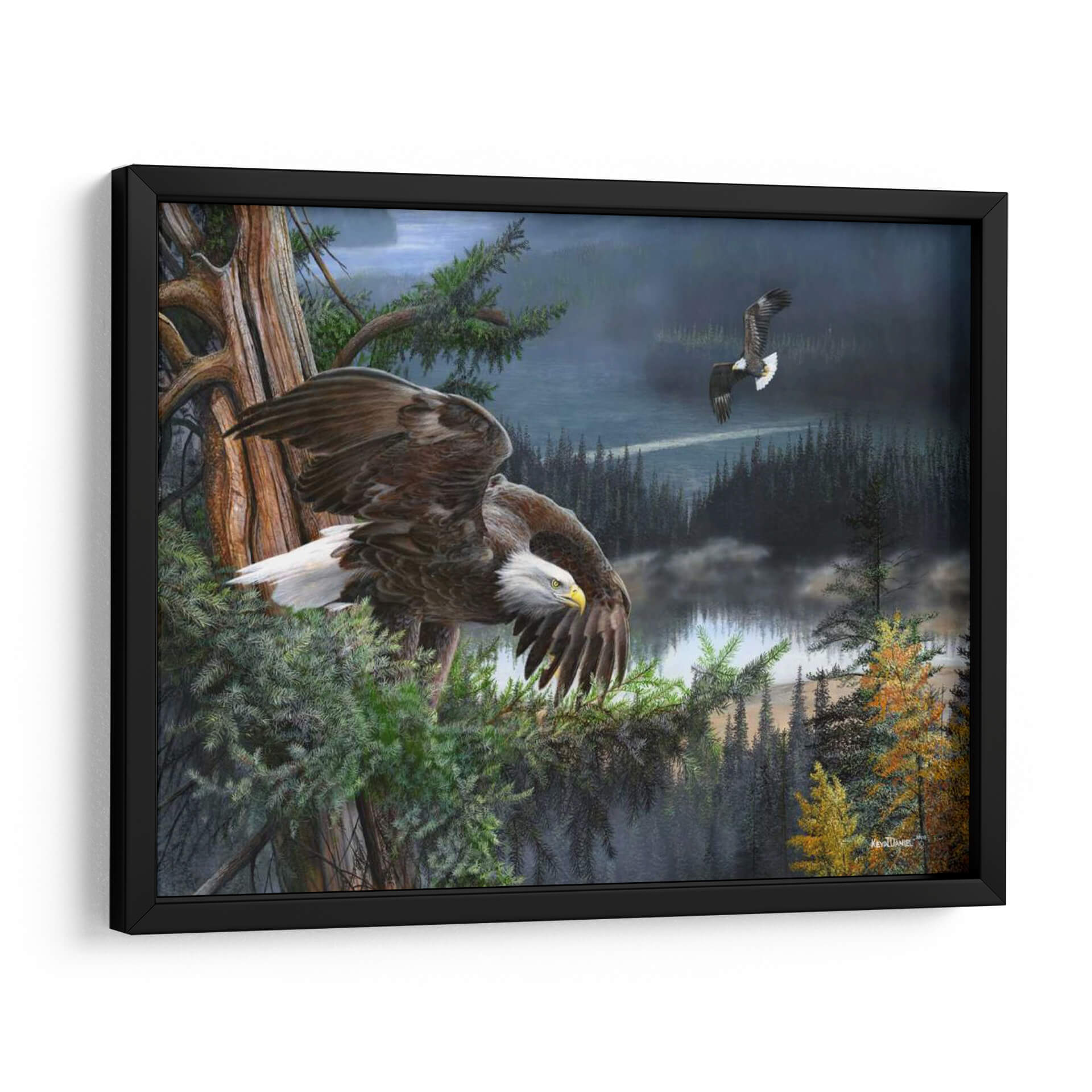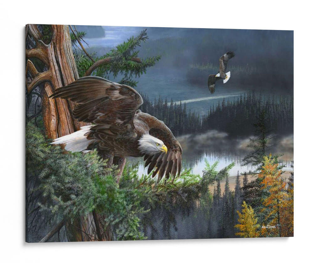 Captura la majestuosidad y la libertad con nuestro impresionante cuadro decorativo "Alas de Libertad" del artista Kevin Daniel. Esta obra maestra evoca la fuerza y la gracia del águila calva en su hábitat natural, posada en una rama de pino con las alas extendidas, lista para emprender el vuelo. El fondo, un paisaje montañoso brumoso con un lago sereno y un bosque denso, crea una atmósfera de paz y naturaleza salvaje. La paleta de colores, dominada por tonos tierra, verdes profundos y azules apagados, aporta una sensación de tranquilidad y conexión con el entorno. El estilo realista y detallado de Kevin Daniel da vida a cada pluma y hoja, invitando al espectador a sumergirse en esta escena de poder y serenidad. "Alas de Libertad" es ideal para añadir un toque de inspiración y naturaleza a tu sala de estar, estudio u oficina, convirtiéndose en un punto focal que inspira grandeza y el espíritu indomable. Descubre la belleza de la vida silvestre y la libertad personificada en este extraordinario cuadro decorativo.