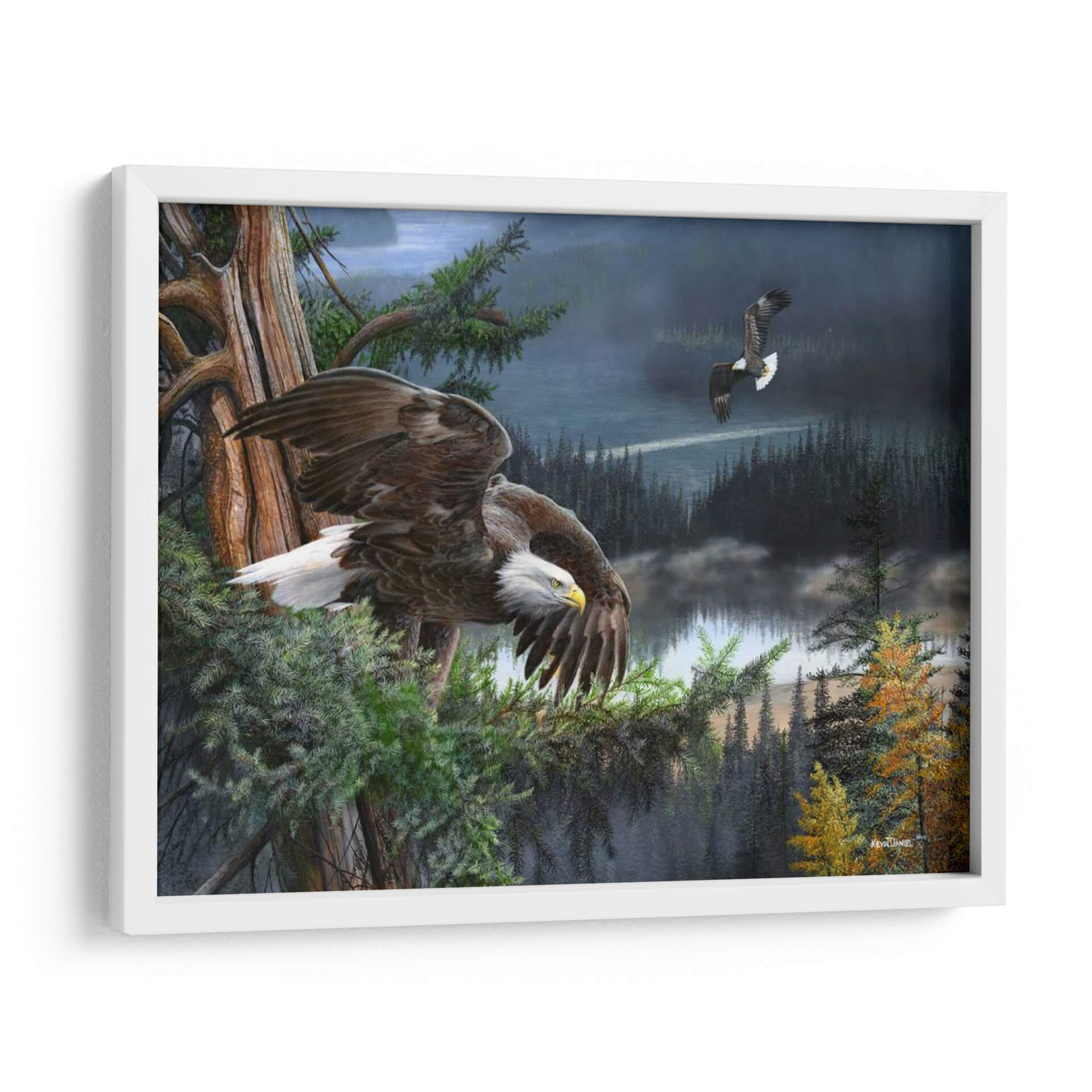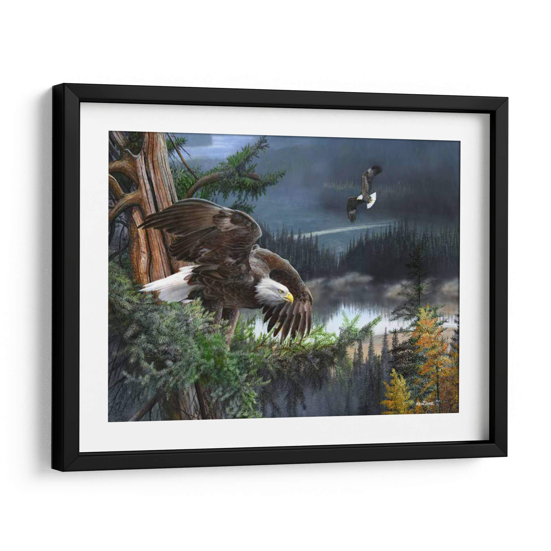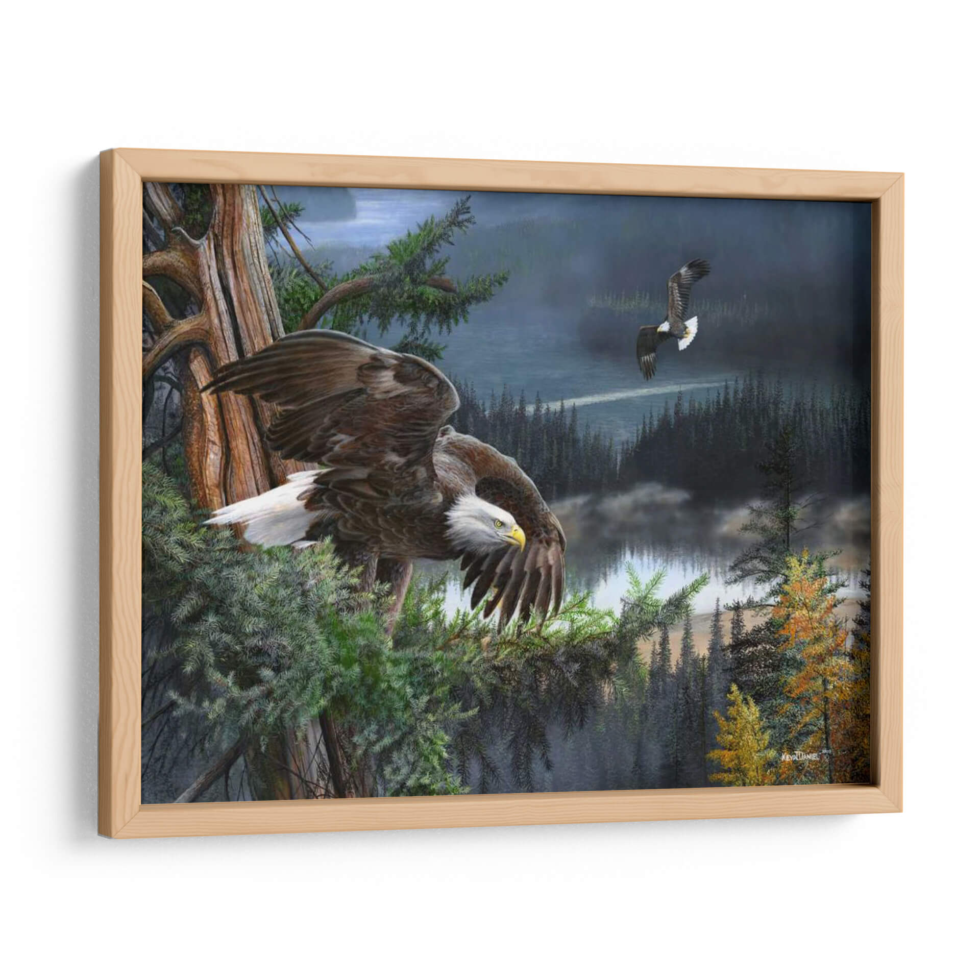 Captura la majestuosidad y la libertad con nuestro impresionante cuadro decorativo "Alas de Libertad" del artista Kevin Daniel. Esta obra maestra evoca la fuerza y la gracia del águila calva en su hábitat natural, posada en una rama de pino con las alas extendidas, lista para emprender el vuelo. El fondo, un paisaje montañoso brumoso con un lago sereno y un bosque denso, crea una atmósfera de paz y naturaleza salvaje. La paleta de colores, dominada por tonos tierra, verdes profundos y azules apagados, aporta una sensación de tranquilidad y conexión con el entorno. El estilo realista y detallado de Kevin Daniel da vida a cada pluma y hoja, invitando al espectador a sumergirse en esta escena de poder y serenidad. "Alas de Libertad" es ideal para añadir un toque de inspiración y naturaleza a tu sala de estar, estudio u oficina, convirtiéndose en un punto focal que inspira grandeza y el espíritu indomable. Descubre la belleza de la vida silvestre y la libertad personificada en este extraordinario cuadro decorativo.