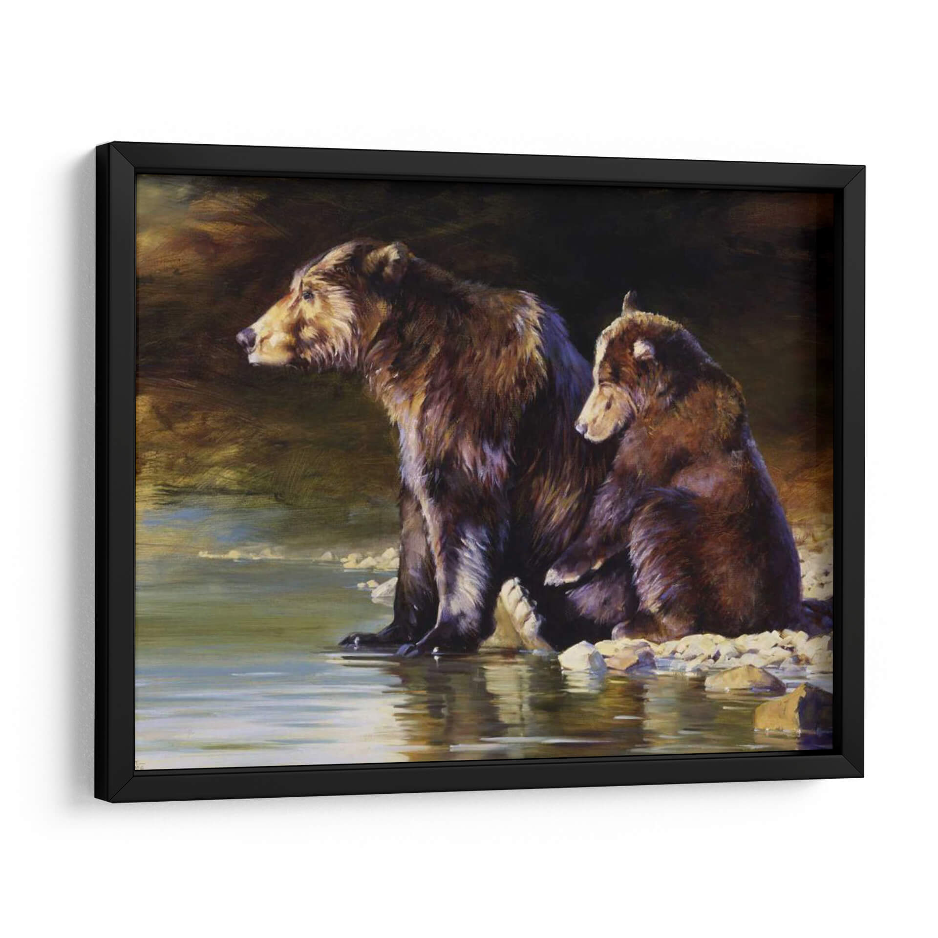 Sumérgete en la ternura y la conexión con "Amor de Madre", una obra de arte cautivadora de Julie T. Chapman. Esta pieza evoca la profunda y silenciosa unión entre una osa y su cachorro, sentados a la orilla de un río sereno. Los colores cálidos y terrosos, junto con sutiles toques de verde y azul en el agua, crean una atmósfera de calma y protección. La detallada representación de los osos, desde la textura de su pelaje hasta sus expresiones serenas, transmite una sensación de paz y el instinto protector de la naturaleza. Este cuadro decorativo es ideal para añadir un toque de calidez y emotividad a cualquier espacio, ya sea una sala de estar acogedora, un dormitorio o una oficina que busque un recordatorio de los lazos familiares y la belleza salvaje. La obra de Chapman captura un momento íntimo y atemporal, invitando a la reflexión sobre el amor incondicional y la fuerza de la naturaleza.