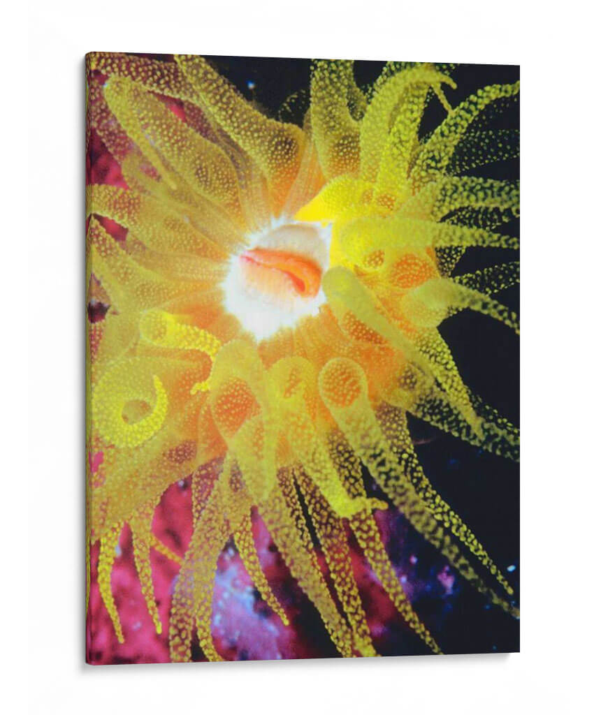 Sumérgete en las profundidades marinas con "Anémona II del Mar Gráfico", una obra de arte que captura la vibrante belleza de la vida submarina. Este cuadro decorativo presenta una anémona marina en todo su esplendor, con sus tentáculos amarillos radiantes extendiéndose hacia el espectador. La composición detallada resalta la textura intrincada de la criatura, invitando a una contemplación minuciosa de sus formas orgánicas. La paleta de colores, dominada por intensos amarillos y naranjas que contrastan con un fondo oscuro y salpicaduras de vibrante rosa y azul, crea una atmósfera de misterio y vitalidad. Ideal para añadir un toque de color y vida a cualquier espacio, desde una sala de estar moderna hasta un dormitorio sereno o una oficina inspiradora. "Anémona II del Mar Gráfico" es una pieza que evoca la maravilla del océano y la delicada complejidad de la naturaleza. Su estilo fotográfico y el enfoque en la forma central la convierten en un punto focal cautivador, perfecto para quienes buscan arte que combine la fascinación natural con un diseño contemporáneo. Transforma tu hogar en un refugio de tranquilidad y belleza marina con este impresionante cuadro decorativo.