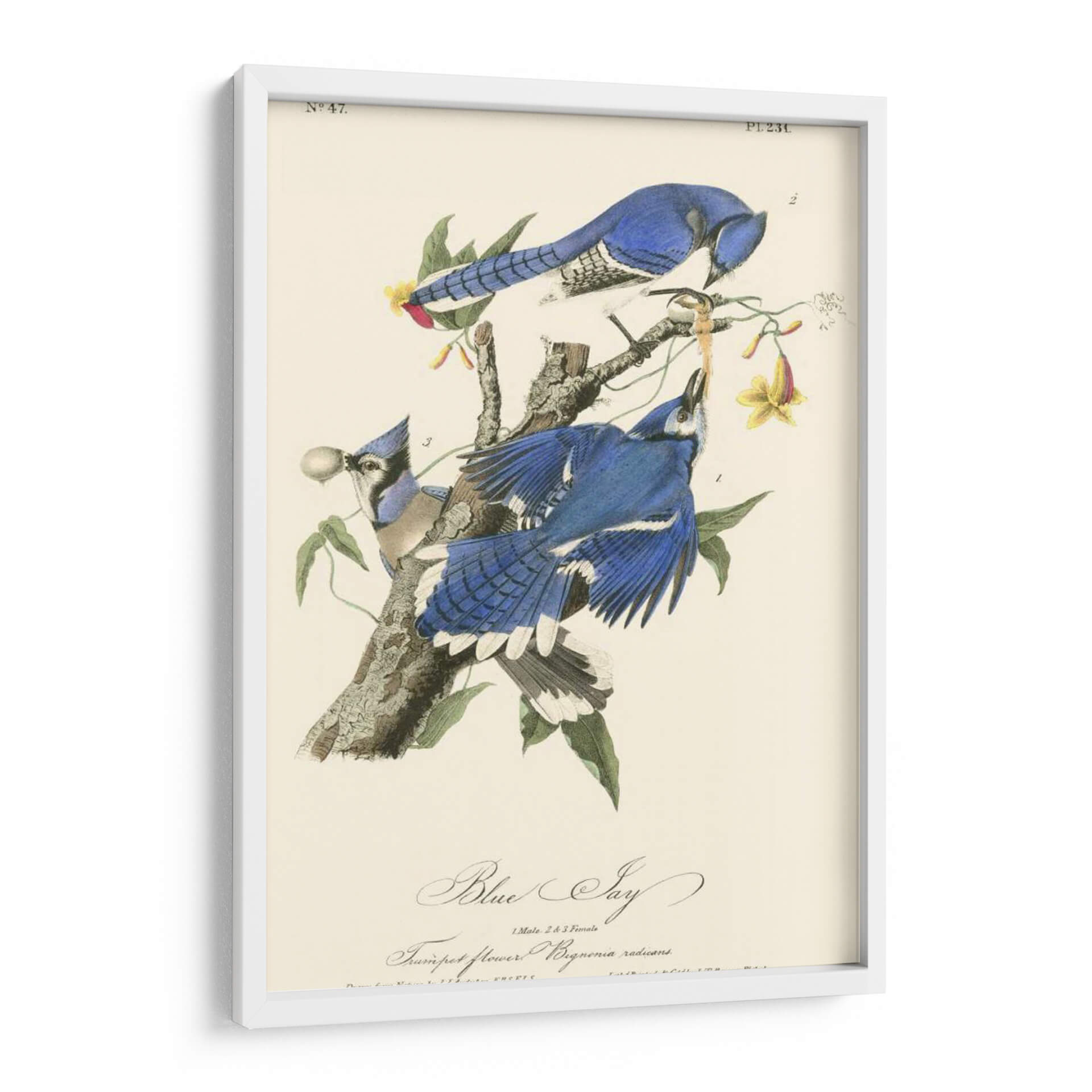 Embellece tu espacio con la majestuosidad de las aves a través de este exquisito cuadro decorativo de arrendajos azules, inspirado en las detalladas ilustraciones de John James Audubon. La obra captura la vibrante energía y la belleza natural de estas carismáticas criaturas posadas en una rama, con un despliegue de plumaje azul eléctrico que contrasta elegantemente con los tonos terrosos del entorno y toques sutiles de amarillo floral. La composición, con un estilo que evoca la precisión de la ilustración científica pero con un toque artístico, presenta un primer plano dinámico que atrae la mirada hacia los detalles intrincados de las aves y la vegetación. La paleta de colores, dominada por azules intensos y un fondo neutro, crea una atmósfera de calma y admiración por la naturaleza, ideal para añadir un toque de sofisticación y vida a cualquier estancia. Este cuadro es perfecto para salas de estar, estudios o incluso oficinas, aportando un punto focal de interés y una conexión con el mundo natural. Añade un toque de elegancia atemporal y el encanto de la ornitología a tu decoración interior con esta pieza única.