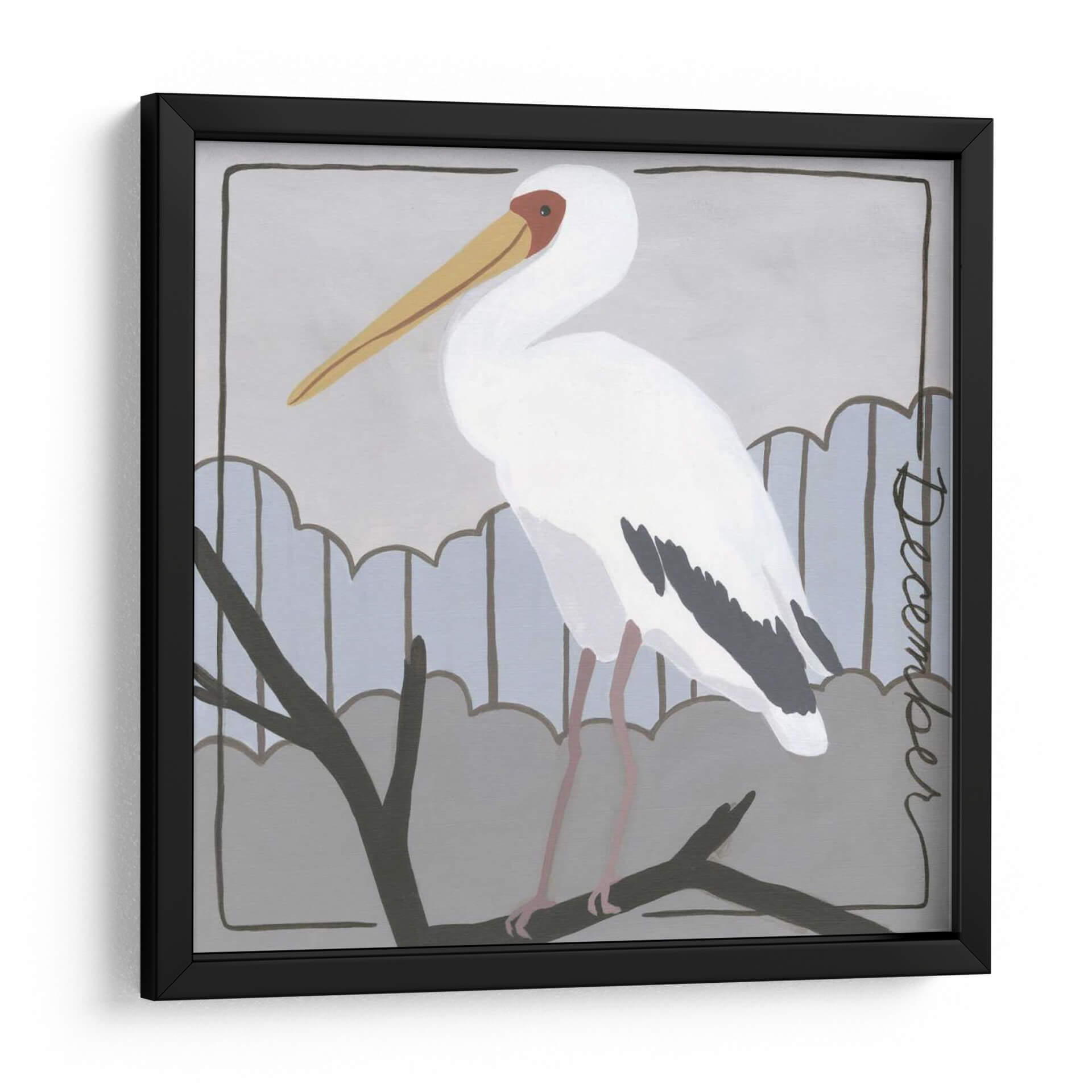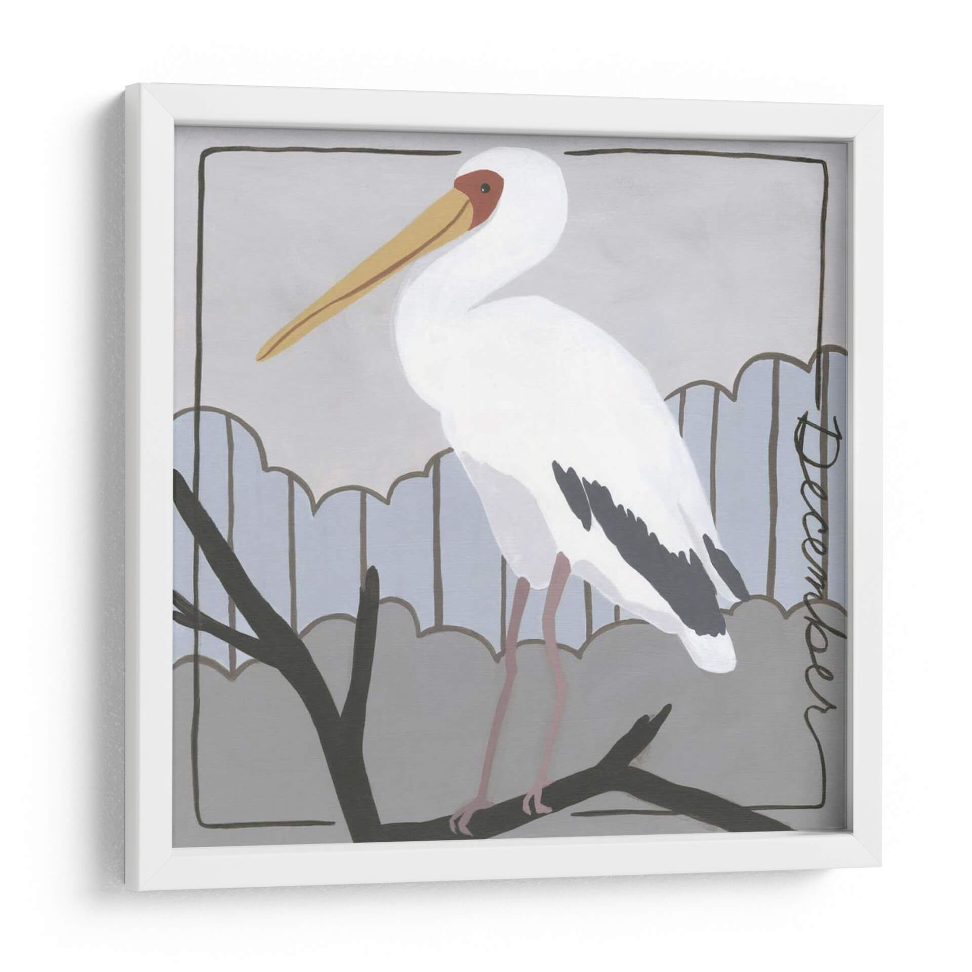 Aporta una pincelada de serenidad y estilo natural a tu hogar con "Avian Diciembre", una obra de arte decorativo de Megan Meagher. Este cautivador cuadro presenta un elegante pelícano posado sobre una rama, con una paleta de colores suaves y armoniosos que evocan la tranquilidad de un día invernal. Los tonos grises y azules del fondo contrastan sutilmente con el blanco plumaje del ave y los acentos cálidos de su pico y ojos, creando una composición visualmente atractiva y relajante. El estilo distintivo de la artista combina elementos figurativos con un toque moderno y simplificado, haciendo de esta pieza una adición versátil para cualquier espacio. Ideal para salones, dormitorios o estudios que buscan infundir una atmósfera de calma y sofisticación natural. "Avian Diciembre" no es solo una decoración de pared, es una ventana a la belleza serena de la naturaleza, capturada con sensibilidad artística para embellecer tu entorno. Transforma tu espacio con esta pieza única que inspira paz y contemplación, perfecta para quienes aprecian el arte contemporáneo con alma.