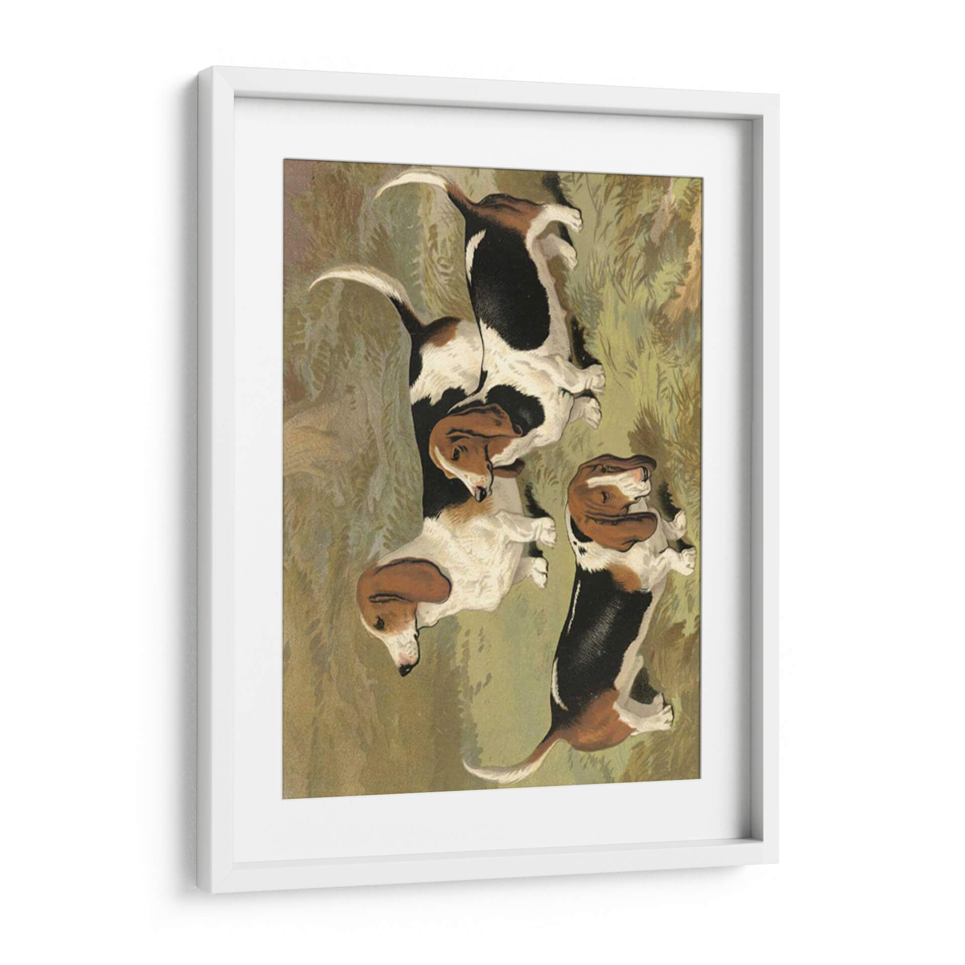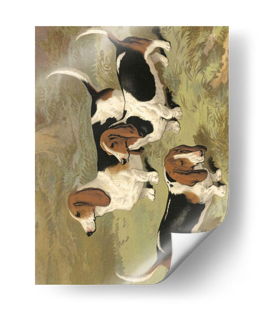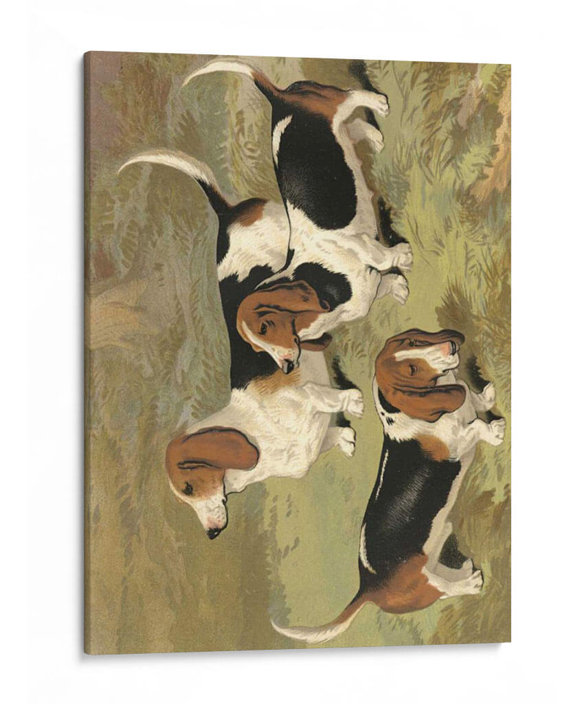 Emb uevo en un viaje visual con este encantador cuadro decorativo que presenta un grupo de Basset Hounds, obra de la artista Vero Shaw. La pieza capta la esencia de estos perros icónicos con sus largas orejas caídas y expresiones amables, desplegándose en un entorno que evoca la naturaleza y la tranquilidad. La paleta de colores se centra en tonos terrosos y verdes apagados, creando una atmósfera serena y acogedora que invita a la contemplación. El estilo de la obra, con pinceladas que sugieren un realismo nostálgico, añade profundidad y carácter a la composición. Cada Basset Hound está representado con un encanto particular, y su disposición conjunta transmite una sensación de camaradería y calma. Este cuadro es ideal para añadir un toque de calidez y personalidad a cualquier espacio, ya sea una sala de estar, un estudio o incluso una habitación infantil. Su temática centrada en mascotas y su ejecución artística lo convierten en una pieza versátil, perfecta para amantes de los perros y para aquellos que buscan un arte decorativo que combine ternura y sofisticación.