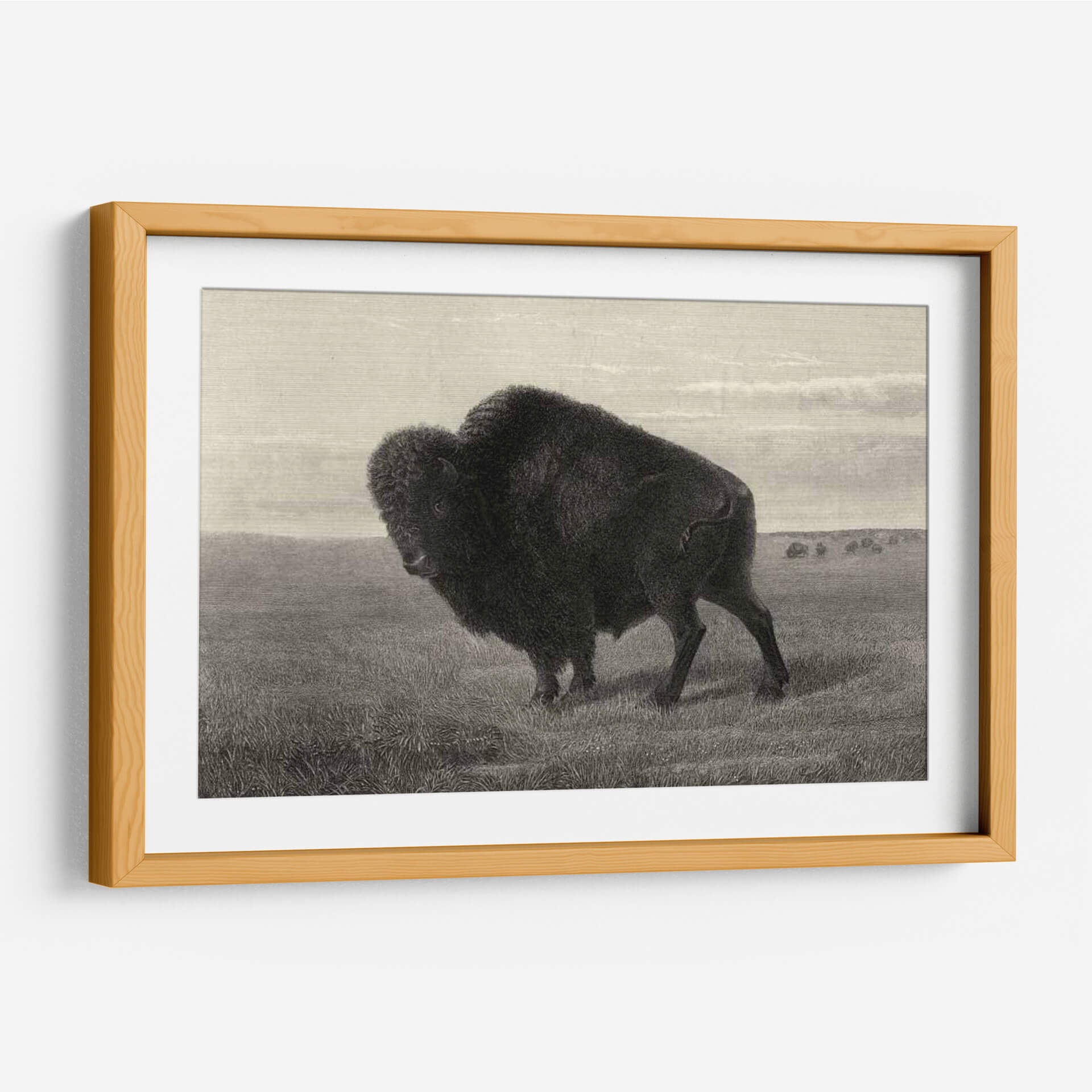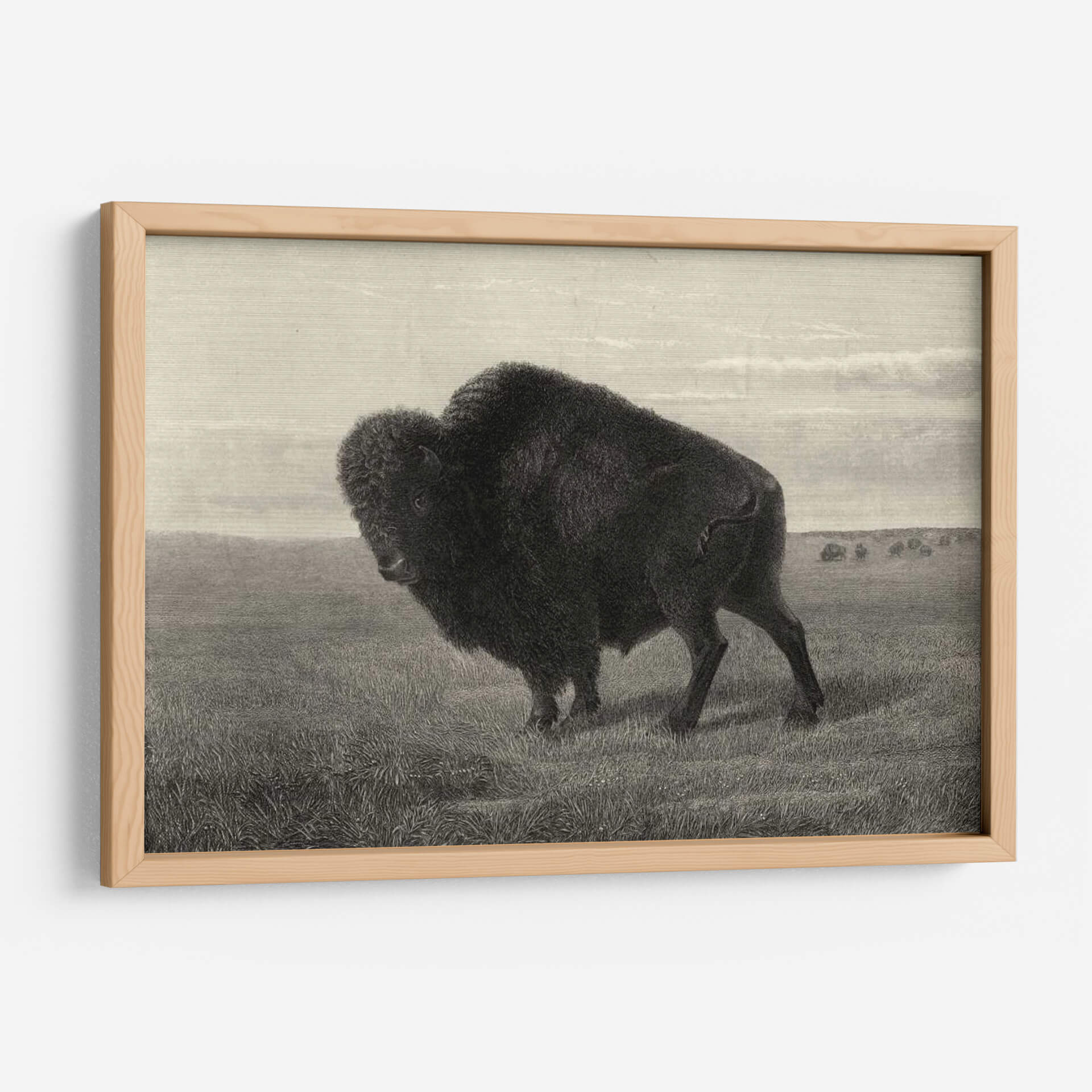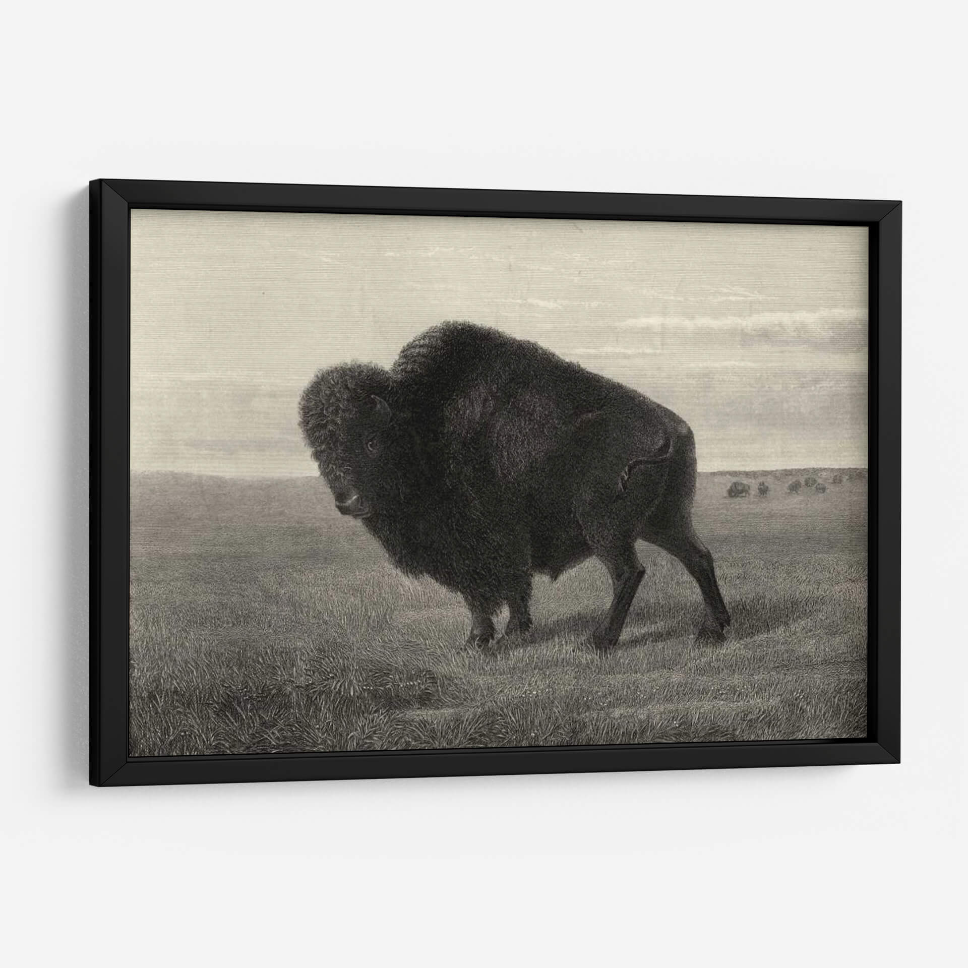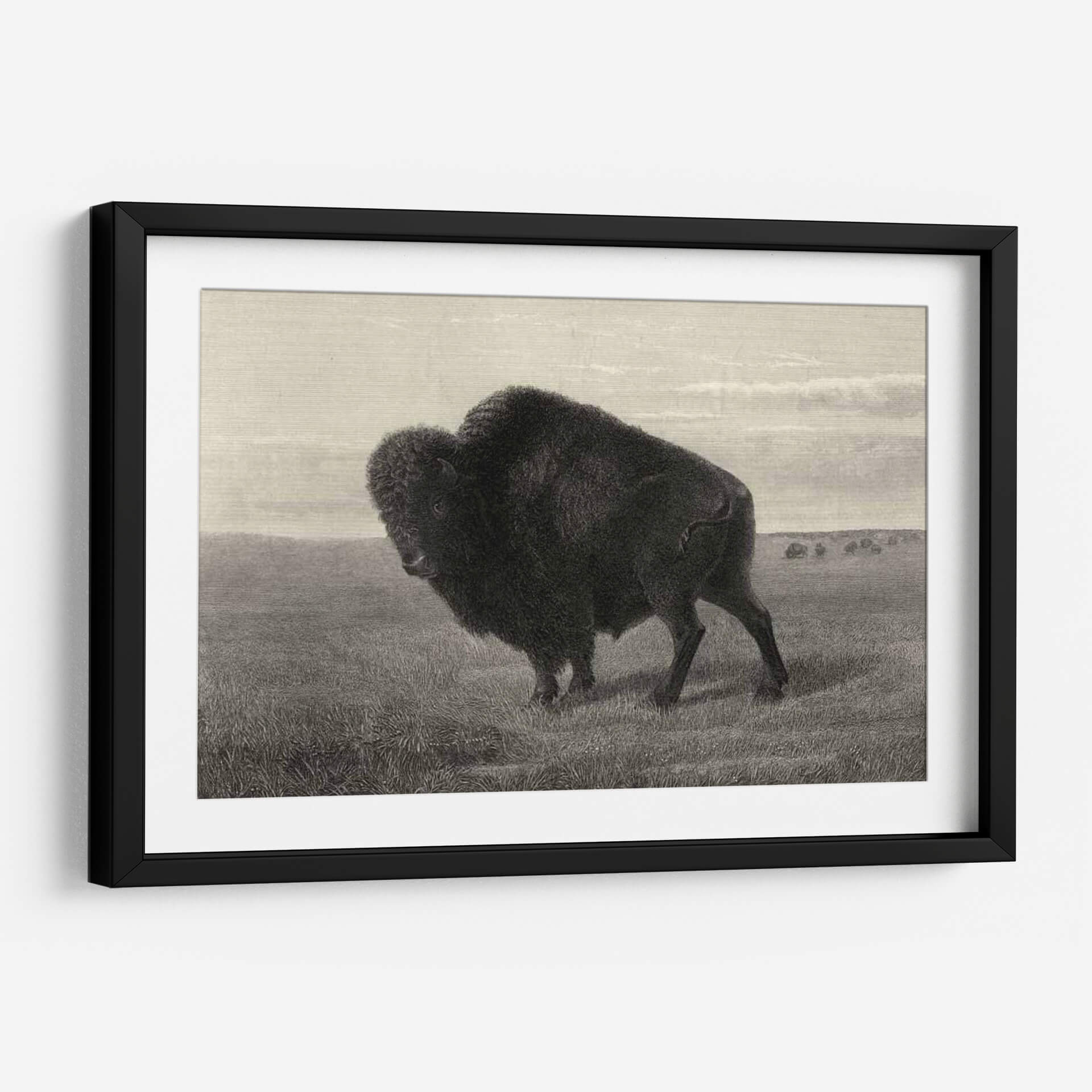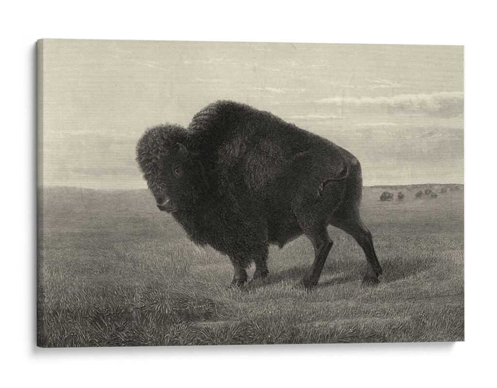 Sumérgete en la majestuosidad de la naturaleza con este impresionante cuadro decorativo de un Bisonte Americano, capturado con un detalle exquisito por el artista Robert Hinshelwood. La obra presenta a este imponente animal en su hábitat natural, un vasto prado que evoca la grandeza de las llanuras. La paleta de colores en tonos sepia y grises crea una atmósfera de serenidad y fuerza atemporal, perfecta para añadir un toque de carácter y elegancia a cualquier espacio. La composición, con el bisonte como protagonista indiscutible, atrae la mirada y genera un punto focal poderoso, ideal para salas de estar, estudios o cualquier rincón que busque inspiración y conexión con la vida silvestre. Este cuadro decorativo es más que una simple pieza de arte; es una declaración de la indomable belleza de la fauna americana y un tributo a su espíritu resiliente. Su estilo detallado y realista, reminiscent de grabados clásicos, aporta un aire de sofisticación y profundidad, asegurando que sea un tema de conversación y admiración. Añade esta obra maestra a tu colección y permite que la presencia del bisonte llene tu hogar de poder y tranquilidad.