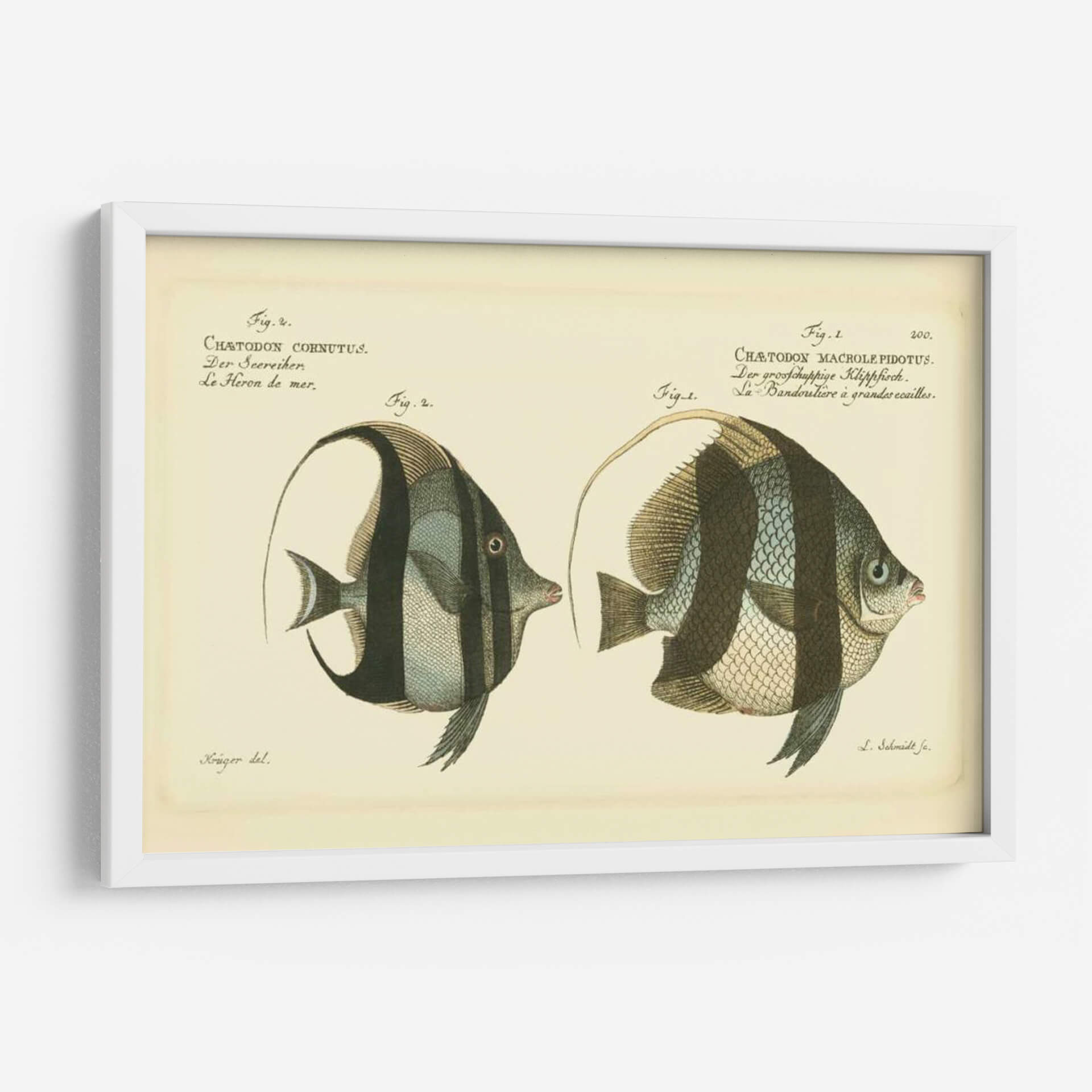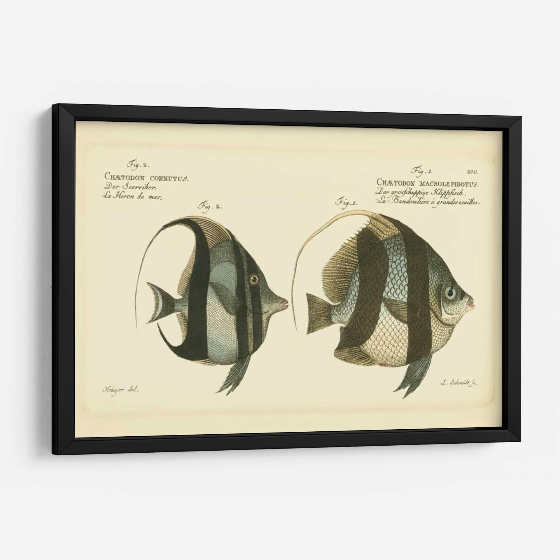 Sumérgete en la elegancia natural con nuestro cuadro decorativo "Bloch Antique Fish I". Esta obra maestra captura la delicadeza y la majestuosidad de dos peces de arrecife, presentados con un estilo de ilustración científica que evoca la era dorada de la exploración marina. La paleta de colores, dominada por tonos suaves y cremosos, se complementa con los detalles en negro y azul de los peces, creando un contraste sutil pero cautivador. La composición, centrada en estas fascinantes criaturas, aporta un aire de serenidad y conocimiento científico al espacio. Ideal para añadir un toque de sofisticación natural a tu sala de estar, estudio u oficina, este cuadro decorativo es perfecto para amantes de la vida marina, la historia natural o para aquellos que aprecian el arte con un encanto atemporal. Transforma tu hogar en una galería de maravillas oceánicas con esta pieza única que combina arte, ciencia y decoración de interiores de manera excepcional.