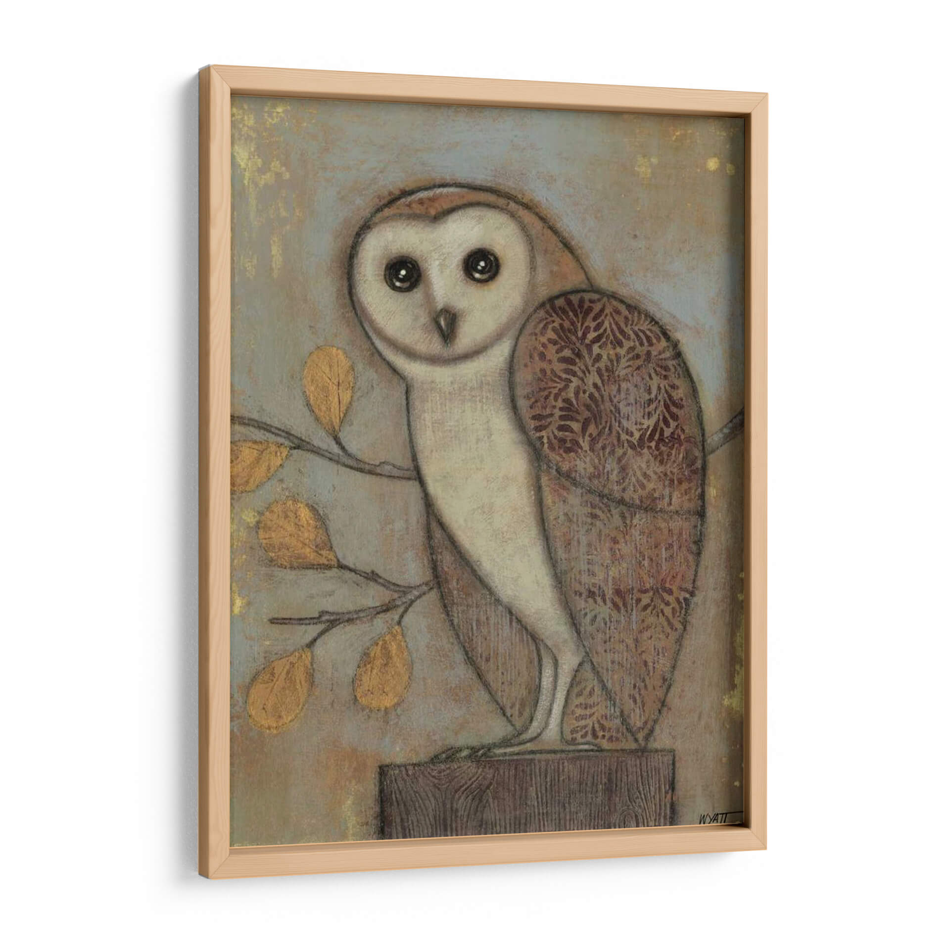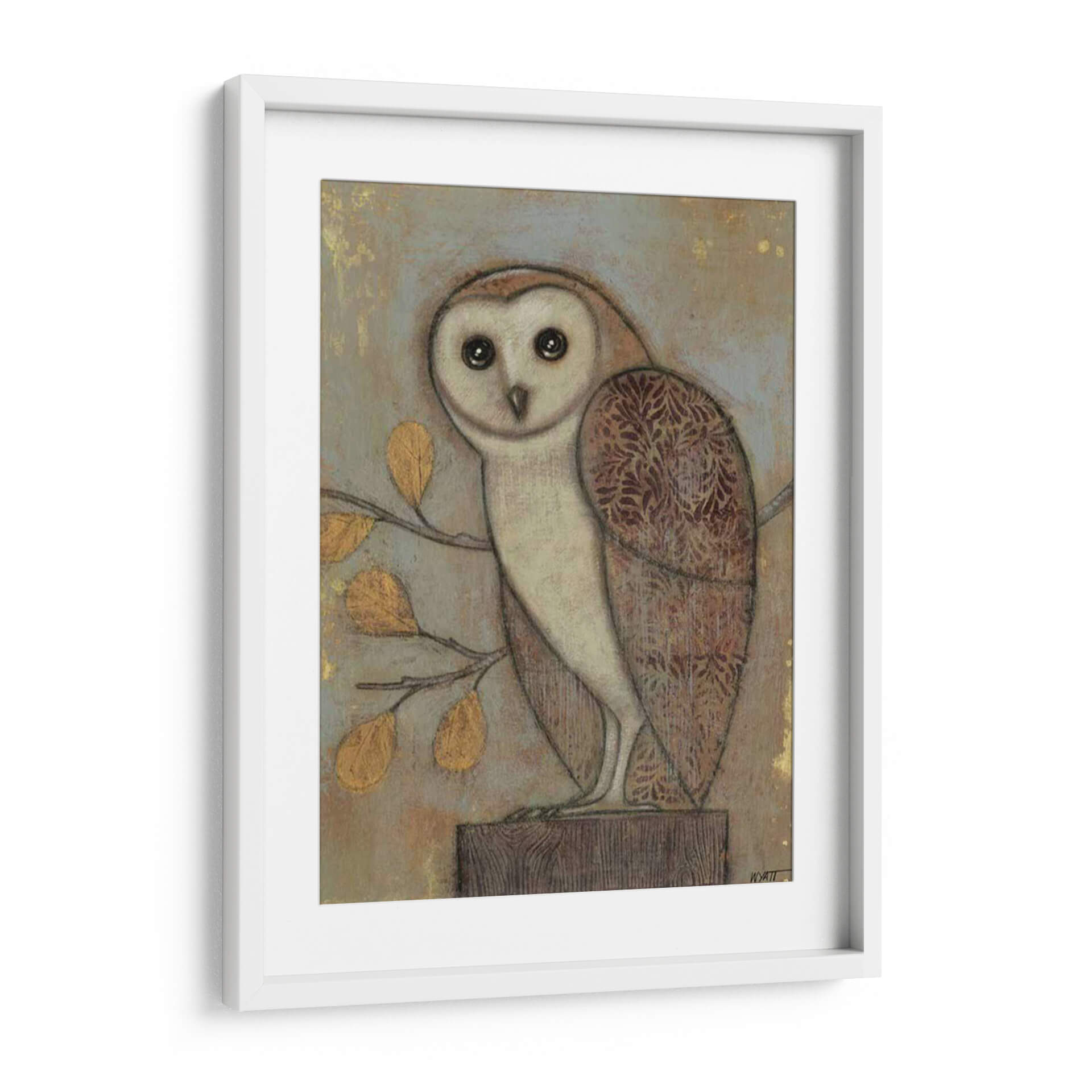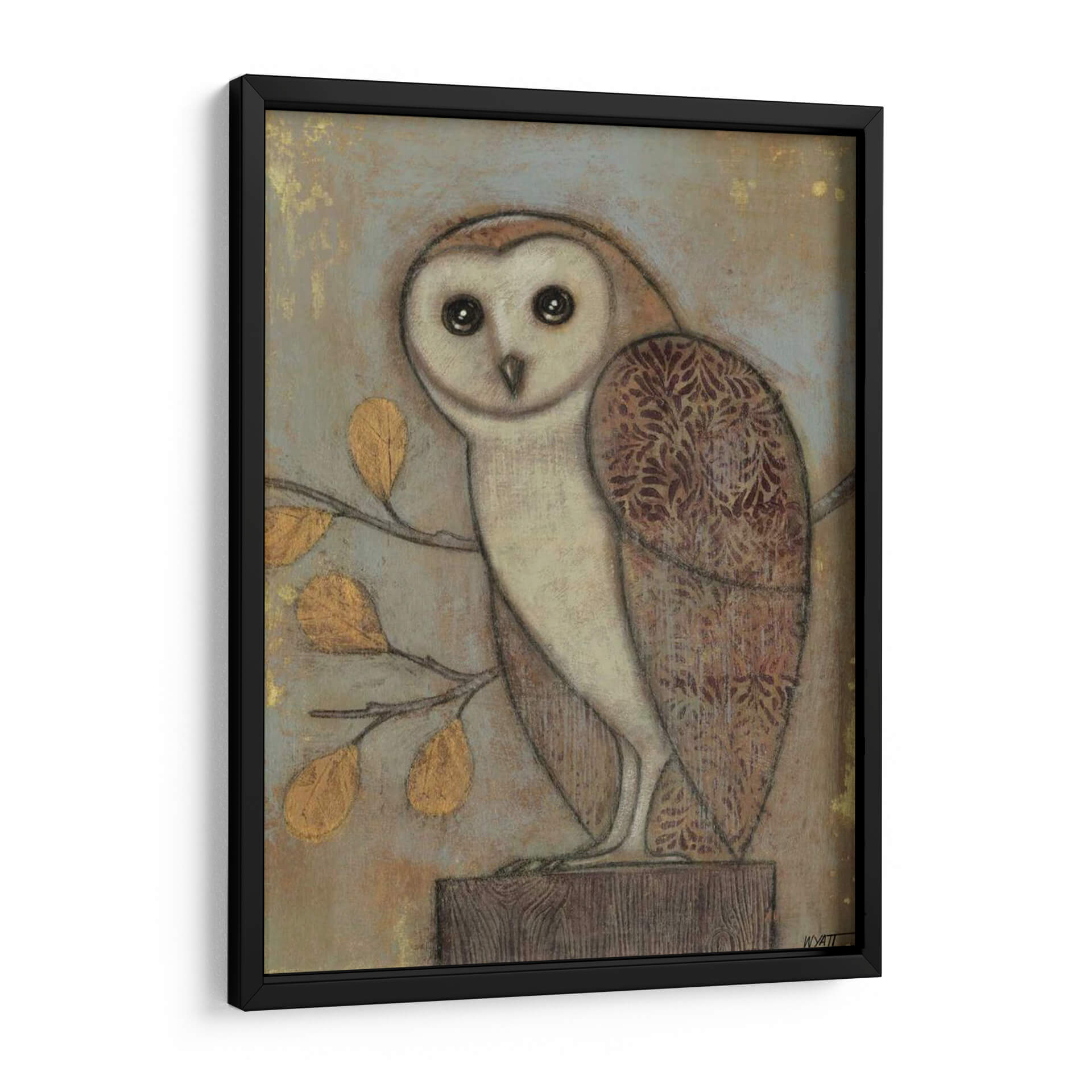 Embellece tu hogar con "Búho Adornado II", una cautivadora obra de arte digital del reconocido artista Norman Wyatt Jr. Esta pieza presenta un diseño estilizado y encantador de un búho, posado con elegancia sobre un tronco de madera. Los colores tierra, con toques dorados vibrantes en las hojas de un ramaje cercano y sutiles patrones ornamentales en las alas del ave, crean una atmósfera de calidez y sofisticación. El fondo texturizado en tonos grises y ocres aporta profundidad y un aire de misterio, mientras que la mirada penetrante del búho añade un toque de sabiduría y personalidad. El estilo artístico combina elementos realistas con un toque rústico y decorativo, resultando en una pieza que es a la vez atemporal y moderna. "Búho Adornado II" es perfecto para añadir un punto focal de interés a tu sala de estar, estudio u oficina, evocando una sensación de conexión con la naturaleza y la serenidad. Este cuadro decorativo es ideal para aquellos que aprecian el arte con carácter y desean infundir a sus espacios un ambiente acogedor y con estilo.
