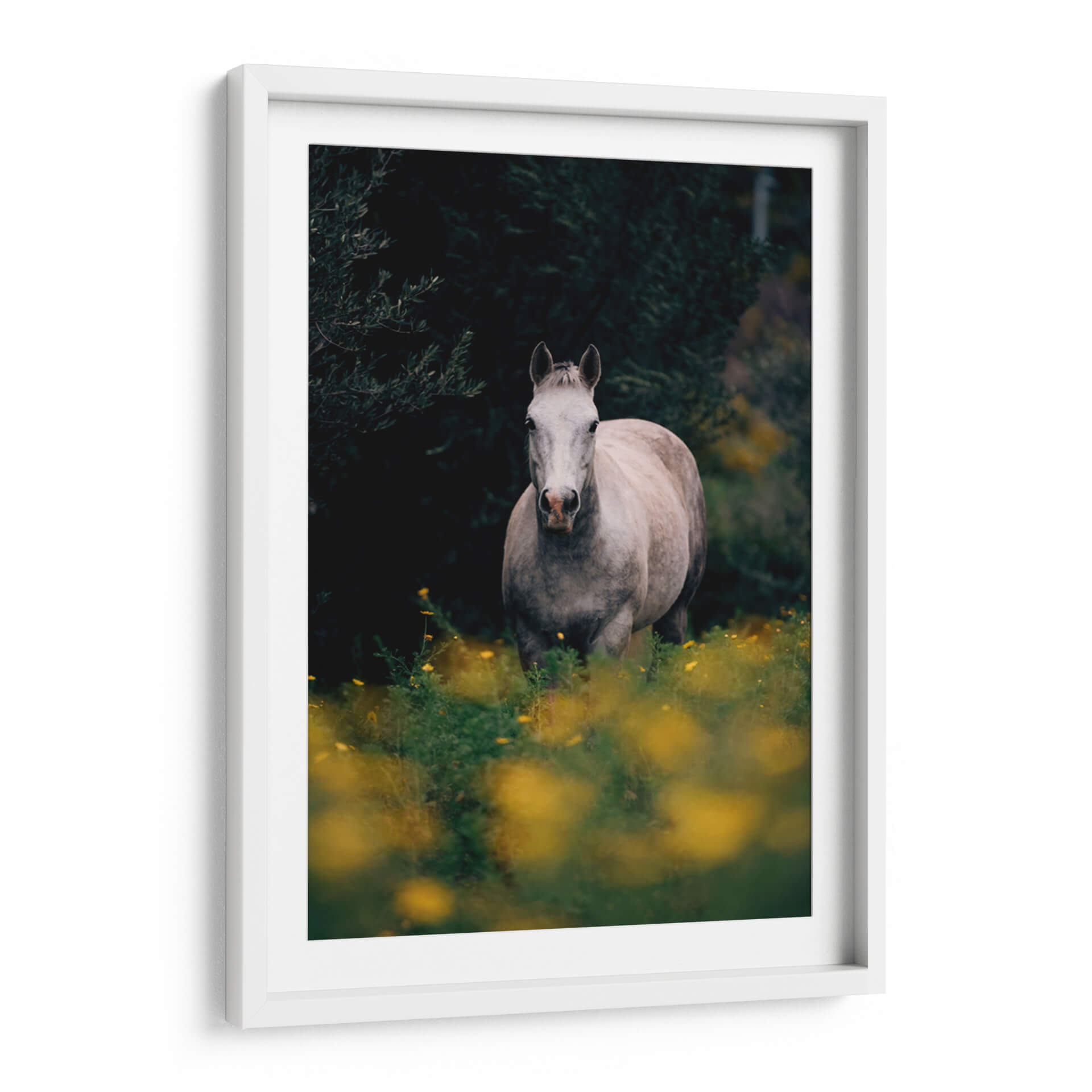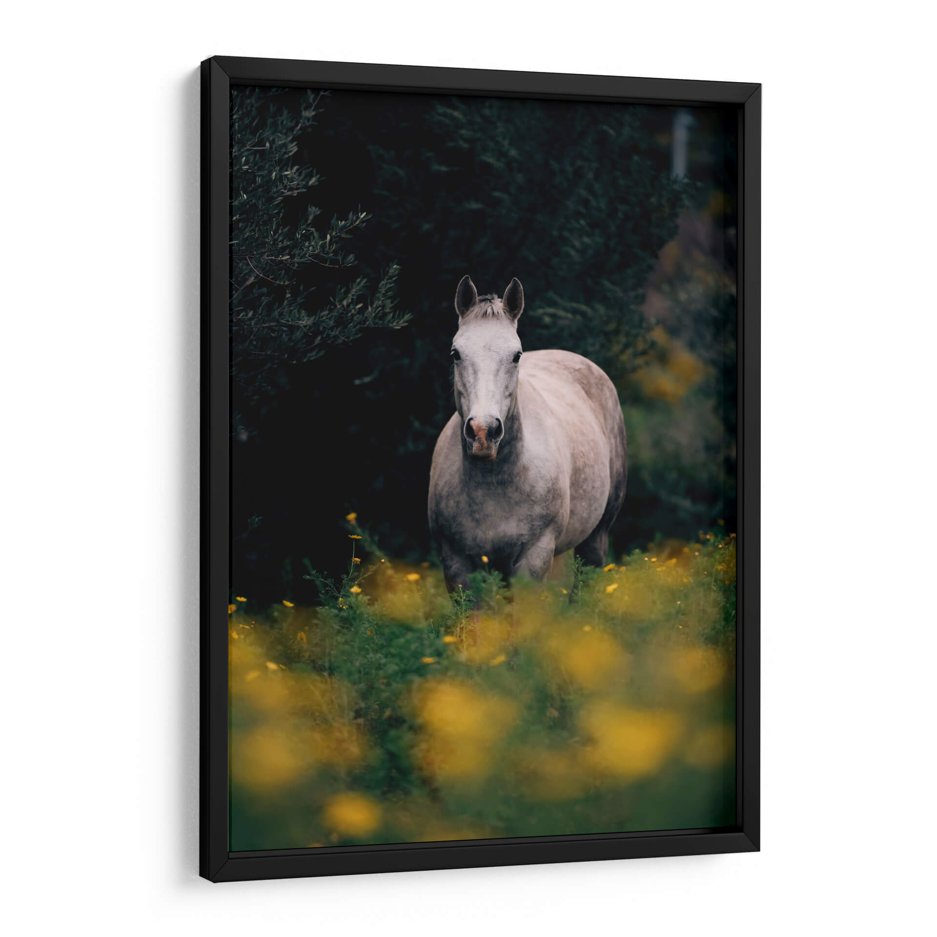 Sumérgete en la serena belleza de la naturaleza con nuestro cuadro decorativo 'Caballo Gris en el Campo'. Esta cautivadora obra de arte captura a un majestuoso caballo de pelaje grisáceo, enmarcado por un exuberante campo de flores amarillas y un fondo de follaje oscuro y frondoso. La composición, con el caballo posicionado al centro y mirando directamente al espectador, crea una conexión íntima y poderosa. Los tonos tierra y verdes profundos, contrastados con los vibrantes toques amarillos de las flores, generan una atmósfera de tranquilidad y armonía natural. La luz suave y difusa resalta las texturas y confiere a la pieza un aire de ensueño. Este cuadro es ideal para añadir un toque de elegancia rústica y serenidad a cualquier espacio, ya sea una sala de estar, un dormitorio o una oficina que busque un refugio de paz. Su estilo evocador y la temática ecuestre lo convierten en una elección perfecta para los amantes de los animales y la naturaleza, así como para quienes buscan una pieza de arte que inspire calma y contemplación. Añade esta obra maestra a tu colección y transforma tu hogar en un santuario de belleza natural y elegancia atemporal.