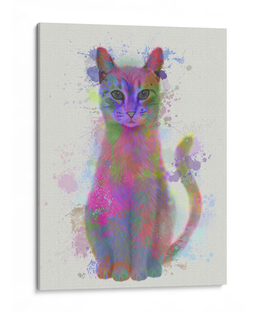 Este vibrante cuadro decorativo "Cat Rainbow Splash 4" de Fab Funky captura la esencia juguetona y enérgica de un felino con un toque artístico único. La obra presenta un gato sentado, representado con trazos sueltos y una explosión de colores que simulan una técnica de acuarela y salpicaduras. Predominan tonos azules, rosas, verdes y amarillos que se fusionan creando un efecto dinámico y moderno. El fondo neutro resalta la figura central, permitiendo que los colores y la textura de las "pinceladas" splasheadas sean los protagonistas. La expresión del gato es serena, contrastando con la vivacidad de su pelaje colorido, lo que añade profundidad y carácter a la pieza. Ideal para quienes buscan añadir un acento de color y personalidad a espacios como salas de estar, estudios o habitaciones juveniles. Este cuadro es perfecto para amantes de los gatos y del arte contemporáneo que aprecian la originalidad y la alegría en la decoración. Su estilo, que fusiona el realismo de la figura con la abstracción del color, lo convierte en un punto focal cautivador que invita a la conversación y evoca una sensación de diversión y creatividad en cualquier ambiente.