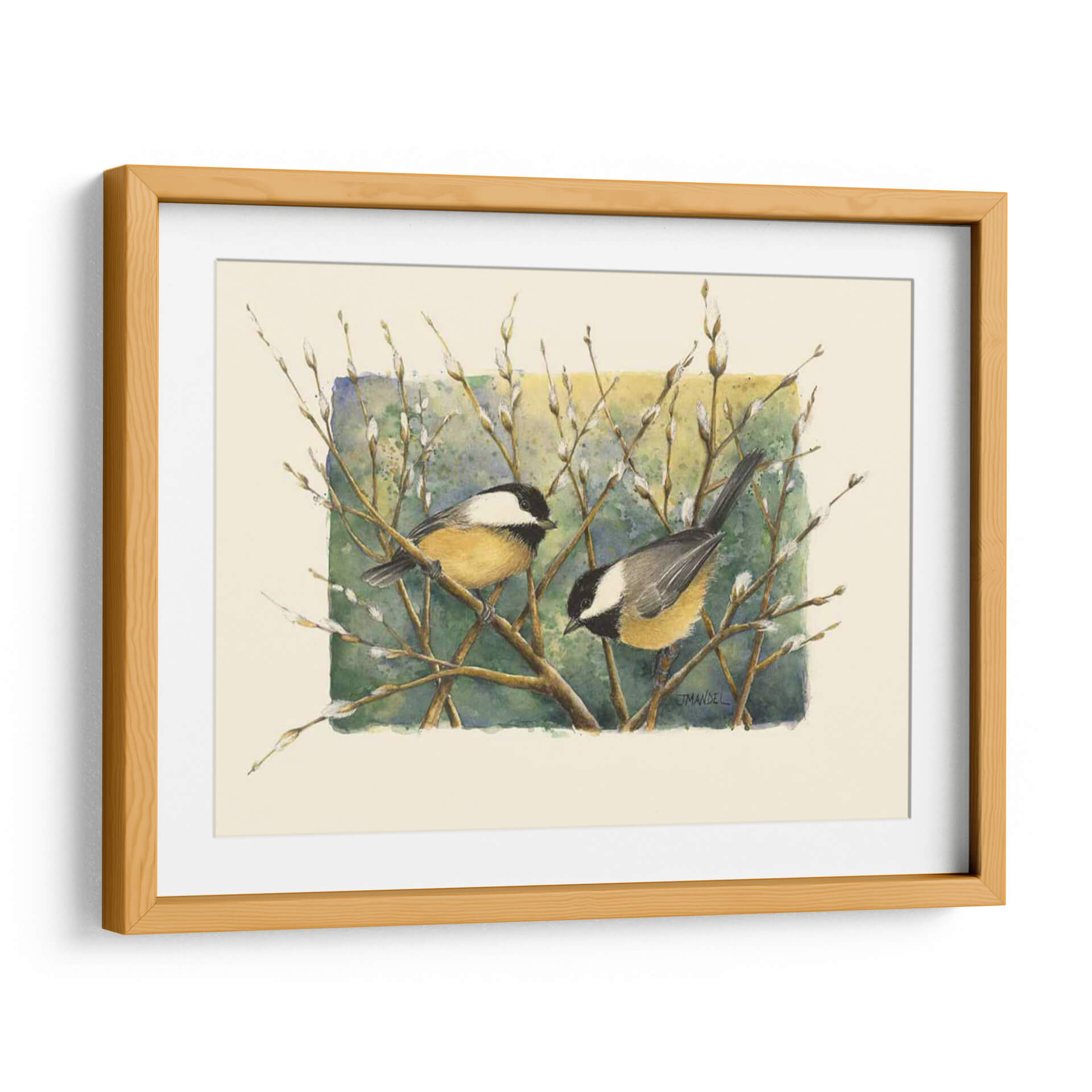 Este encantador cuadro decorativo "Chickadees Y Coño Sauce" de Janet Mandel captura la delicadeza de dos pájaros cárabos posados en ramas cubiertas de brotes. La obra presenta una paleta de colores suaves y naturales, con tonos tierra y verdes acuosos que crean una atmósfera serena y acogedora. El estilo realista y detallado de Mandel da vida a la escena, permitiendo apreciar la textura de las plumas de los pájaros y la delicadeza de los brotes de sauce. La composición, centrada en la interacción de los dos pájaros y el entorno natural, evoca una sensación de paz y conexión con la naturaleza. Este cuadro es ideal para añadir un toque de serenidad y encanto a cualquier espacio, ya sea una sala de estar, un dormitorio o una oficina. Las tonalidades neutras y el tema de la vida silvestre lo convierten en una pieza versátil que complementará diversos estilos de decoración, desde el rústico hasta el contemporáneo. Descubre la belleza sutil de la naturaleza en tu hogar con esta exquisita pieza de arte. Es un regalo perfecto para amantes de las aves y la naturaleza.