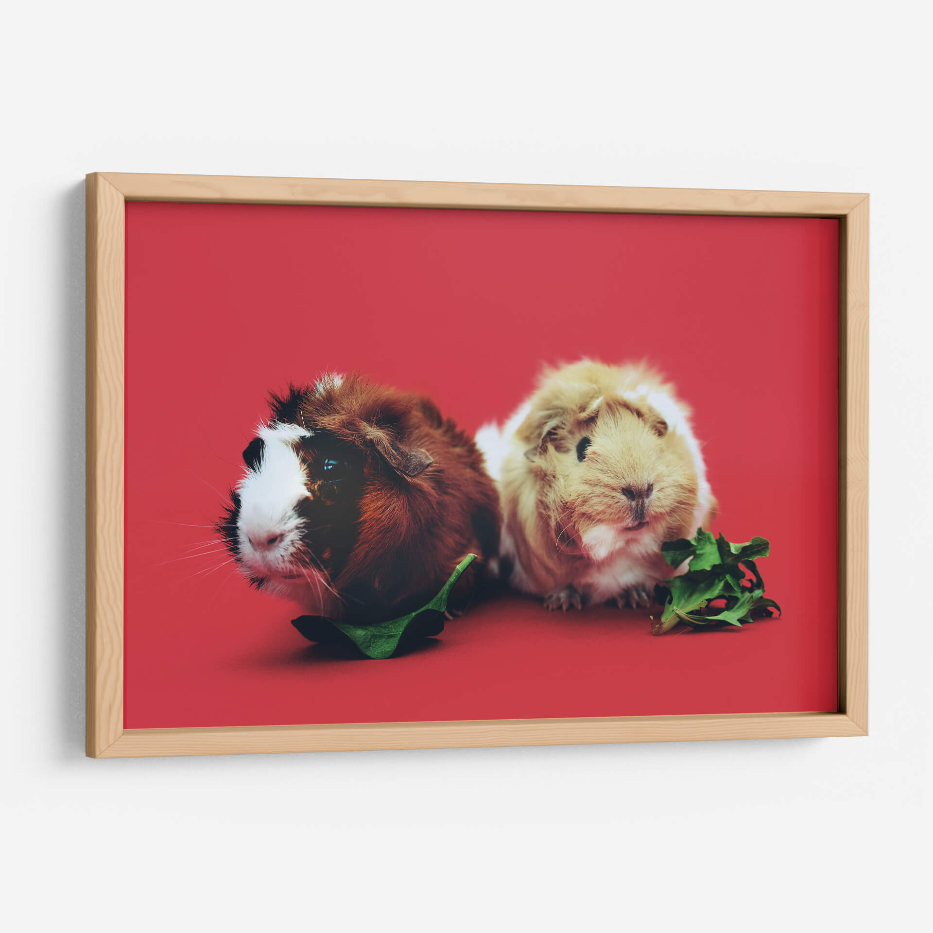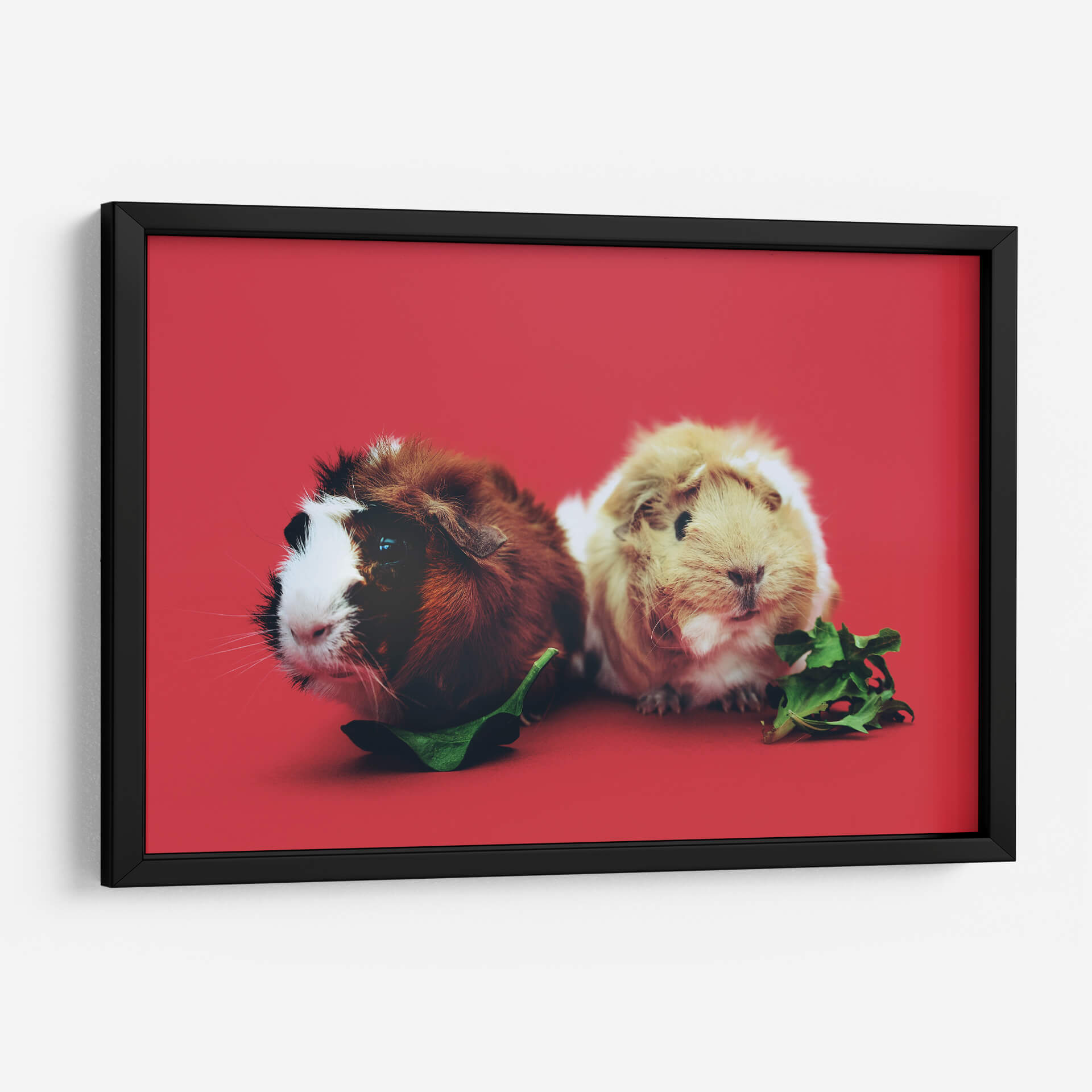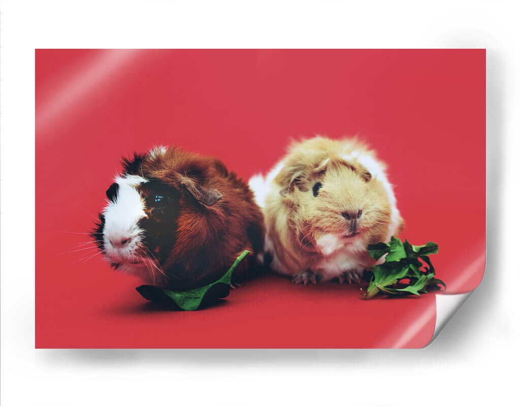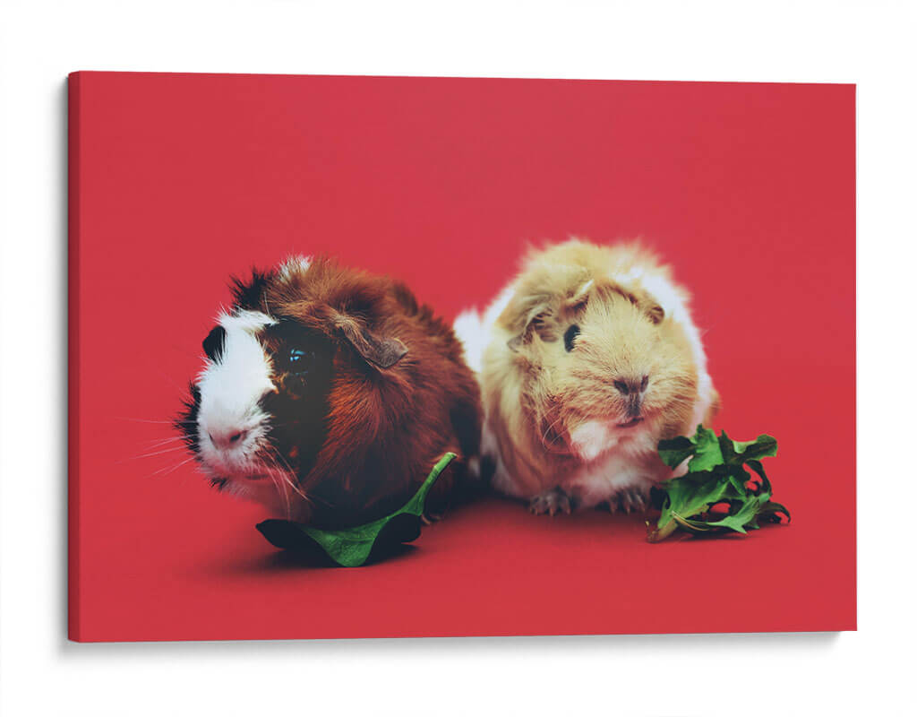 Sumérgete en la ternura y el encanto con esta cautivadora obra de arte que presenta a dos adorables cuyes, "Cuyitos con hojitas". Capturada con un estilo fotográfico cercano y un enfoque nítido, la pieza resalta la textura del pelaje de los cuyes y la frescura de las hojas verdes que los acompañan. La vibrante y sólida paleta de colores rojos actúa como un telón de fondo audaz, haciendo que los suaves tonos marrones, dorados y blancos de los animales y el verde de las hojas resalten de manera excepcional. Esta composición minimalista, centrada en la inocencia y la simplicidad de la naturaleza, evoca una sensación de calma y alegría. Es la pieza perfecta para añadir un toque de dulzura y calidez a cualquier espacio, desde una sala de estar moderna hasta un dormitorio acogedor o una guardería llena de vida. "Cuyitos con hojitas" es más que una simple decoración; es una ventana a la belleza de lo cotidiano, una obra que seguramente provocará sonrisas y conversaciones.