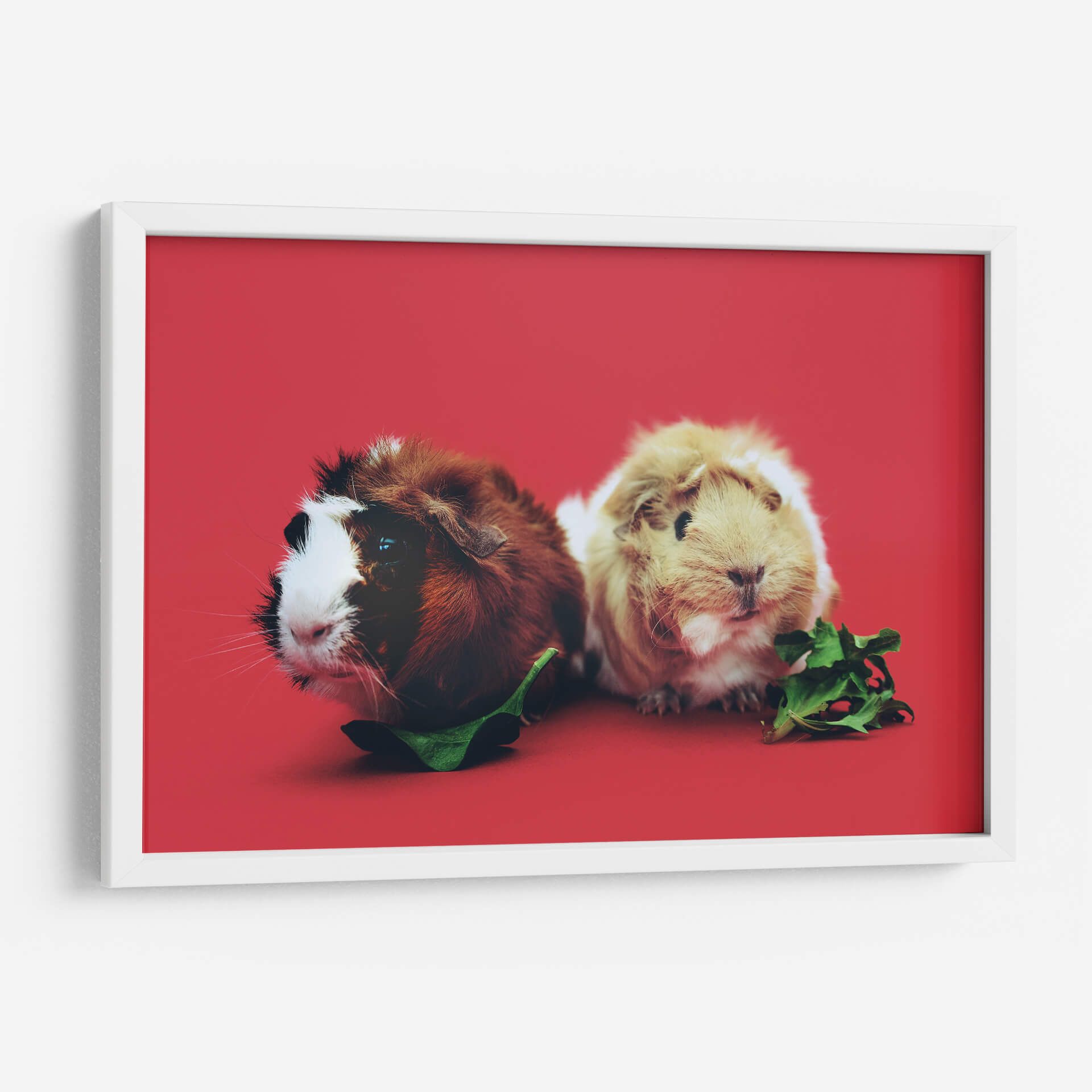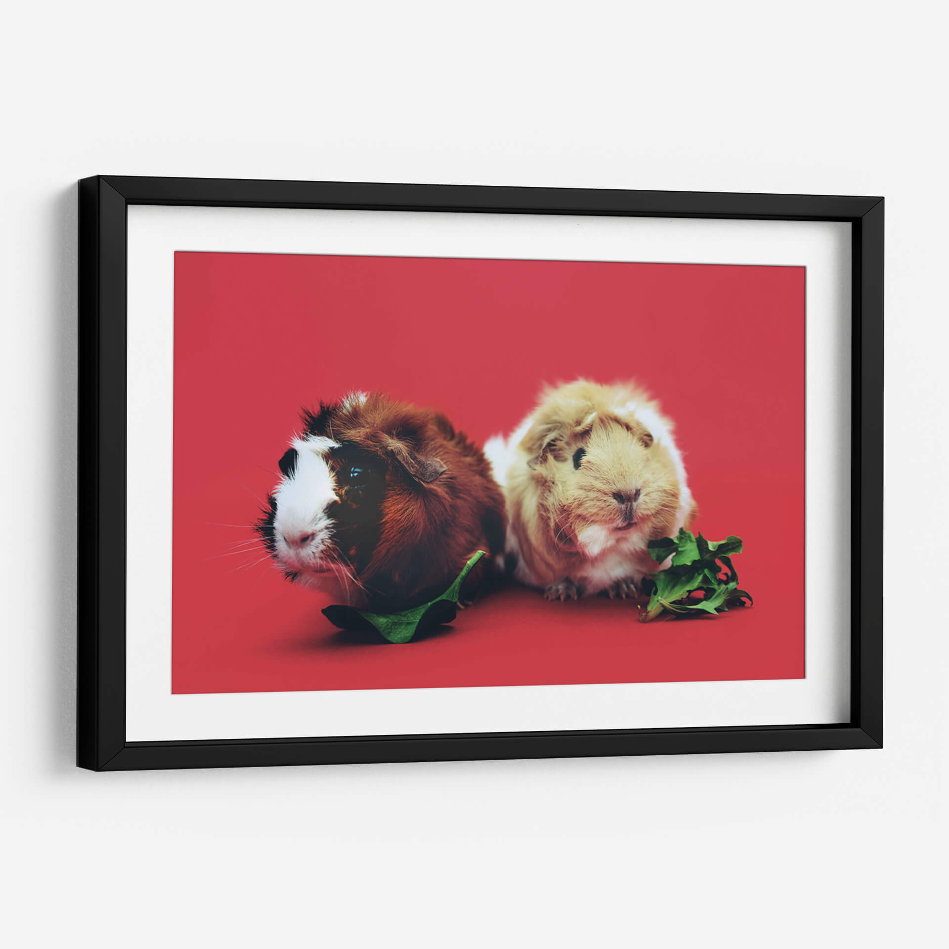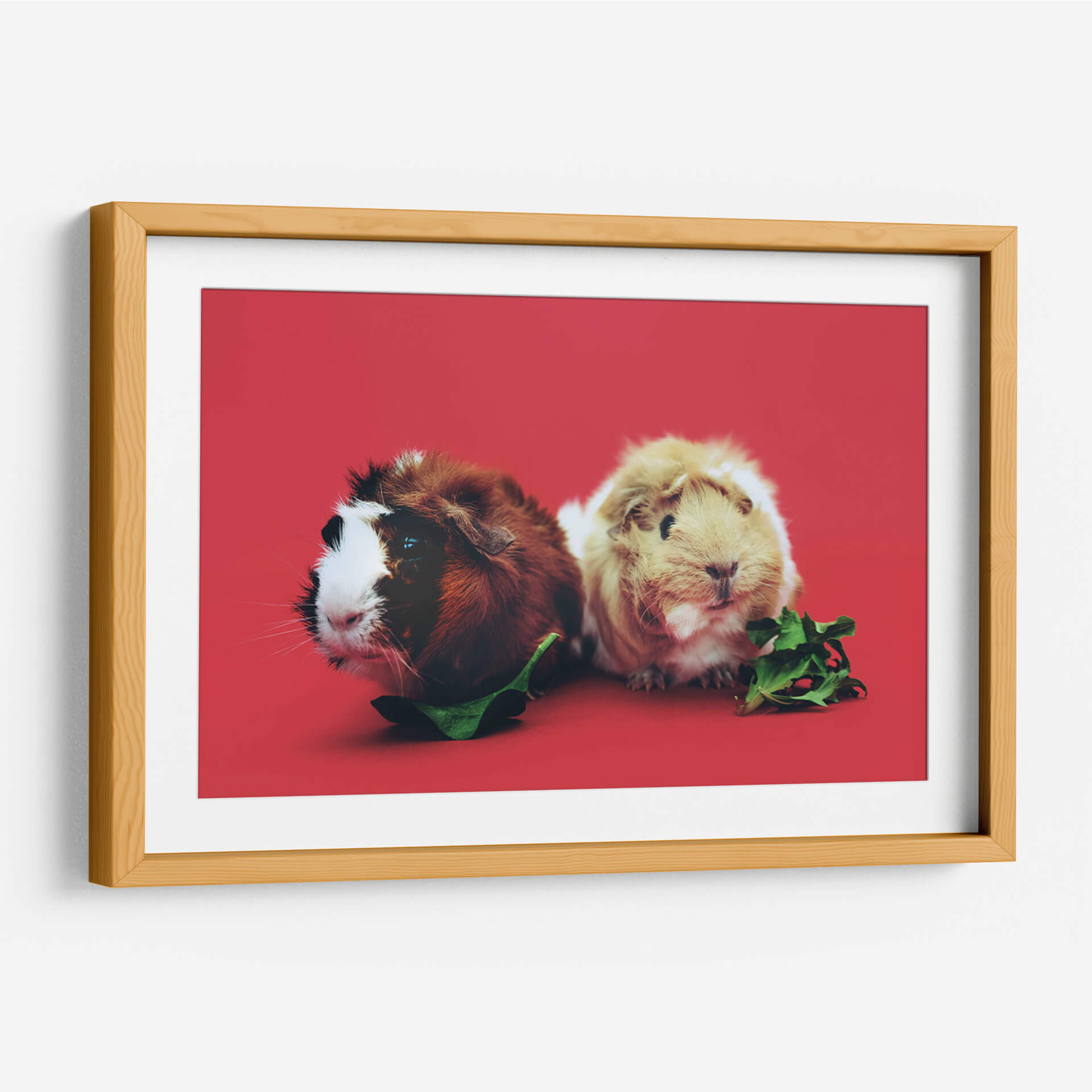 Sumérgete en la ternura y el encanto con esta cautivadora obra de arte que presenta a dos adorables cuyes, "Cuyitos con hojitas". Capturada con un estilo fotográfico cercano y un enfoque nítido, la pieza resalta la textura del pelaje de los cuyes y la frescura de las hojas verdes que los acompañan. La vibrante y sólida paleta de colores rojos actúa como un telón de fondo audaz, haciendo que los suaves tonos marrones, dorados y blancos de los animales y el verde de las hojas resalten de manera excepcional. Esta composición minimalista, centrada en la inocencia y la simplicidad de la naturaleza, evoca una sensación de calma y alegría. Es la pieza perfecta para añadir un toque de dulzura y calidez a cualquier espacio, desde una sala de estar moderna hasta un dormitorio acogedor o una guardería llena de vida. "Cuyitos con hojitas" es más que una simple decoración; es una ventana a la belleza de lo cotidiano, una obra que seguramente provocará sonrisas y conversaciones.