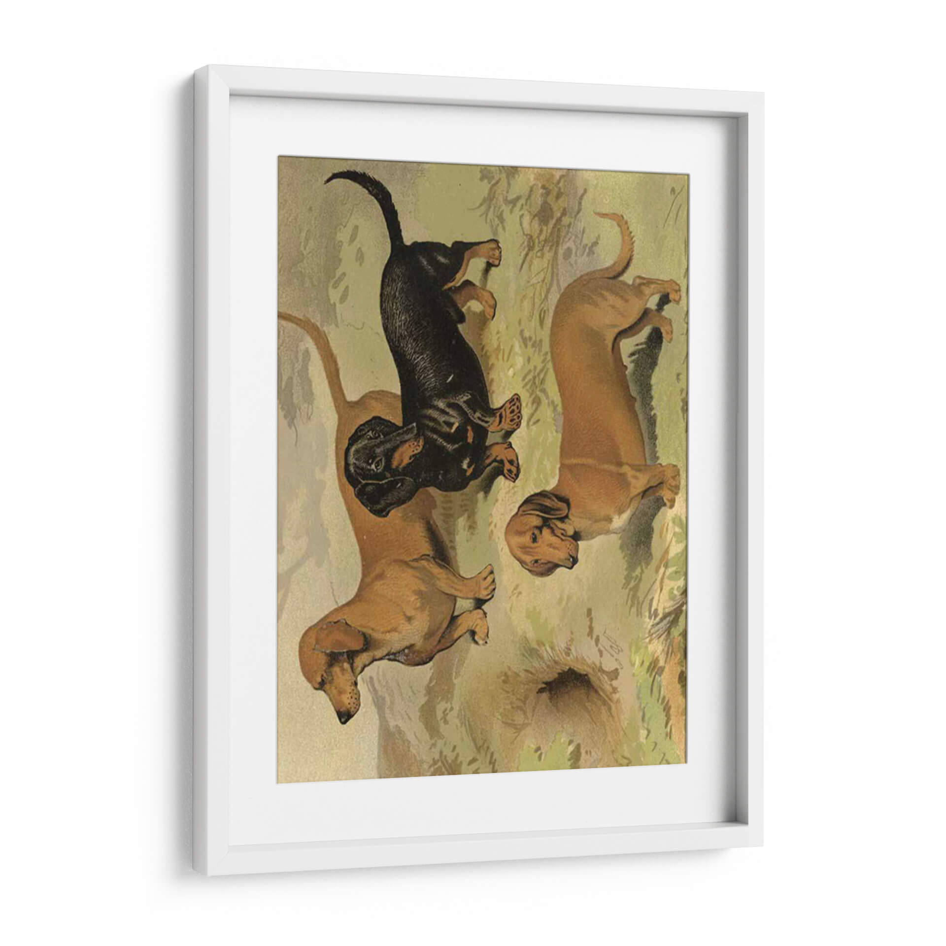 Captura la esencia juguetona y el encanto inconfundible de los Dachshunds con esta obra de arte única. Vero Shaw nos presenta una composición dinámica y llena de vida, donde tres perros salchicha, en tonos cálidos de marrón y negro, interactúan en un entorno natural evocador. La técnica pictórica, con toques que recuerdan a ilustraciones clásicas, aporta una textura visual rica y una atmósfera nostálgica. Los colores tierra y verdes suaves crean un ambiente sereno pero vibrante, perfecto para añadir un toque de personalidad a cualquier espacio. Este cuadro decorativo es ideal para amantes de los perros, especialmente de la raza Dachshund, y para quienes buscan una pieza que transmita alegría y un espíritu vivaz. Su estilo se adapta maravillosamente a decoraciones rústicas, vintage o incluso a un estilo ecléctico moderno, aportando un punto focal encantador a salones, estudios u oficinas. Imagina cómo esta escena llena de movimiento y carácter puede transformar tu pared, convirtiéndola en el centro de atención y una fuente de conversación. Una pieza que celebra la lealtad y la energía de estos adorables compañeros.