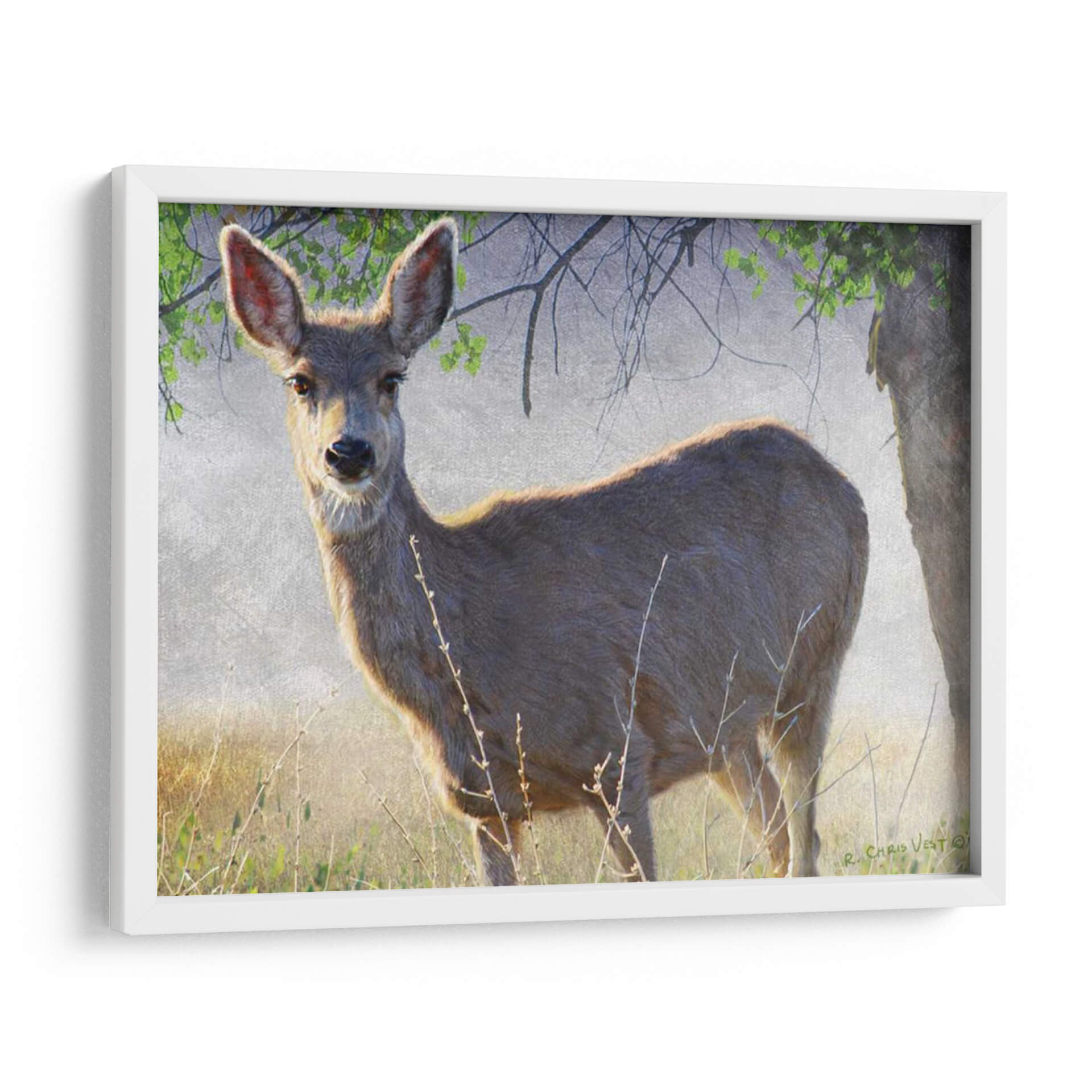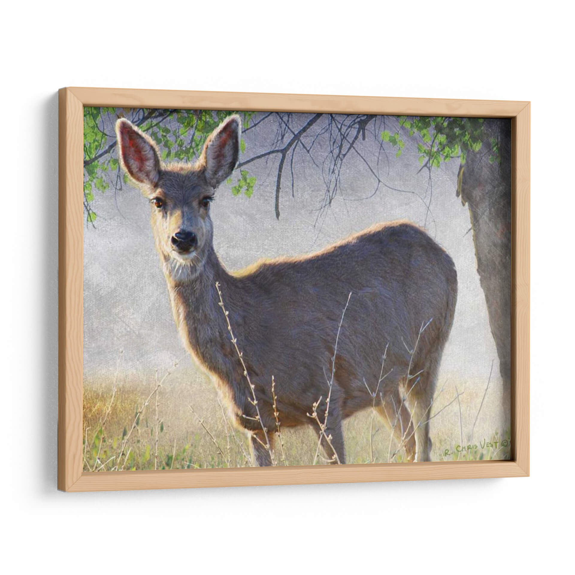 Sumérgete en la serenidad de la naturaleza con "Doe De Primavera", una cautivadora obra de arte de Chris Vest que captura la delicada belleza de un ciervo en su hábitat natural. Esta pieza evoca una atmósfera de calma y conexión con el mundo silvestre, ideal para añadir un toque de tranquilidad a tu hogar u oficina. La composición presenta a un ciervo de mirada curiosa, enmarcado por la suave luz de la mañana que se filtra a través de las hojas verdes y las ramas de los árboles. La paleta de colores, dominada por tonos tierra, verdes suaves y toques de luz dorada, crea una sensación de calidez y paz. El estilo realista con un toque etéreo, casi onírico, transporta al espectador a un momento de contemplación. Este cuadro decorativo es perfecto para espacios que buscan transmitir serenidad, como dormitorios, salas de estar o estudios. Su presencia aporta una sensación de armonía y un recordatorio sutil de la belleza simple y pura de la vida salvaje. "Doe De Primavera" no es solo una decoración, es una ventana a un mundo natural sereno que invita a la reflexión y al bienestar, convirtiéndose en un punto focal encantador y significativo en cualquier ambiente.