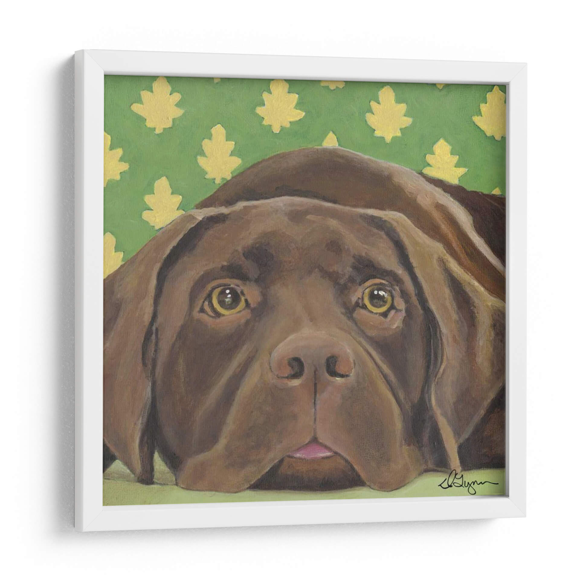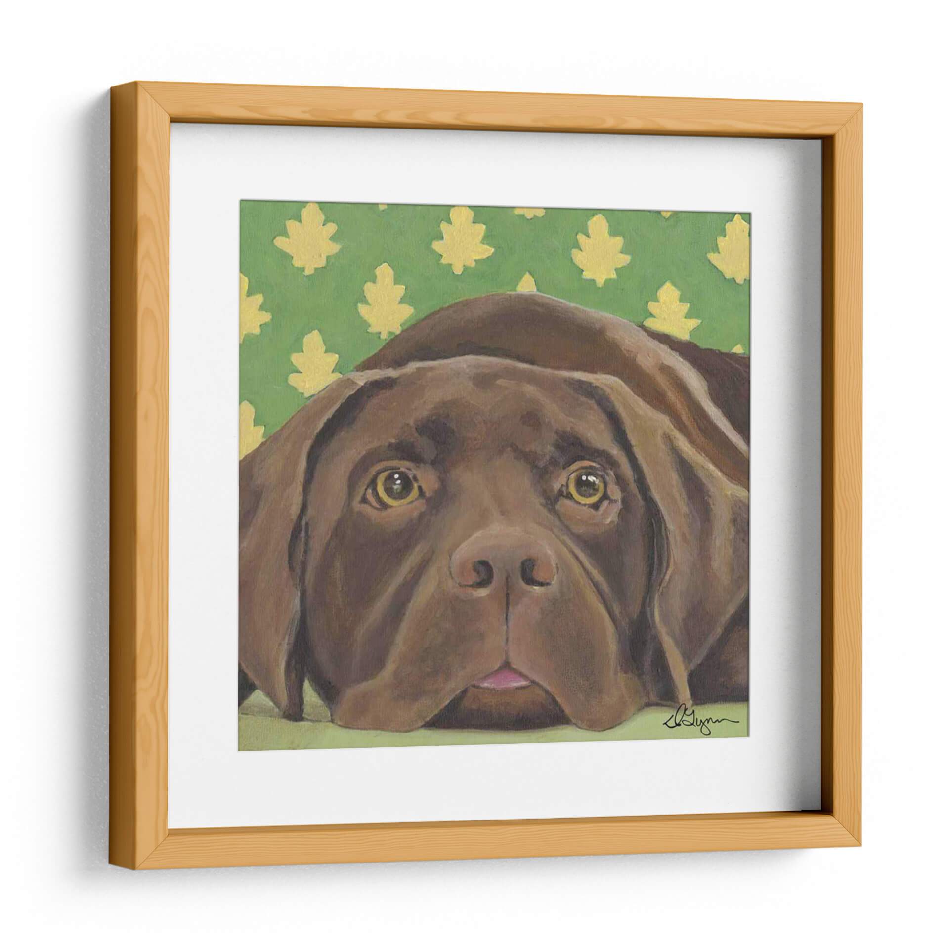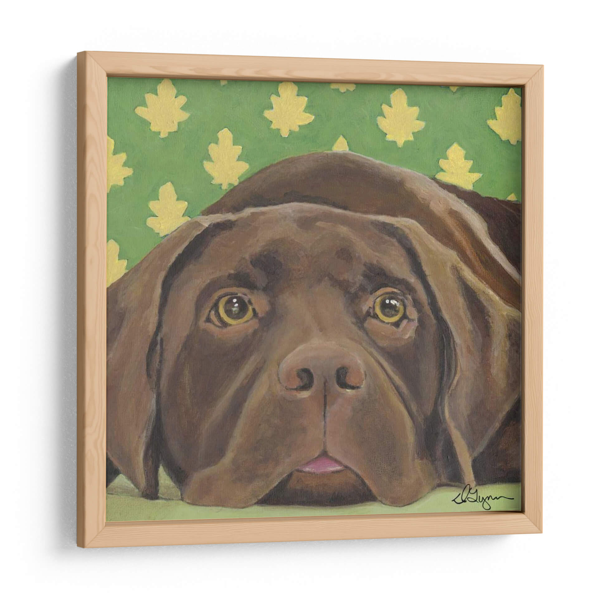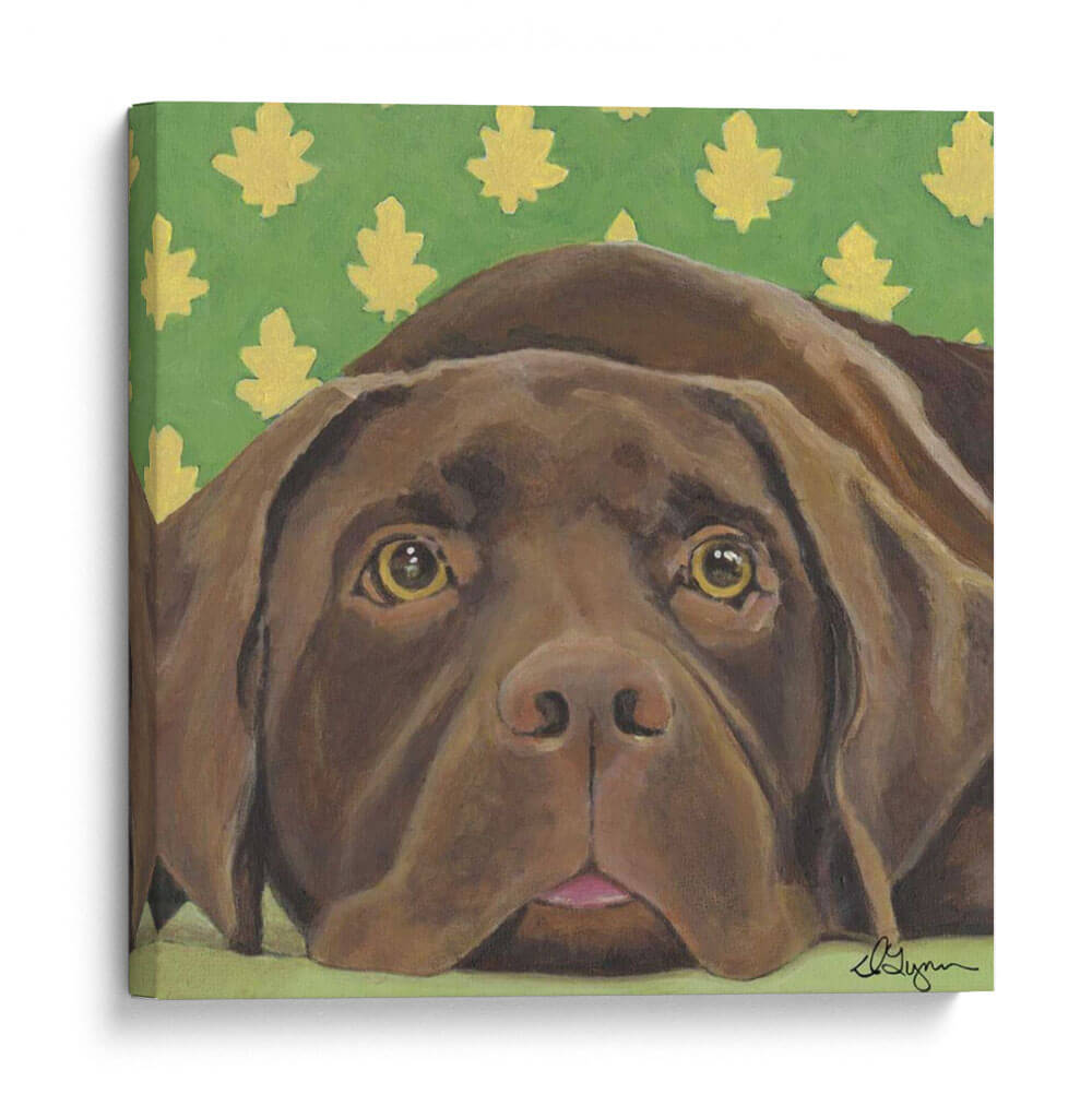 Embellece tu espacio con el encantador cuadro decorativo "Dogs Dlynns - Casey" del artista Dlynn Roll. Esta obra de arte captura la esencia entrañable de un Labrador chocolate con una mirada expresiva y ojos penetrantes que invitan a la conexión. La paleta de colores vibrantes, dominada por un fondo verde esmeralda con un patrón repetitivo de hojas doradas, contrasta maravillosamente con los cálidos tonos marrones del perro, creando una composición visualmente atractiva y llena de personalidad. El estilo pictórico, con pinceladas visibles, añade textura y profundidad, otorgando a la pieza un aire artístico y contemporáneo. Es una pieza que evoca sentimientos de lealtad, calidez y la alegría incondicional que aportan nuestras mascotas. Ideal para salones, dormitorios o cualquier rincón que necesite un toque de vida y dulzura. Este cuadro decorativo no solo es una adición estética, sino una ventana a la expresión artística y el amor por los animales, perfecto para amantes de los perros y entusiastas del arte que buscan infundir calidez y carácter en su hogar u oficina.