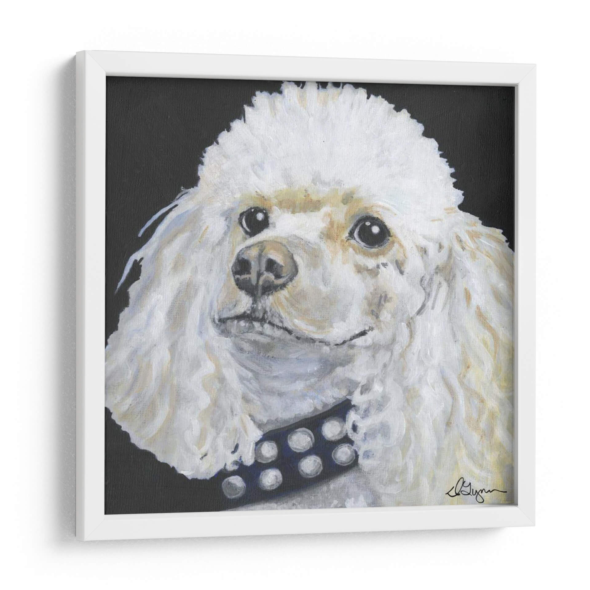Este cautivador cuadro decorativo de un perro salchicha con un collar tachonado captura la esencia de la lealtad y el estilo canino con una ejecución pictórica vibrante. La obra se centra en la expresión dulce y curiosa del perro, con pinceladas que dan vida a su pelaje blanco y crema y a los detalles de su collar azul oscuro con tachuelas plateadas. El fondo negro intenso proporciona un contraste dramático, haciendo que el sujeto principal resalte con una presencia impactante. El estilo artístico, que combina elementos realistas con una textura pictórica suelta, evoca una sensación de calidez y personalidad. Es la pieza ideal para amantes de los perros, para añadir un toque de carácter y sofisticación a cualquier sala de estar, estudio u oficina. Este cuadro decorativo es perfecto para quienes buscan una obra de arte que transmita alegría y un espíritu juguetón, convirtiéndose en un punto focal encantador y conversacional en tu espacio.