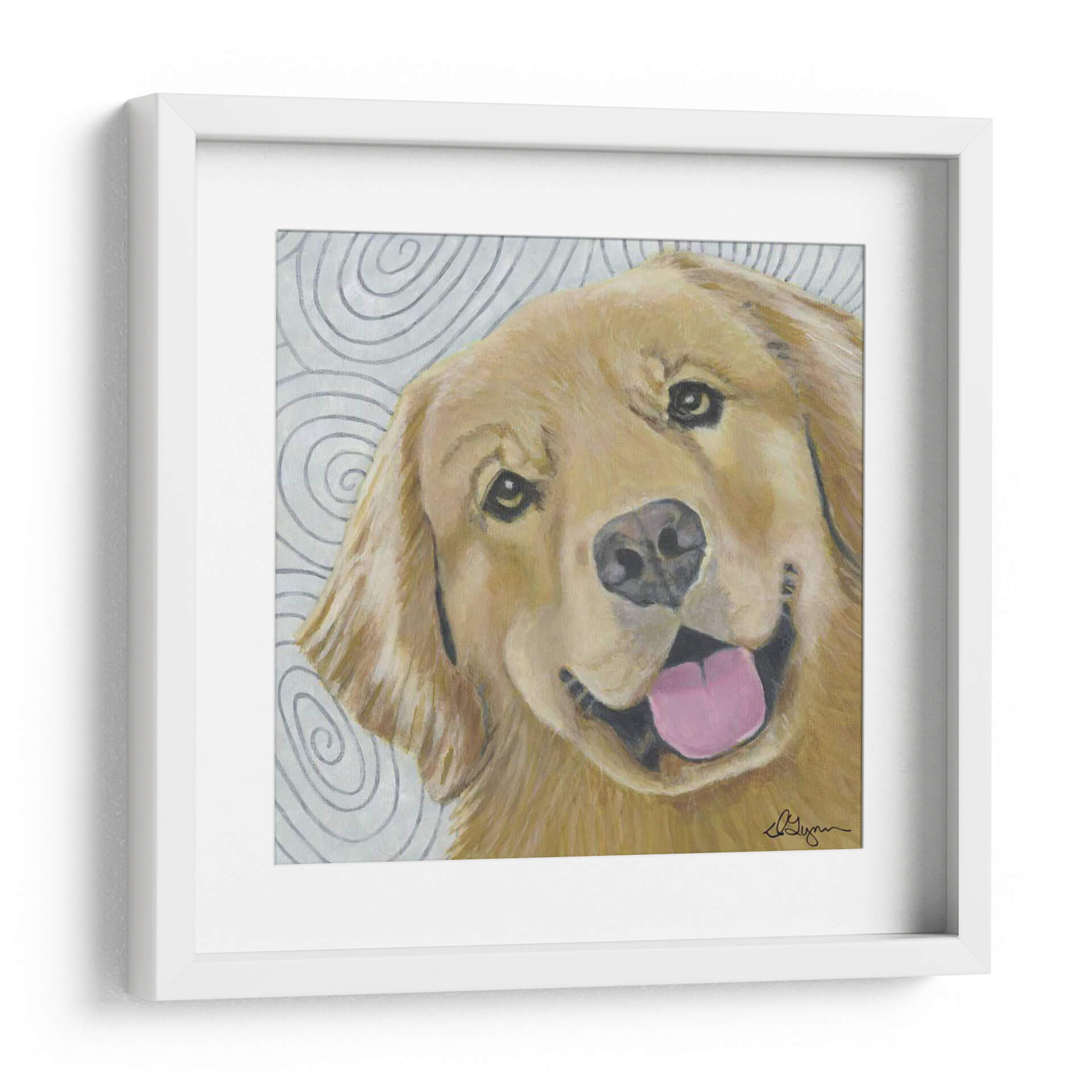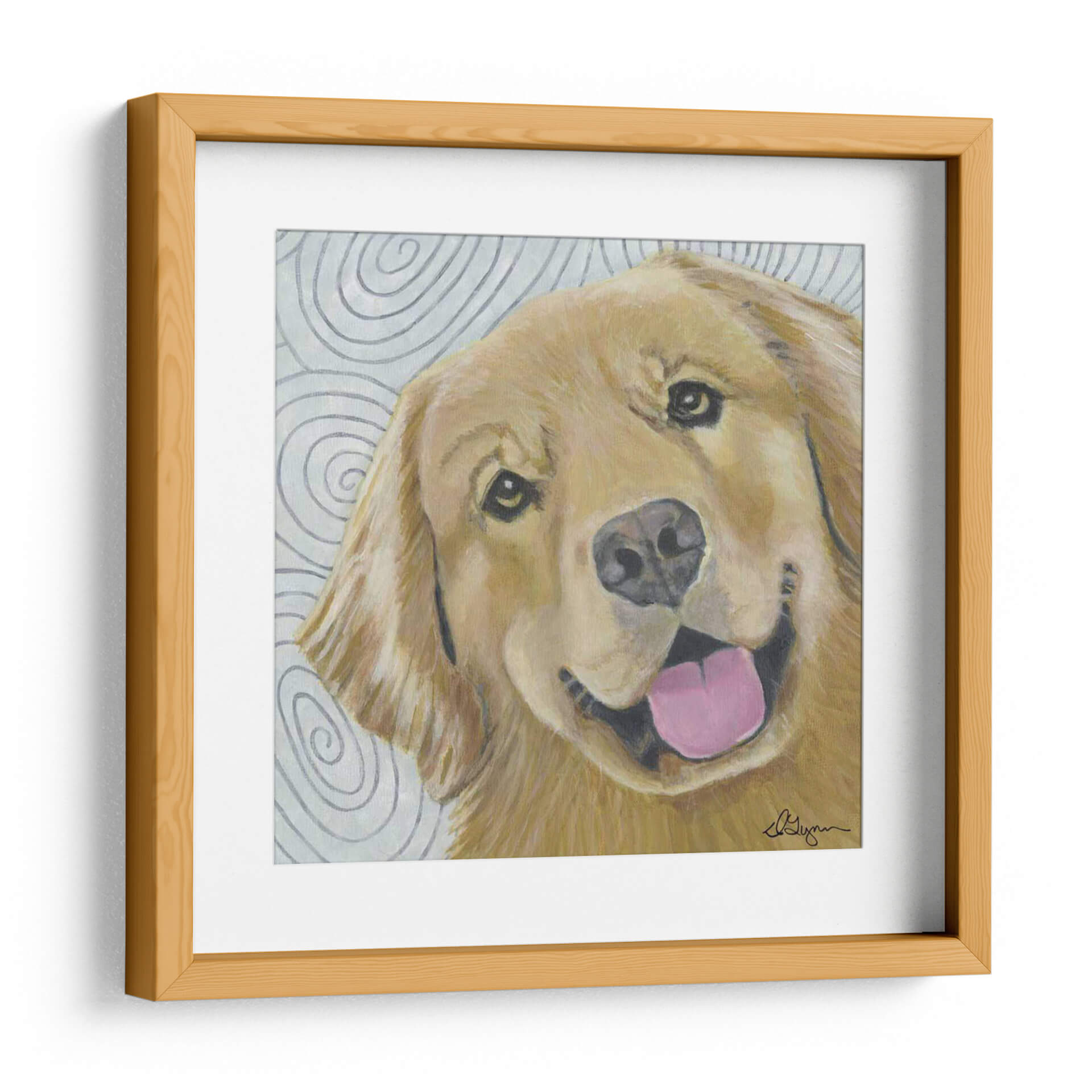 Capture la alegría pura y la lealtad incondicional con este encantador cuadro decorativo de un Golden Retriever. La obra "Dogs Drynns - Cosmo" de Dlynn Roll presenta un primer plano cautivador de este amado canino, con su pelaje dorado brillando bajo una luz suave y su lengua rosada asomando en una expresión de felicidad contagiosa. El artista ha utilizado una paleta de colores cálidos y terrosos para dar vida al perro, mientras que el fondo se adorna con un sutil patrón de espirales en tonos grises y blancos, añadiendo un toque de abstracción artística y serenidad. Este cuadro es perfecto para los amantes de los perros y para aquellos que buscan infundir a sus espacios un ambiente de calidez, amistad y vitalidad. Su composición cercana y la mirada directa del perro crean una conexión íntima, haciendo de esta pieza un punto focal encantador para cualquier habitación. Ideal para salones, dormitorios o incluso oficinas, este arte de pared añadirá personalidad y un toque de optimismo a tu decoración, celebrando la inquebrantable compañía que ofrecen nuestros amigos de cuatro patas.