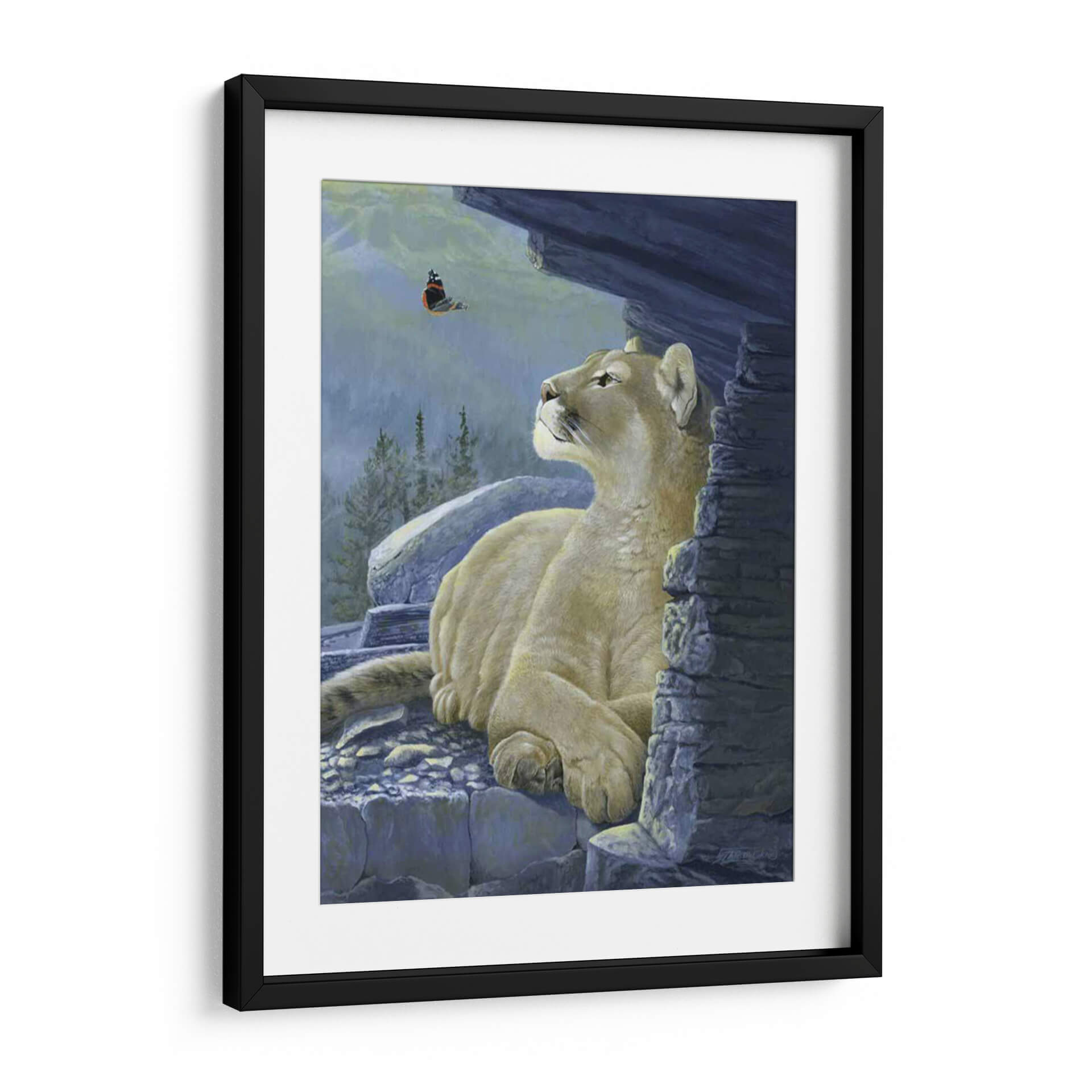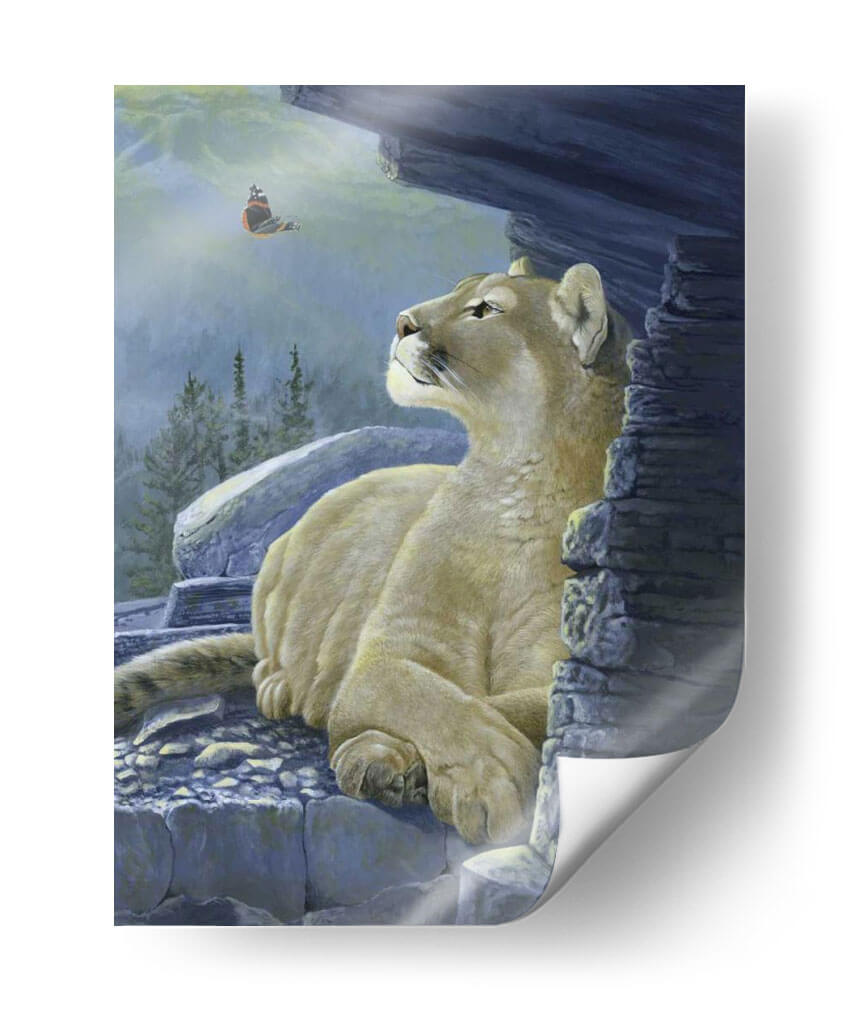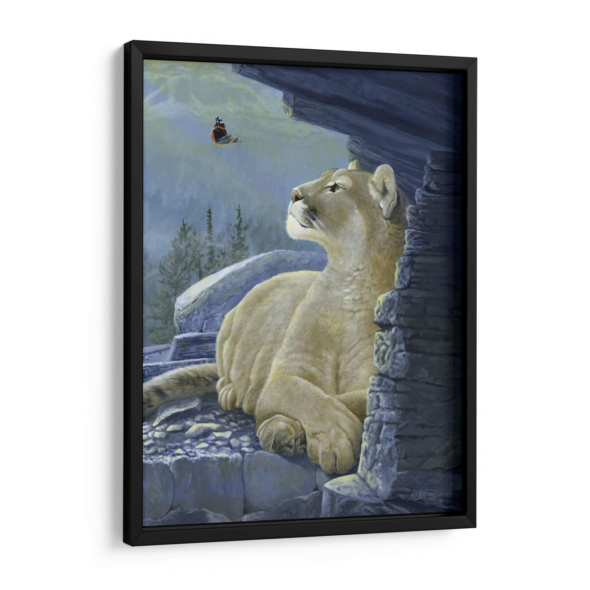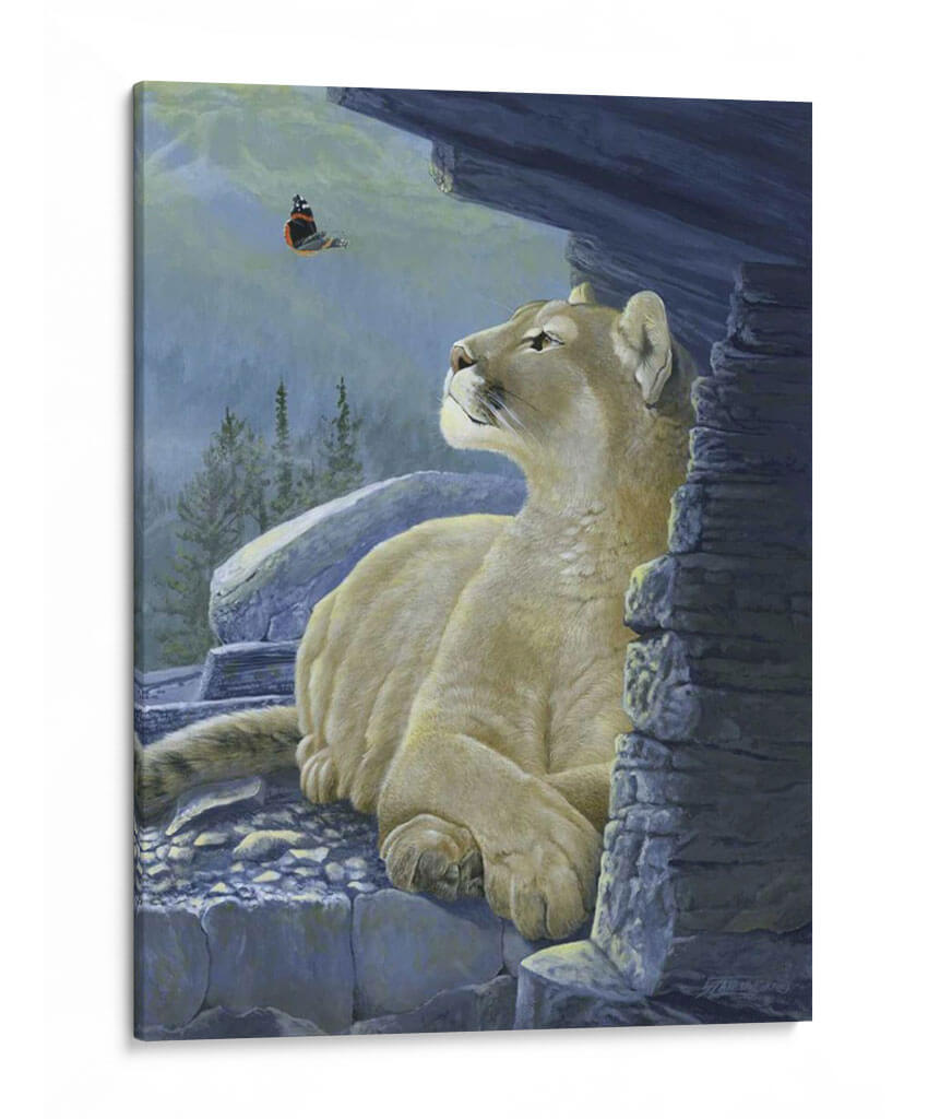 Adéntrate en la serenidad de la naturaleza con "Echar Un Vistazo", una obra maestra del artista Fred Szatkowski. Este cautivador cuadro decorativo presenta a un majestuoso puma recostado sobre rocas, enmarcado por una dramática cueva natural. La escena se ve realzada por un delicado toque de color en forma de una mariposa naranja y negra que revolotea cerca, contrastando suavemente con el entorno de tonos fríos y brumosos. El artista ha capturado magistralmente la esencia tranquila y contemplativa de este felino, invitando a la reflexión y la paz. Los detalles de la textura de las rocas, el pelaje del animal y la atmósfera etérea del paisaje montañoso crean una profundidad visual fascinante. "Echar Un Vistazo" es una pieza que evoca calma y conexión con el mundo salvaje, perfecta para añadir un toque de naturaleza salvaje y serena a tu salón, dormitorio u oficina. Ideal para amantes de la vida silvestre y aquellos que buscan un arte evocador que transmita tranquilidad y admiración por la majestuosidad de los animales en su hábitat natural.