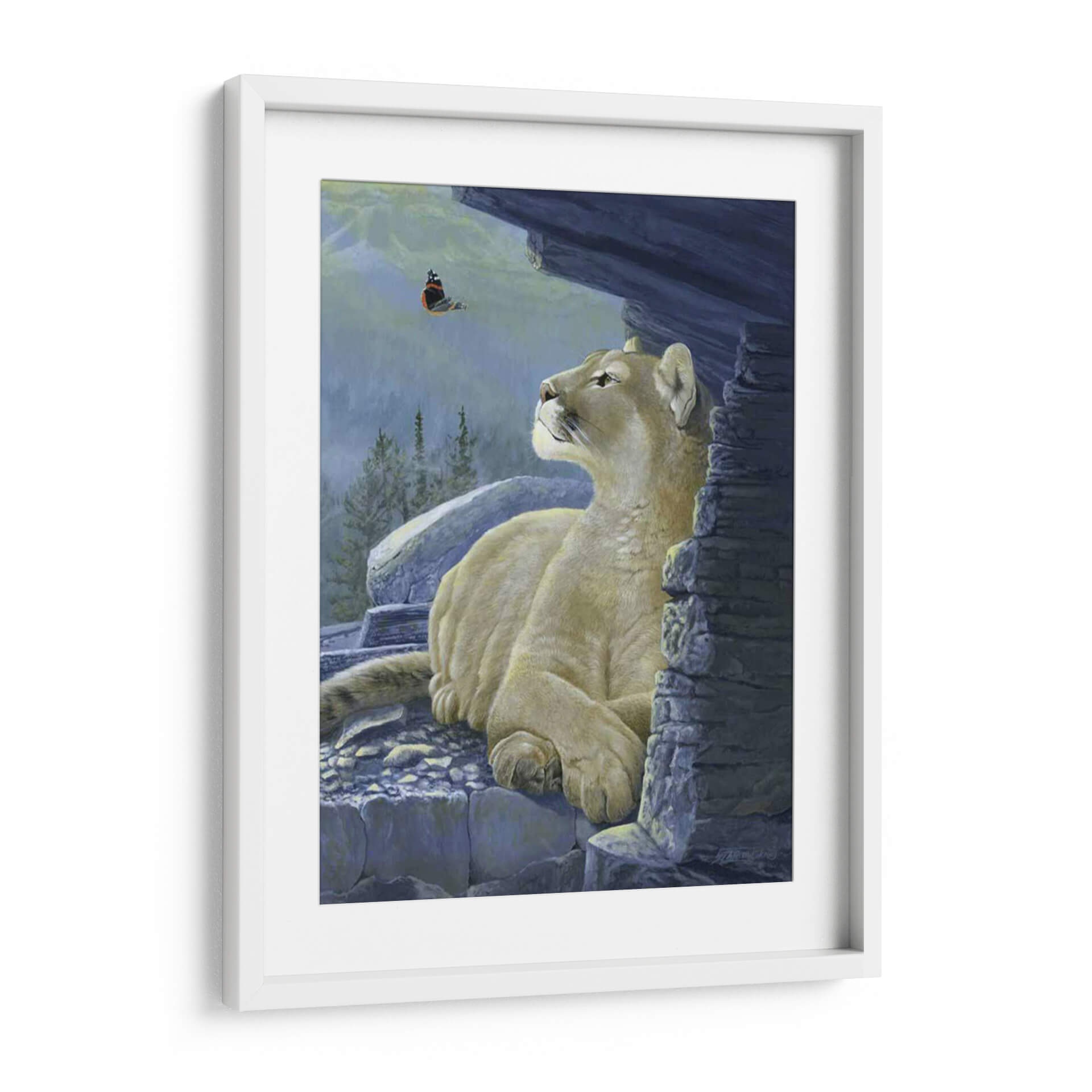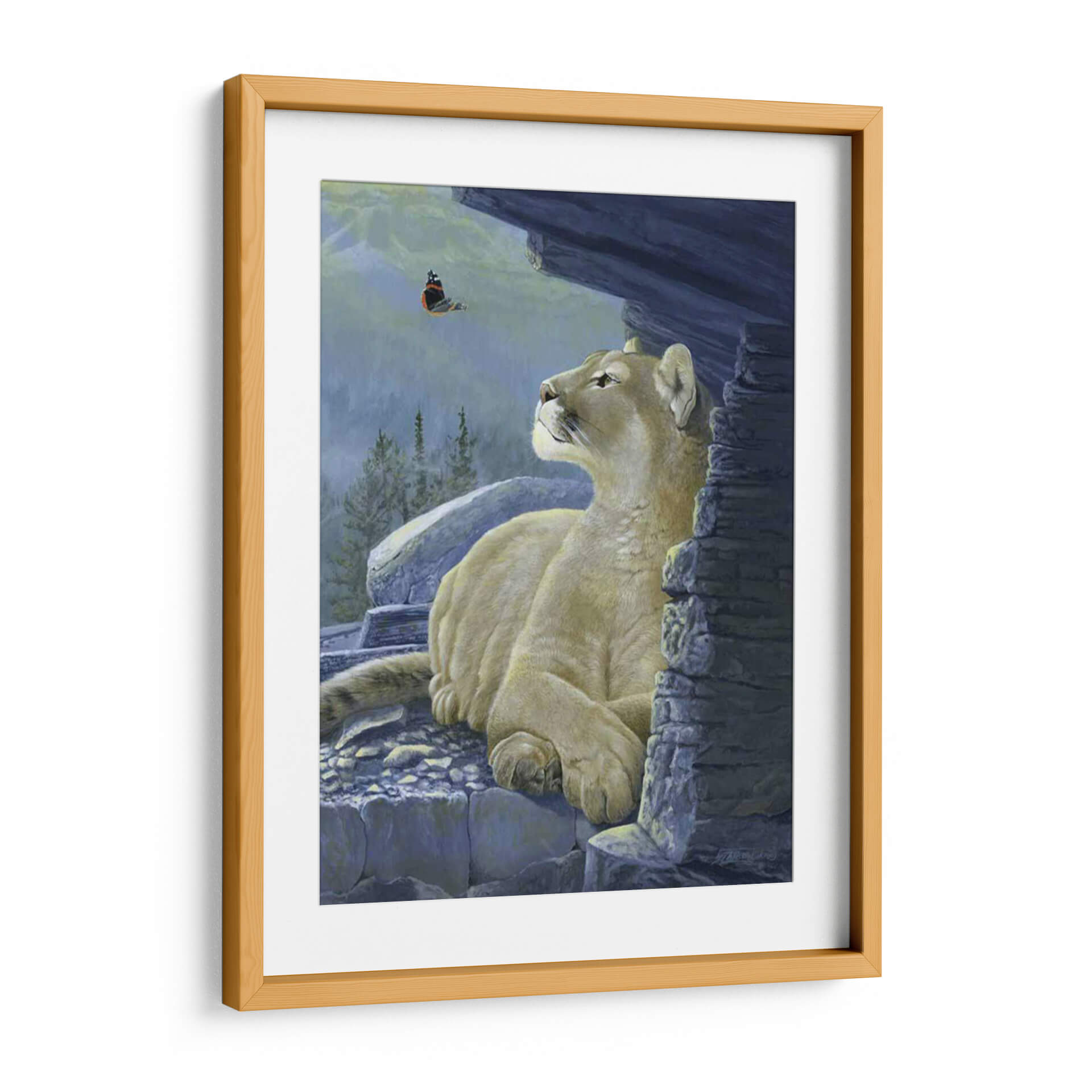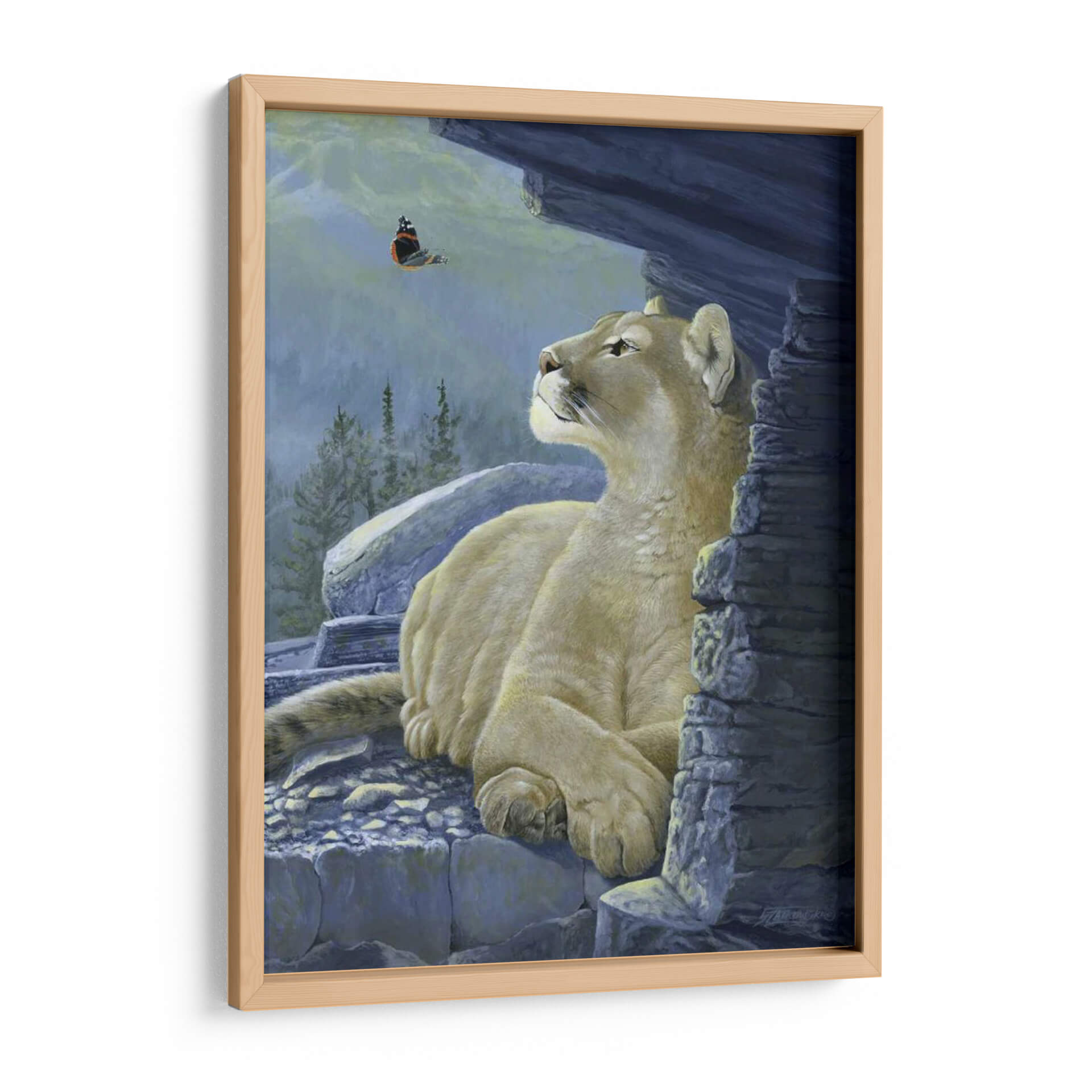 Adéntrate en la serenidad de la naturaleza con "Echar Un Vistazo", una obra maestra del artista Fred Szatkowski. Este cautivador cuadro decorativo presenta a un majestuoso puma recostado sobre rocas, enmarcado por una dramática cueva natural. La escena se ve realzada por un delicado toque de color en forma de una mariposa naranja y negra que revolotea cerca, contrastando suavemente con el entorno de tonos fríos y brumosos. El artista ha capturado magistralmente la esencia tranquila y contemplativa de este felino, invitando a la reflexión y la paz. Los detalles de la textura de las rocas, el pelaje del animal y la atmósfera etérea del paisaje montañoso crean una profundidad visual fascinante. "Echar Un Vistazo" es una pieza que evoca calma y conexión con el mundo salvaje, perfecta para añadir un toque de naturaleza salvaje y serena a tu salón, dormitorio u oficina. Ideal para amantes de la vida silvestre y aquellos que buscan un arte evocador que transmita tranquilidad y admiración por la majestuosidad de los animales en su hábitat natural.