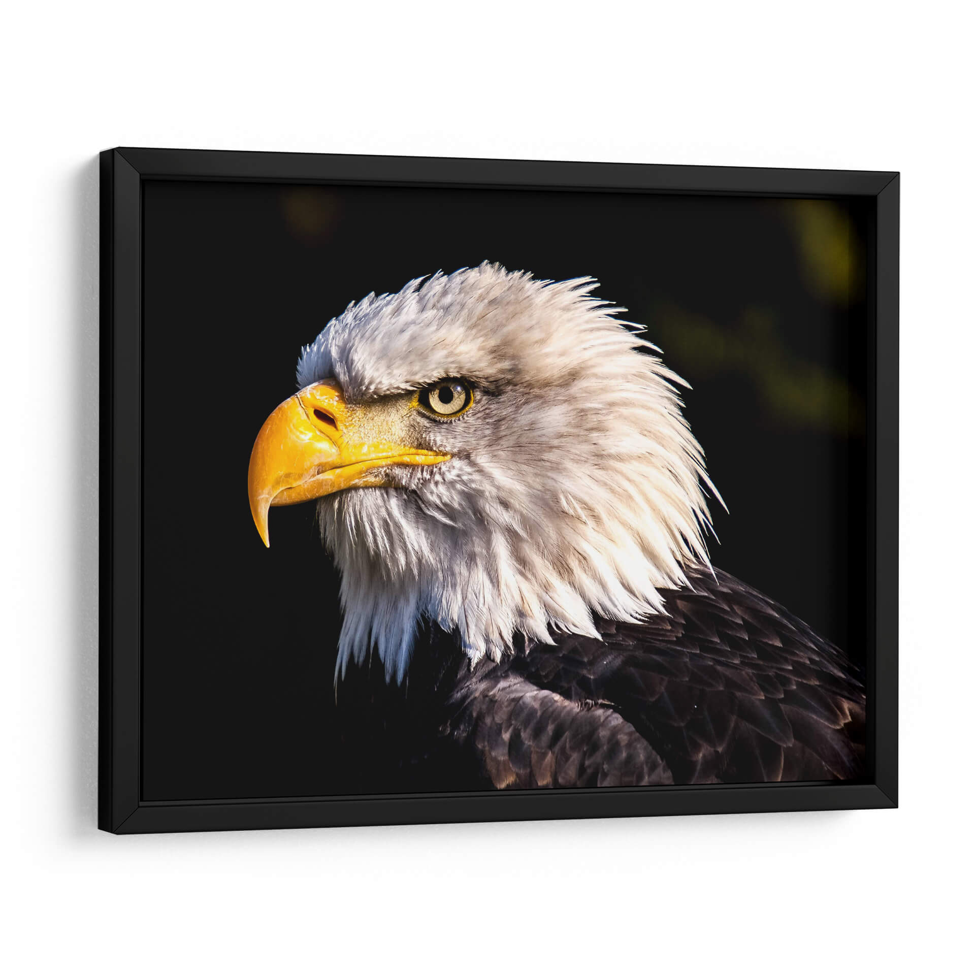Captura la majestuosidad y el poder de la naturaleza con este impresionante lienzo de un águila calva. La obra, titulada 'El águila calva', presenta un primer plano detallado de la cabeza de este icónico depredador, destacando su penetrante mirada amarilla y su afilado pico curvo de un vibrante color ocre. La textura de las plumas, desde el blanco nítido del cuello hasta el oscuro y denso plumaje del cuerpo, se captura con una claridad excepcional, creando una sensación de realismo y presencia imponente. El fondo oscuro y difuminado, con sutiles toques de verde que sugieren un entorno natural, hace que el águila resalte aún más, enfocando toda la atención en su fiera belleza. Esta pieza de arte de pared es ideal para aquellos que admiran la fuerza, la libertad y la agudeza visual. Su composición dramática y su paleta de colores contrastantes la convierten en una adición impactante para cualquier sala de estar, oficina o estudio, aportando un toque de carácter salvaje y elegancia atemporal a tu decoración.