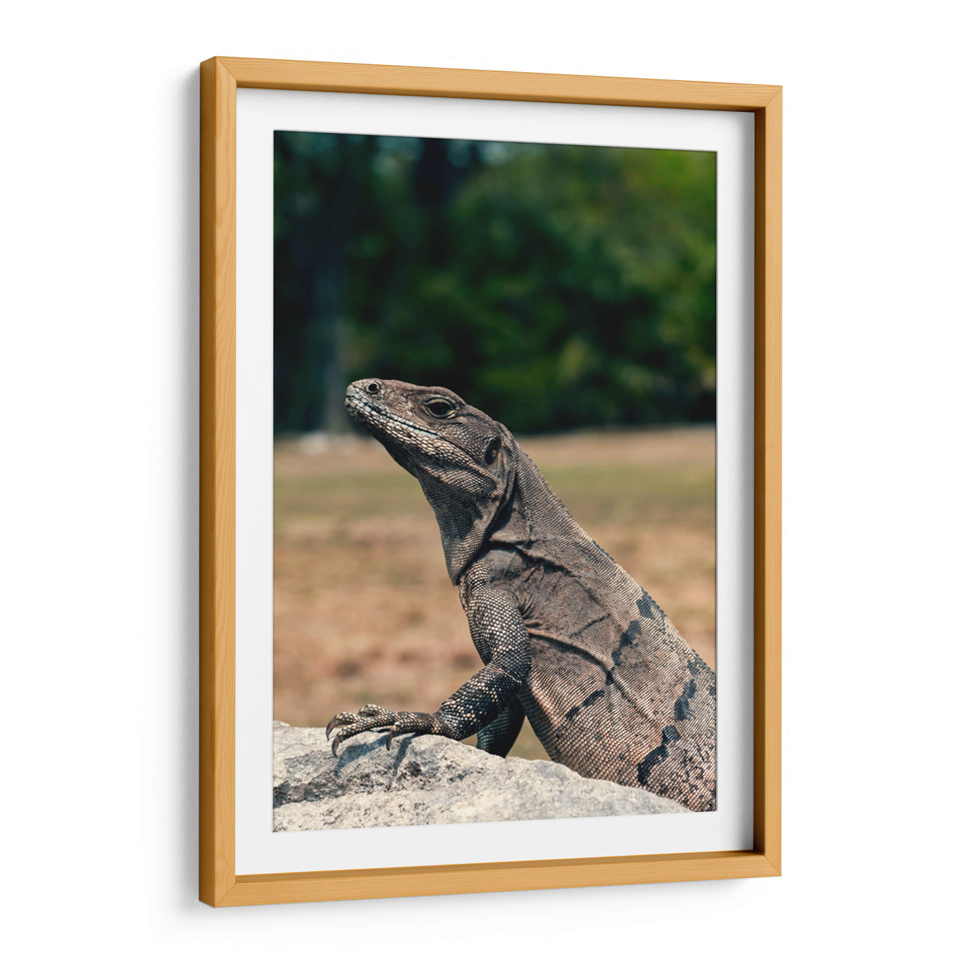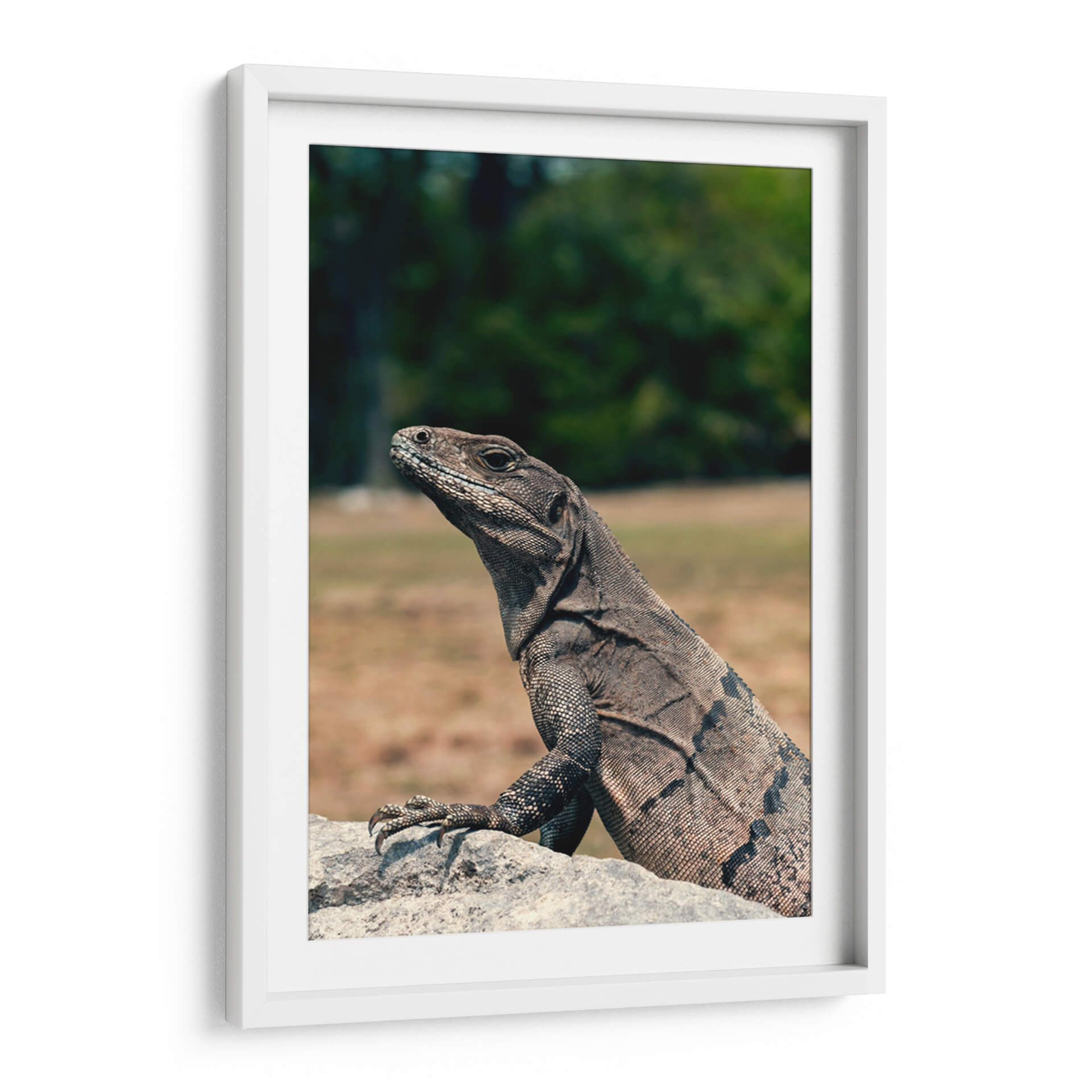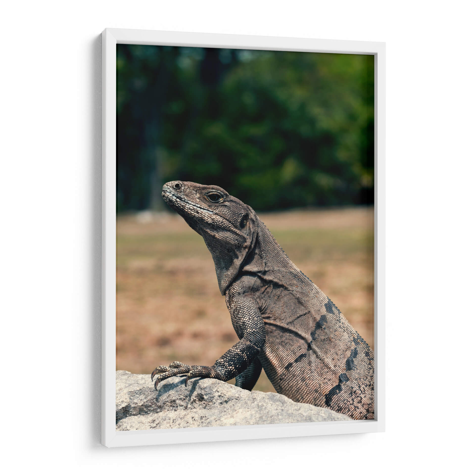 Captura la esencia de la naturaleza salvaje con este impresionante cuadro decorativo 'El Curioso'. La obra presenta un primer plano detallado de una iguana, posada majestuosamente sobre una roca, con su mirada penetrante dirigida hacia el horizonte. Los tonos tierra y verdes profundos del fondo contrastan sutilmente con las escamas intrincadas y la textura de la piel del reptil, creando una atmósfera de misterio y conexión con el mundo natural. Este cuadro es una pieza de arte contemporáneo que evoca una sensación de calma y contemplación, perfecta para añadir un toque de sofisticación orgánica a cualquier espacio. Su realismo fotográfico y la composición enfocada en la mirada del animal lo convierten en un punto focal intrigante para salas de estar, estudios u oficinas, invitando a la reflexión sobre la vida silvestre y la belleza del mundo natural. Ideal para amantes de la naturaleza, la fauna exótica o aquellos que buscan una decoración de pared única y llena de carácter.