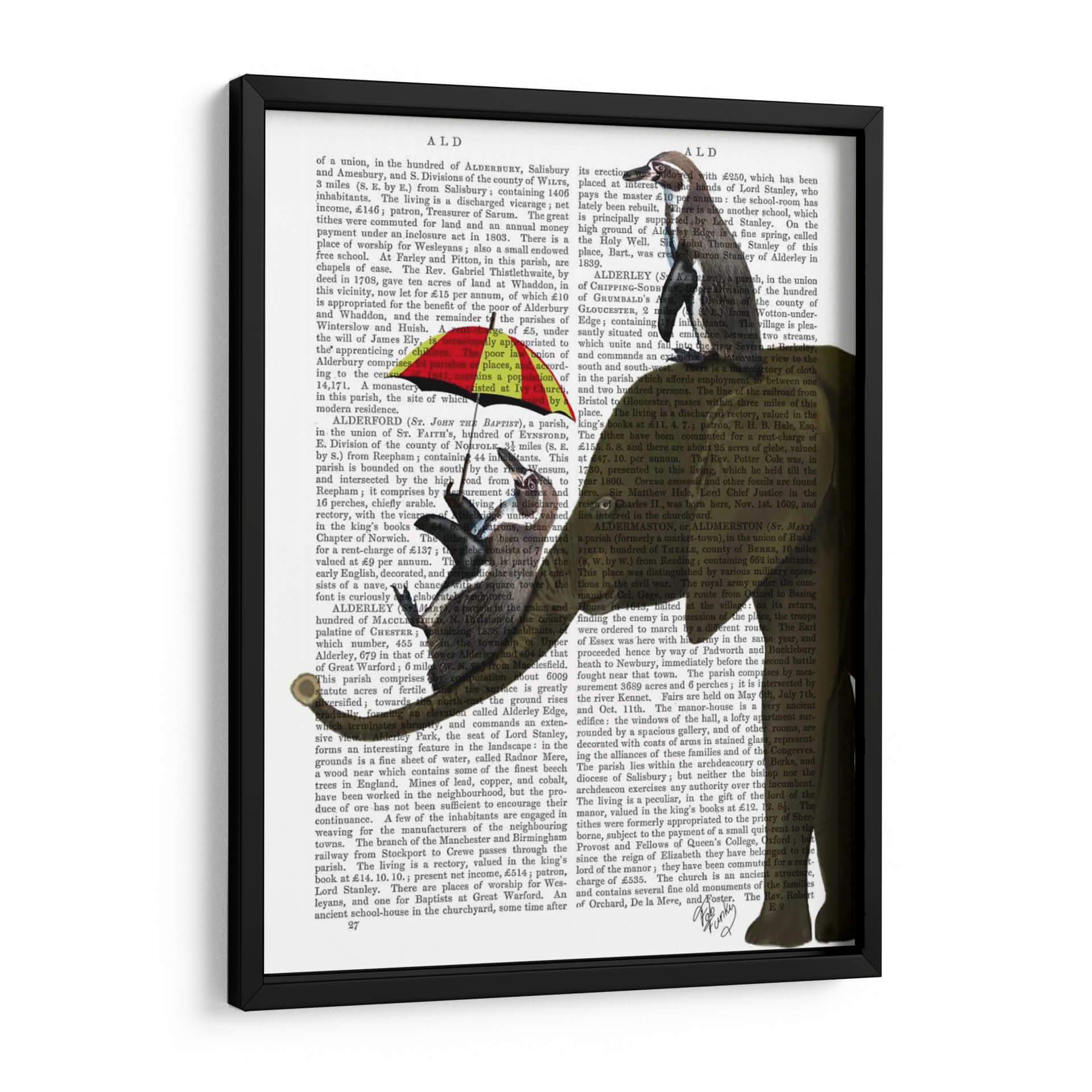 Sumérgete en la singularidad de 'Elefante y Pingüino', una obra de arte contemporáneo que fusiona lo inesperado con un toque de humor y ternura. Este cuadro decorativo, del artista Fab Funky, presenta una composición audaz donde un majestuoso elefante interactúa de forma juguetona con un elegante pingüino, todo ello sobre un fondo de texto antiguo que añade una capa de intriga y textura visual. Los colores, aunque sutiles, crean una atmósfera serena pero curiosa, haciendo de esta pieza un punto focal cautivador para cualquier espacio. Ideal para salas de estar modernas, estudios creativos u oficinas que buscan una declaración de estilo única y conversacional. La combinación de elementos animales inesperados con el diseño vintage del texto evoca una sensación de sorpresa y encanto, invitando a la reflexión y a la conversación. 'Elefante y Pingüino' no es solo una decoración de pared, sino una pieza que desafía las convenciones y añade una dosis de originalidad a tu hogar, transformando cualquier pared en una galería personal con un toque distintivo y lleno de personalidad.